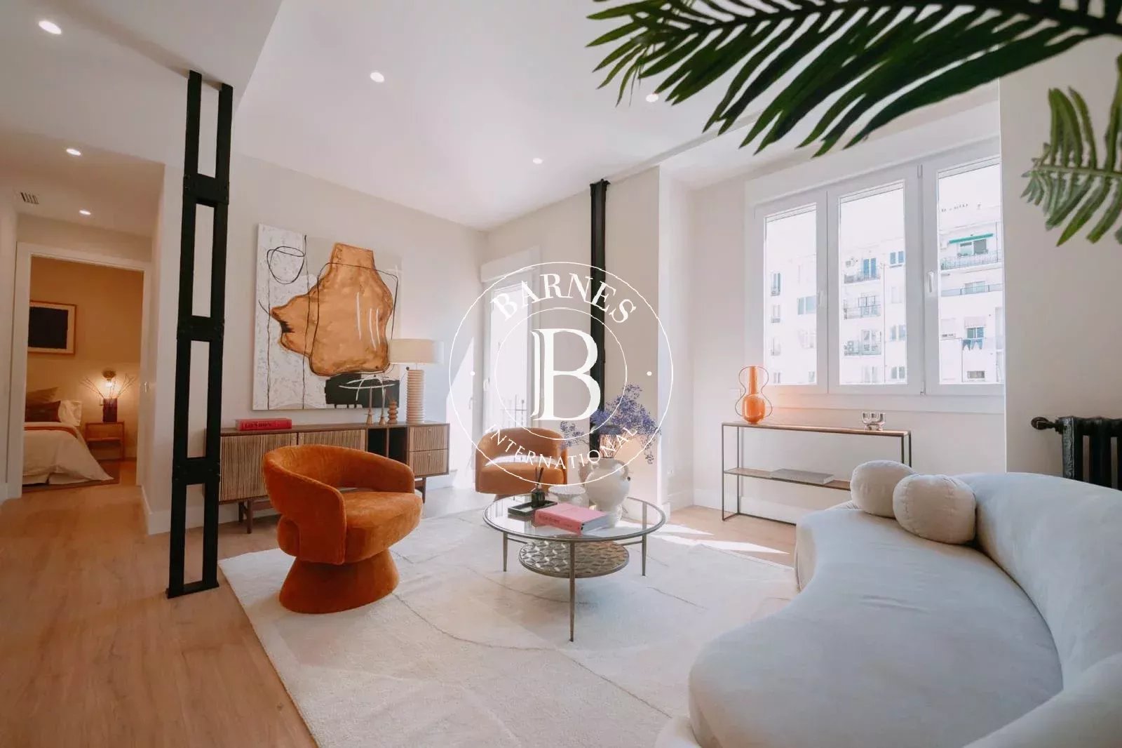 Barnes Madrid propose cet élégant appartement de 93 m² situé dans le prestigieux quartier de Recoletos, au sein du district de Salamanca, composé de deux chambres et de deux salles de bains. Situé au quatrième étage, ce bien neuf se distingue par ses volumes, sa luminosité remarquable et son calme, offrant un équilibre parfait entre confort moderne et charme d’un immeuble classique.
