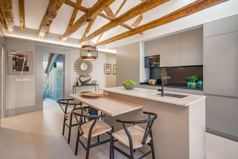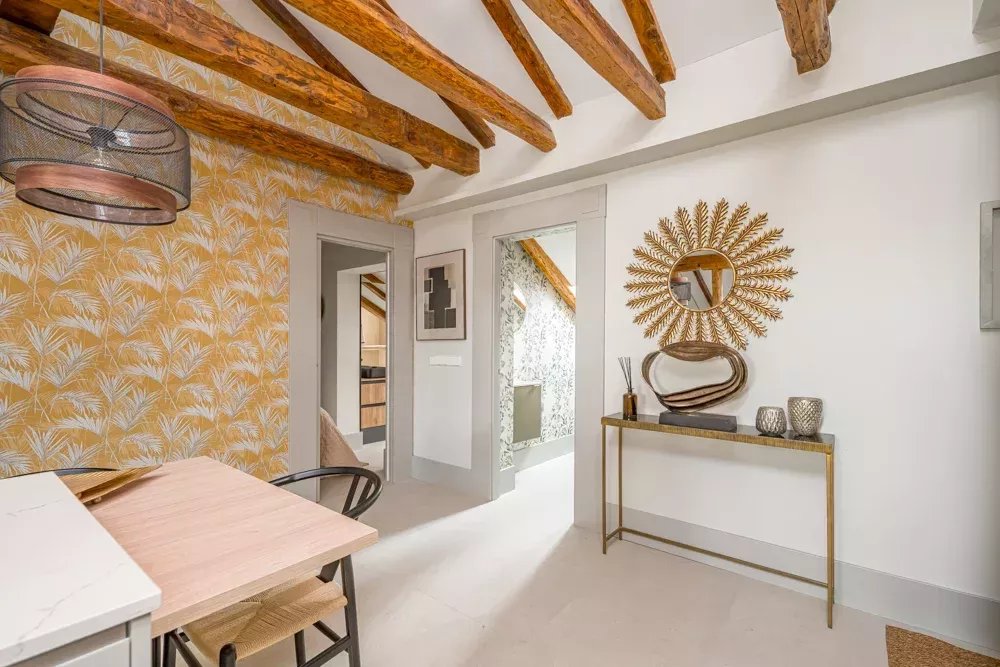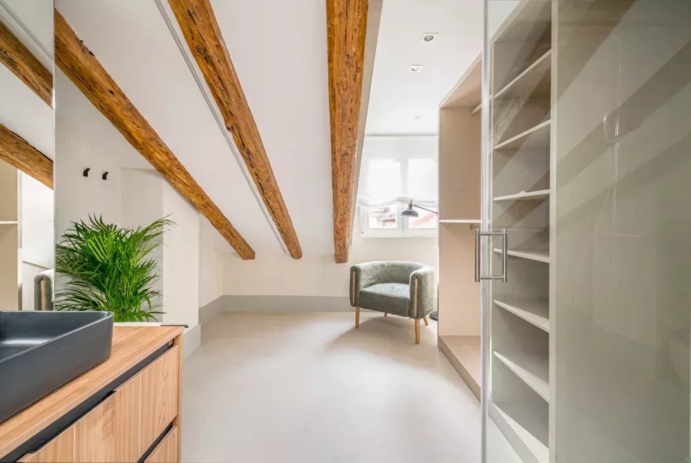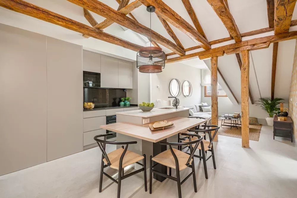Niché au cœur battant du quartier historique de Madrid, ce penthouse réinventé par BARNES Madrid offre un sanctuaire de luxe et de sophistication. S'étendant sur 94 m² au sixième étage d'un bâtiment emblématique sur la Calle Mayor, cette résidence tisse ensemble les fils du passé de Madrid avec les lignes élégantes du design moderne.
