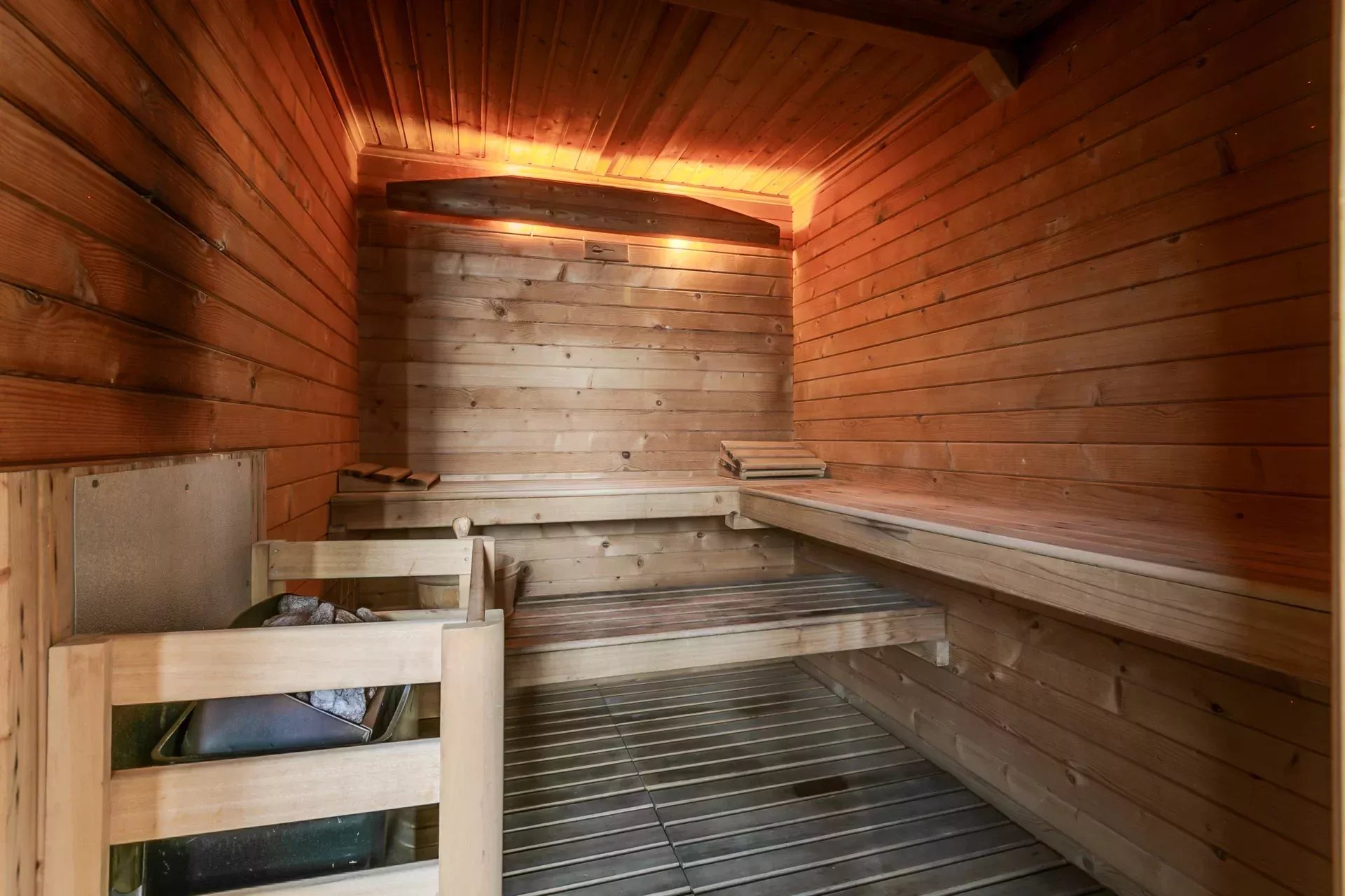 Le niveau principal s’ouvre sur une terrasse périphérique d’environ 130 m², avec plusieurs ambiances extérieures pour profiter du soleil et des vues dégagées.