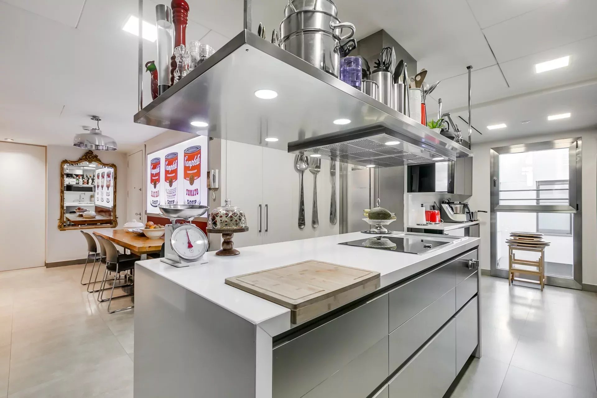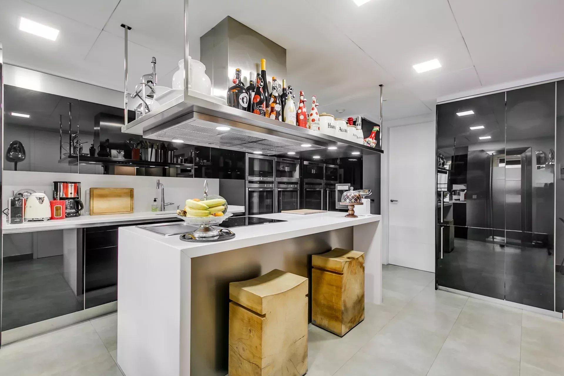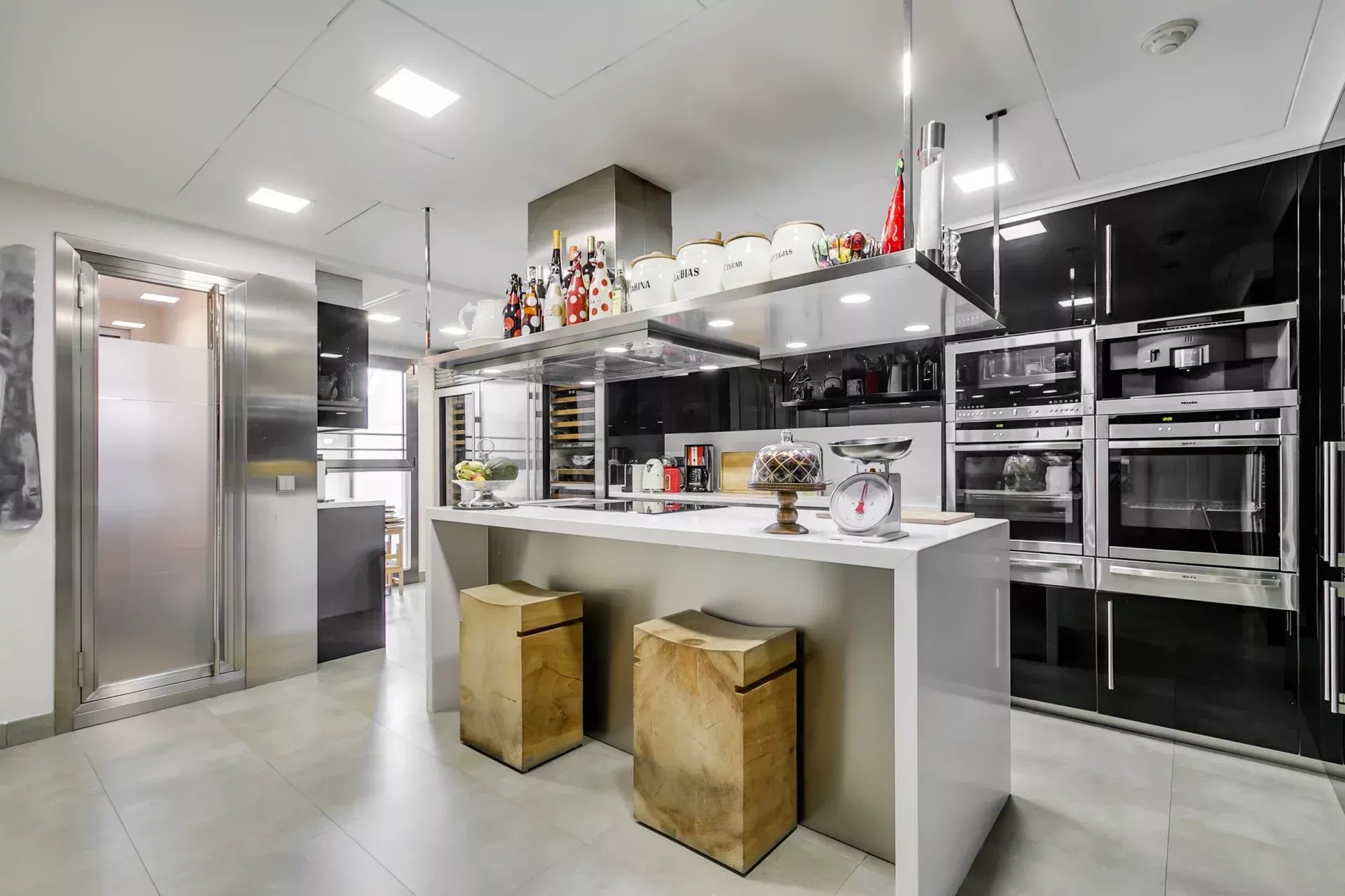 La cuisine est équipée d’électroménagers haut de gamme et comprend une buanderie ainsi qu’une chambre de service.
