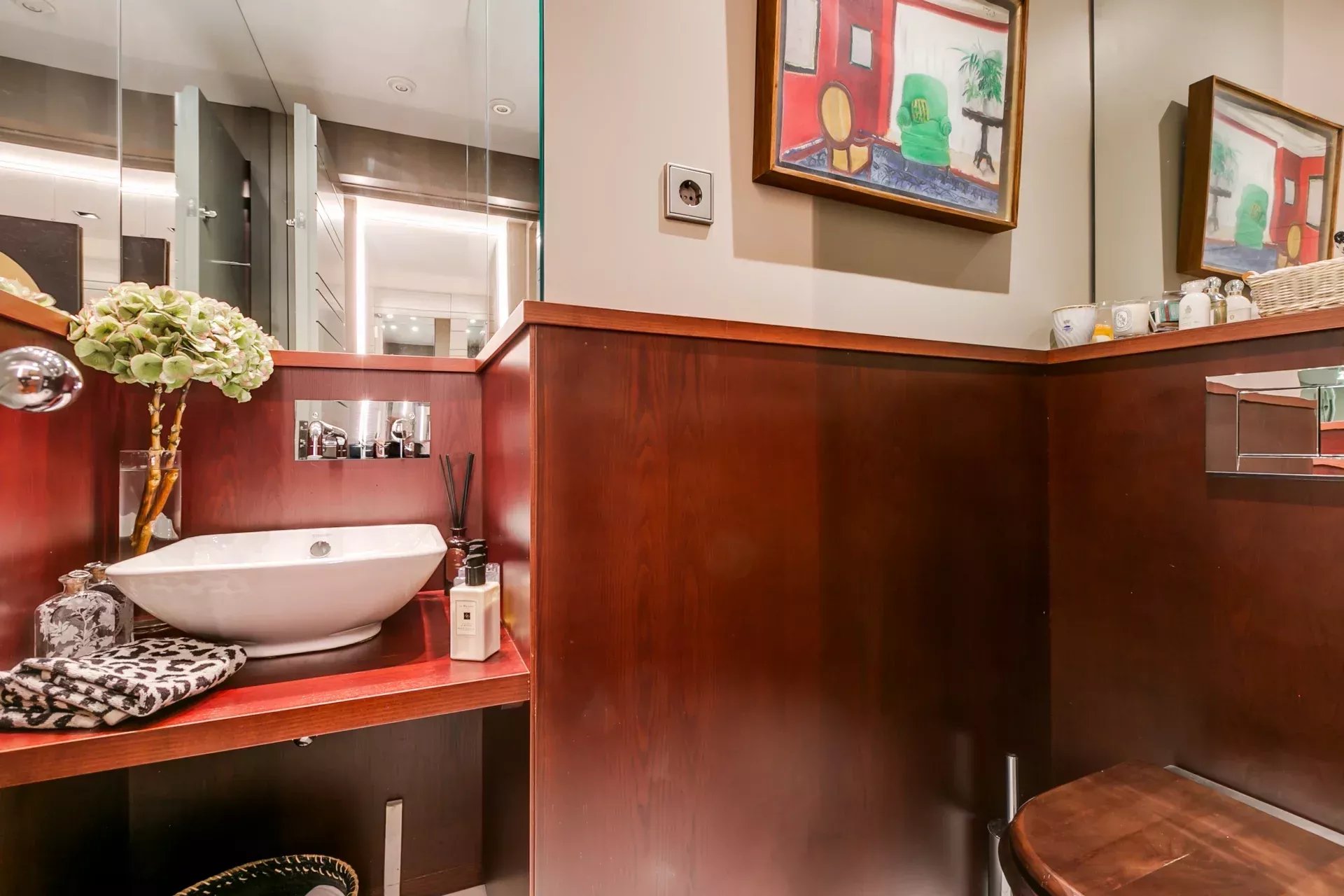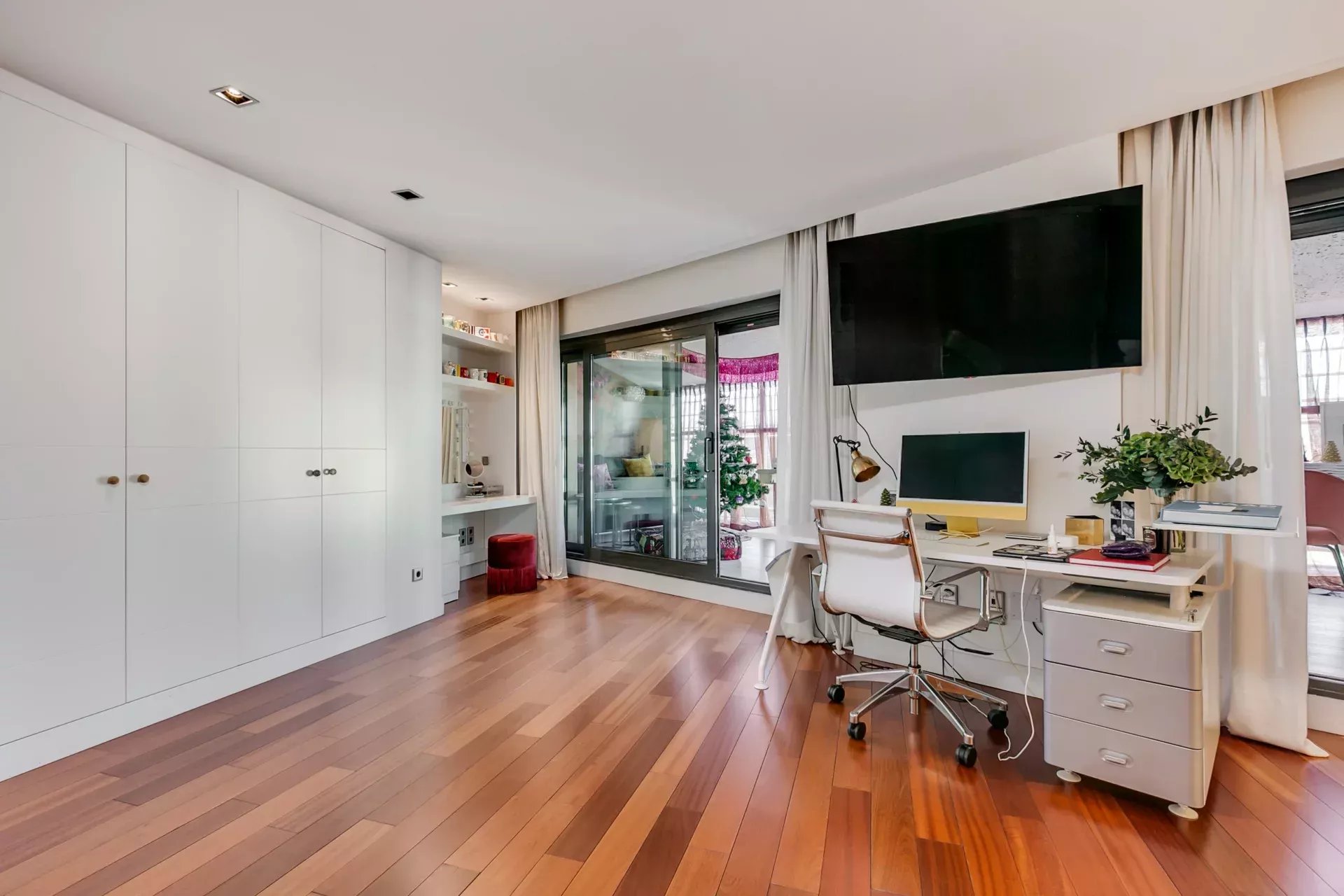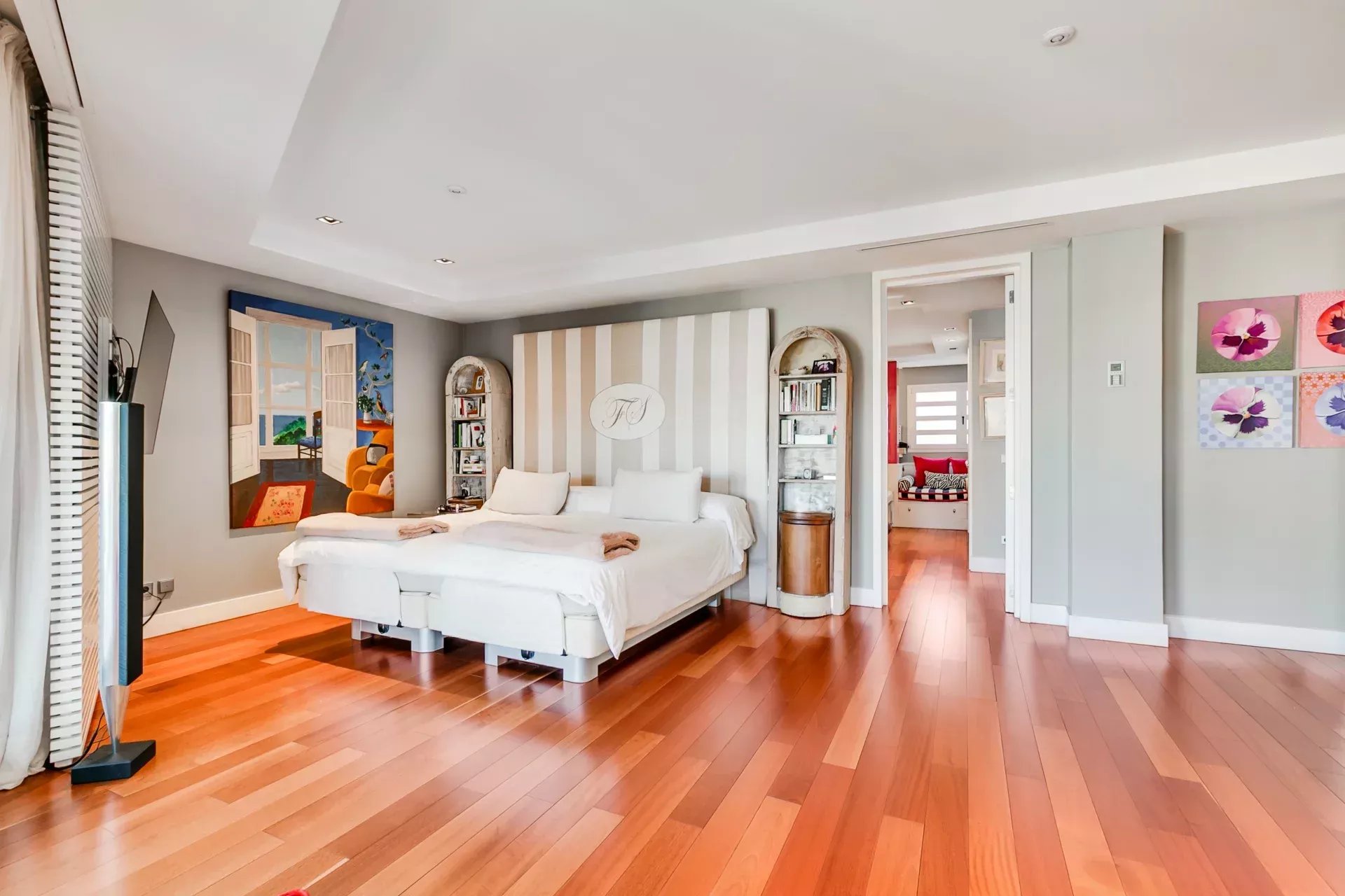 L’espace nuit comprend une suite parentale avec deux salles de bain privatives, un double dressing et un coin salon privé, une seconde suite avec dressing et espace de travail, ainsi qu’une troisième grande chambre avec salle de bain attenante.