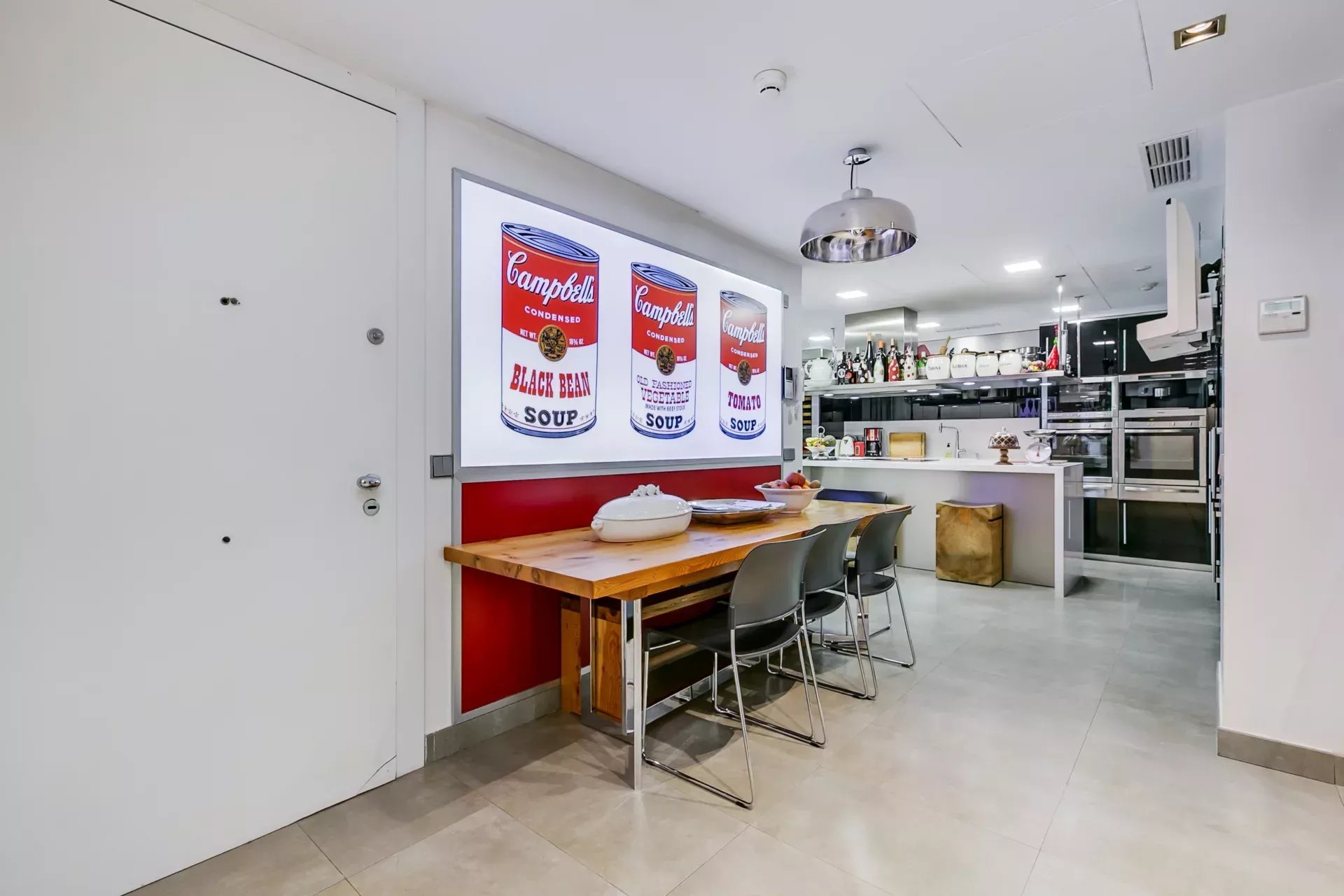 L’entrée mène à un vaste salon décliné en plusieurs espaces, idéal pour la vie quotidienne comme pour recevoir avec élégance. La salle à manger, aux lignes sobres et raffinées, devient le lieu de rassemblements inoubliables.