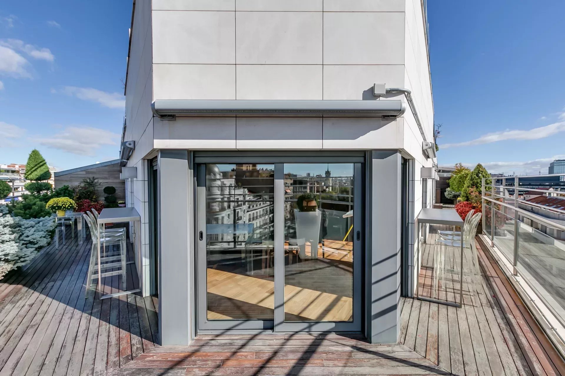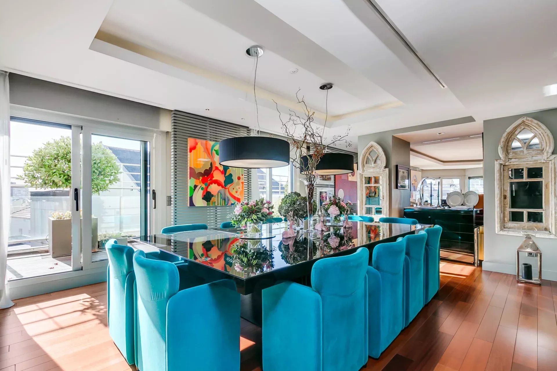 Ce bien d’exception, totalement extérieur et en angle, se distingue par sa luminosité exceptionnelle et ses superbes terrasses.