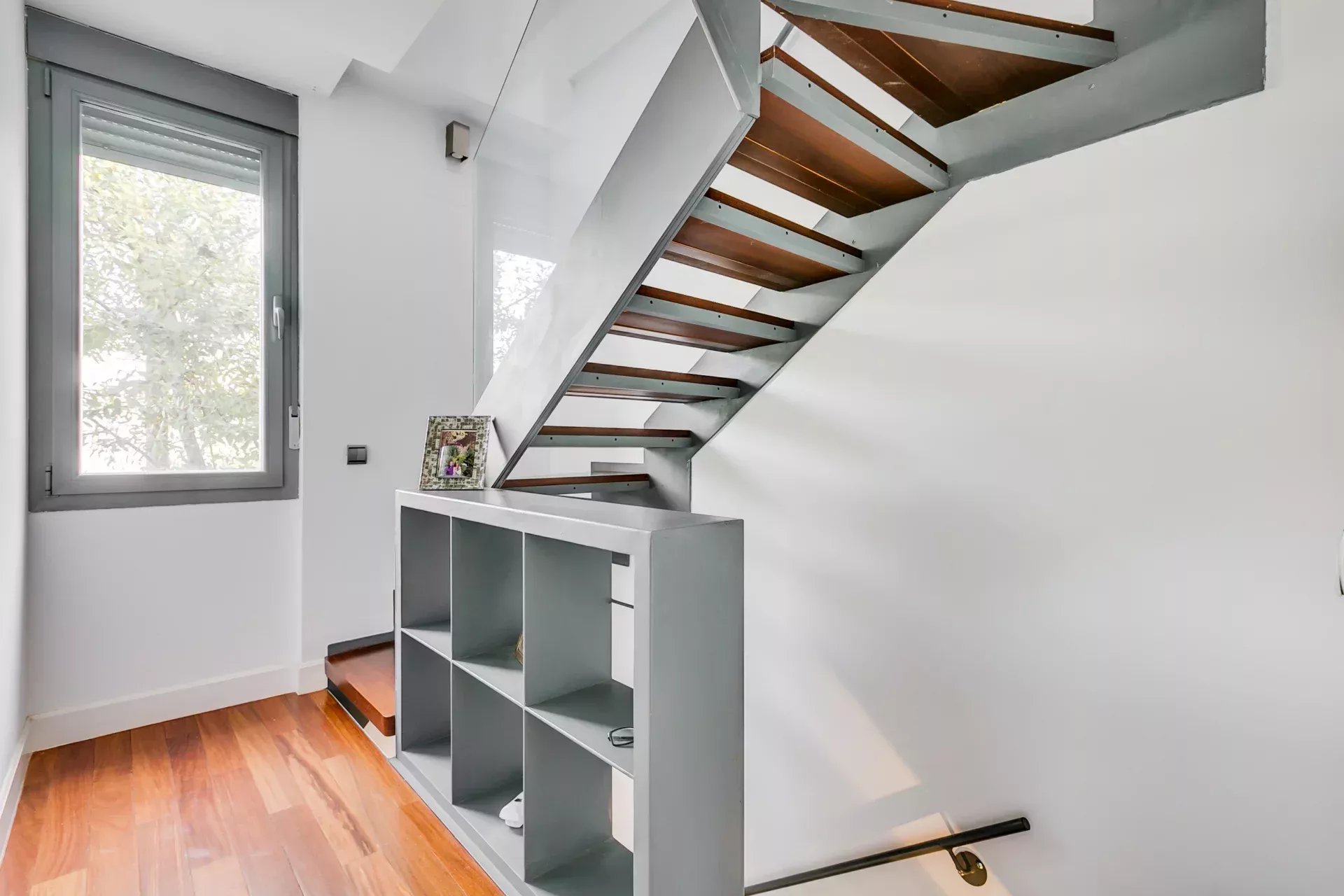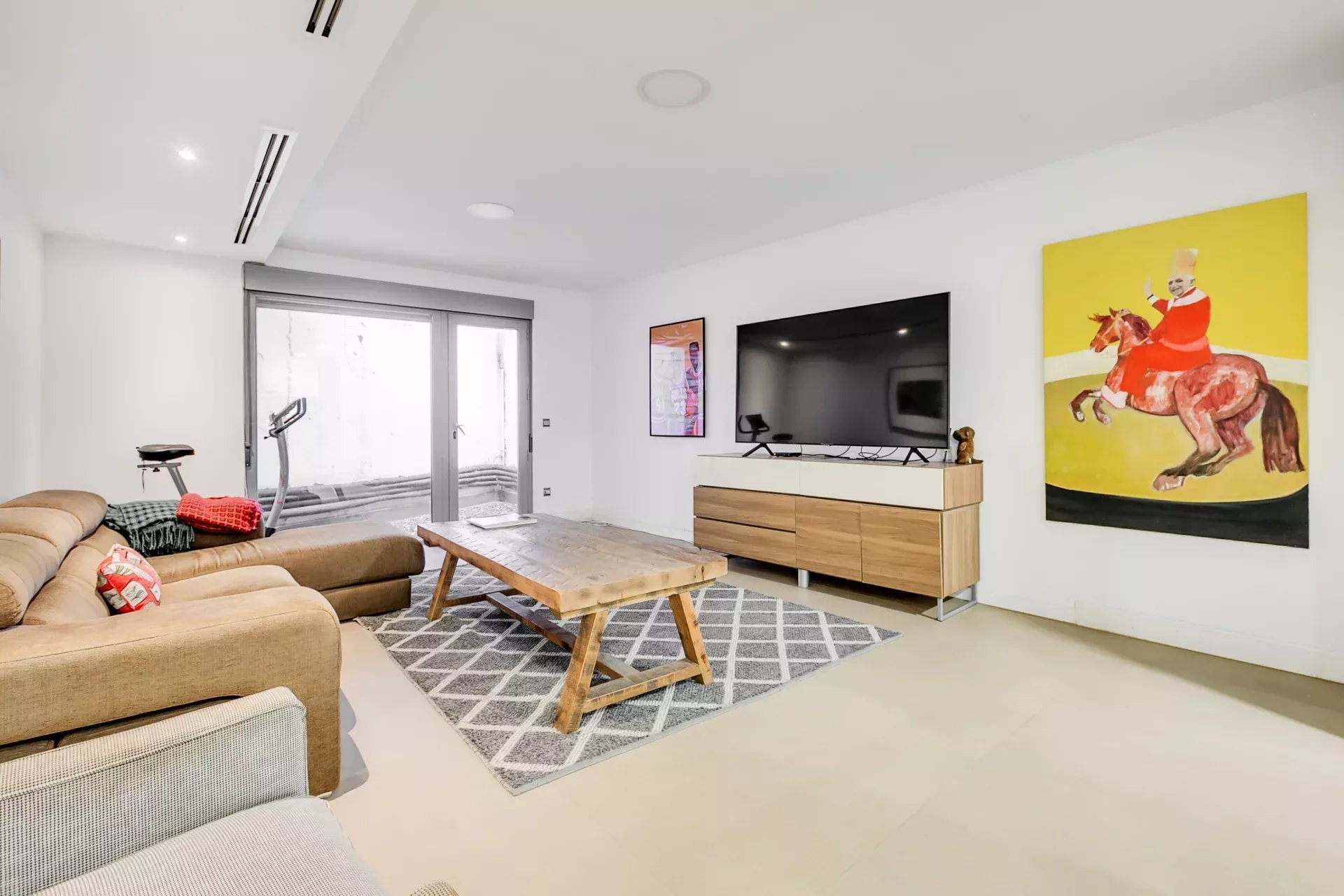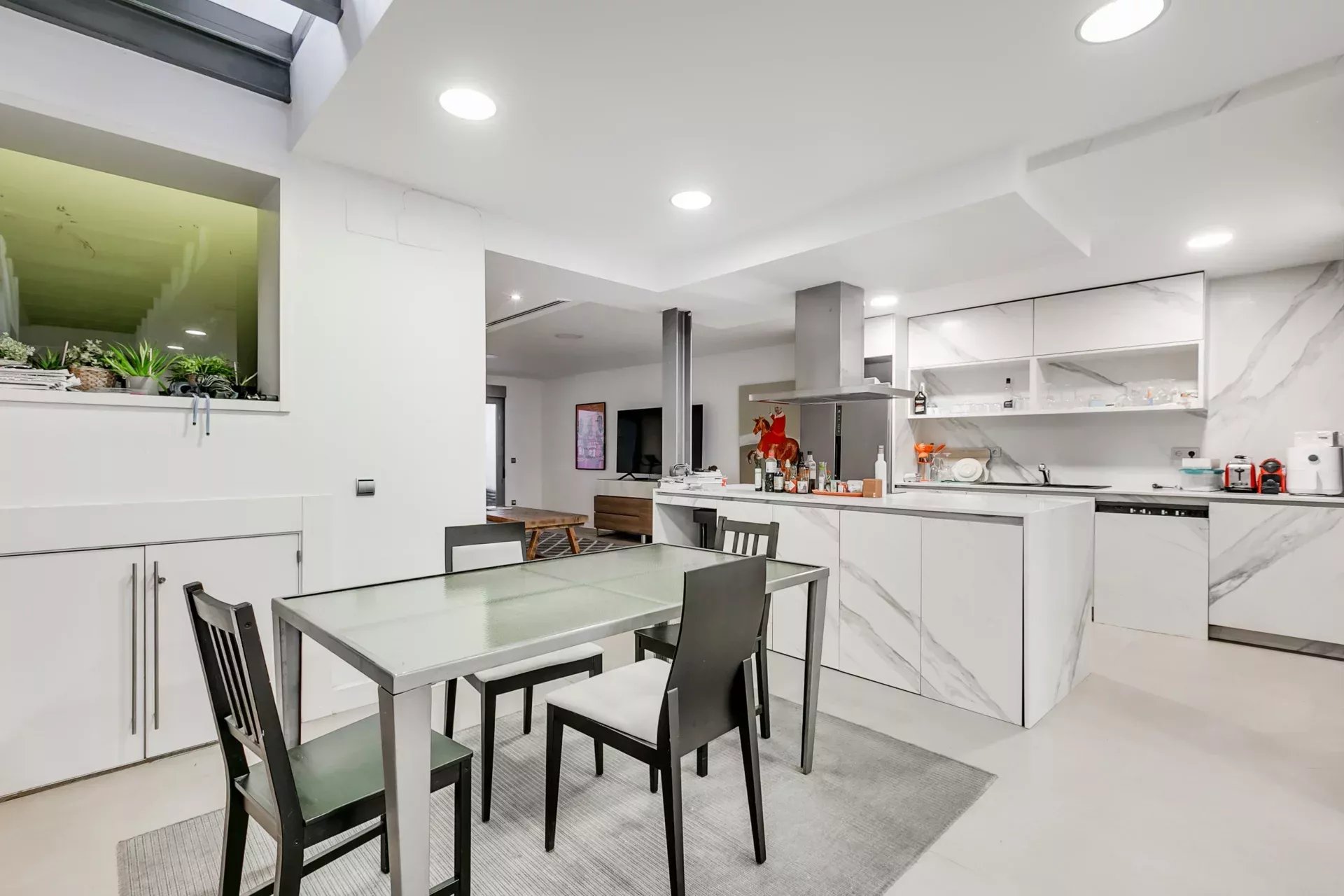 La propriété a une superficie de 250 mètres et est répartie sur 4 étages avec ascenseur. Au sous-sol, un grand espace de 70 mètres abrite une cuisine, une salle à manger et un salon, ainsi qu'une impressionnante cave à vin d'une capacité de 1 800 bouteilles. Il y a également un bureau qui peut être utilisé comme chambre d'amis ou de service, car il dispose d'une toilette avec douche. Sous l'escalier se trouvent la machine à laver et le sèche-linge.