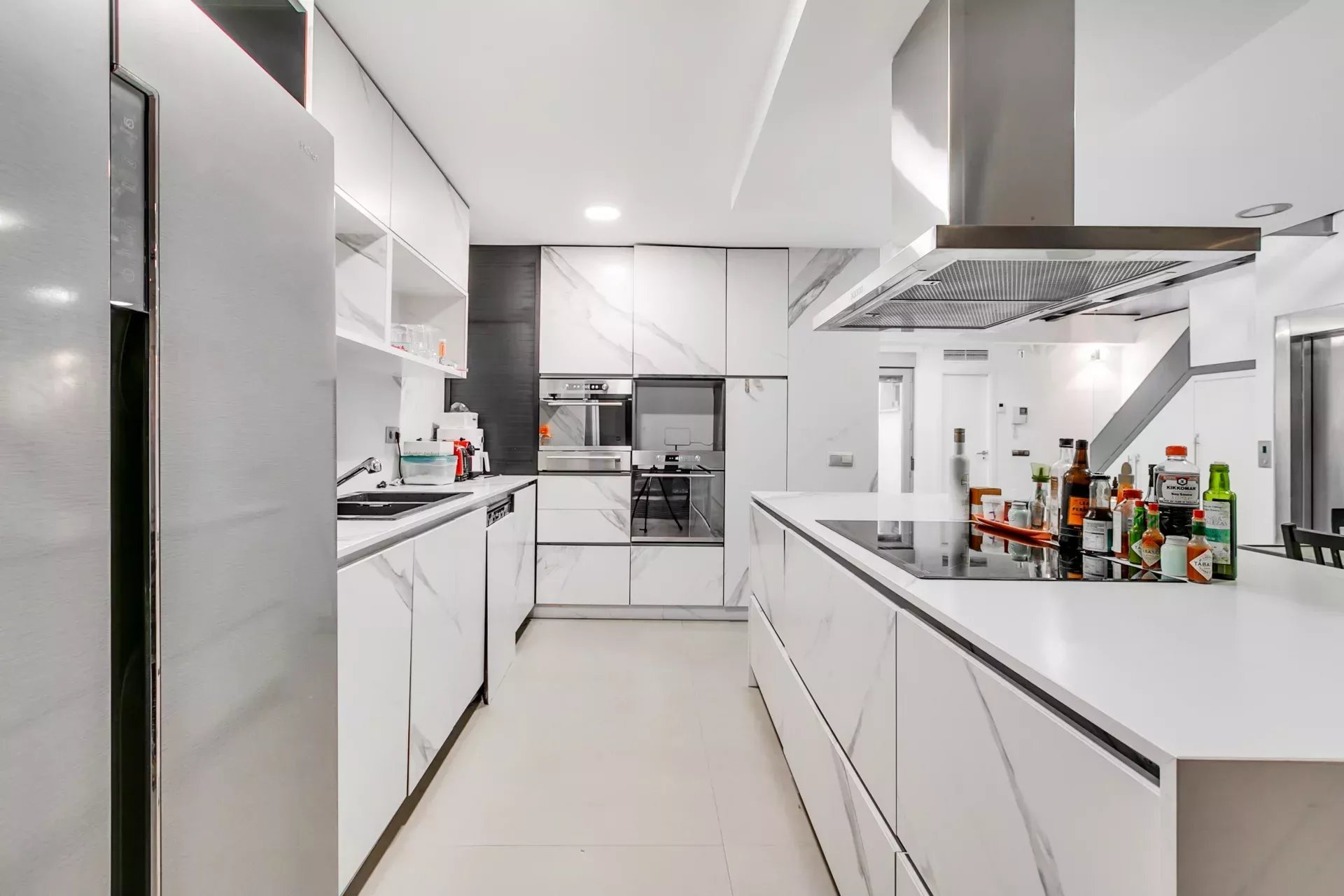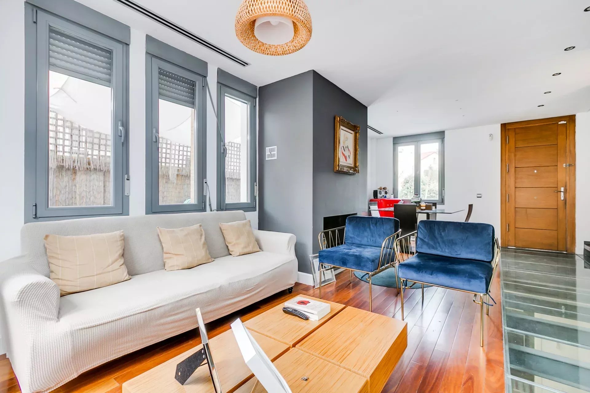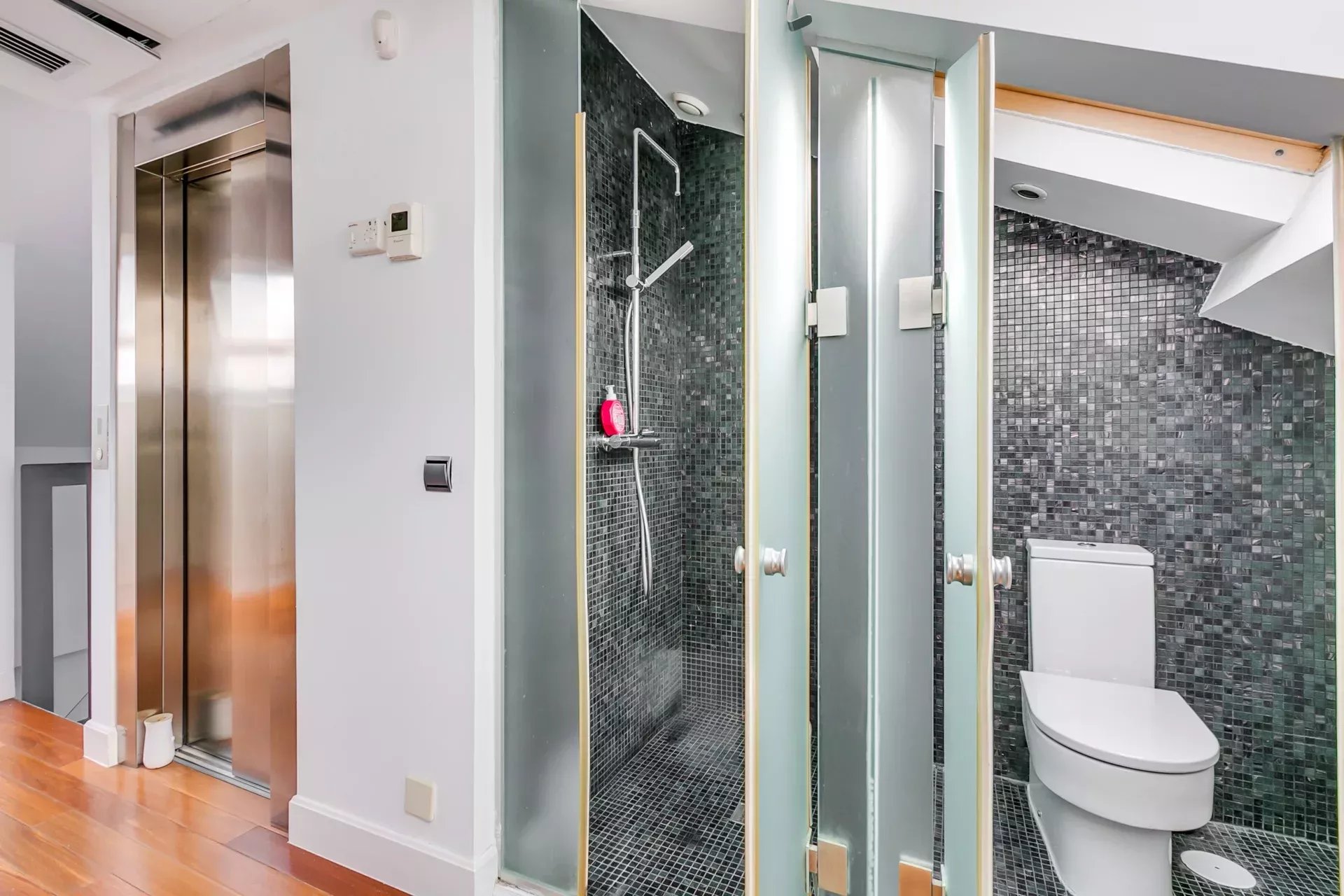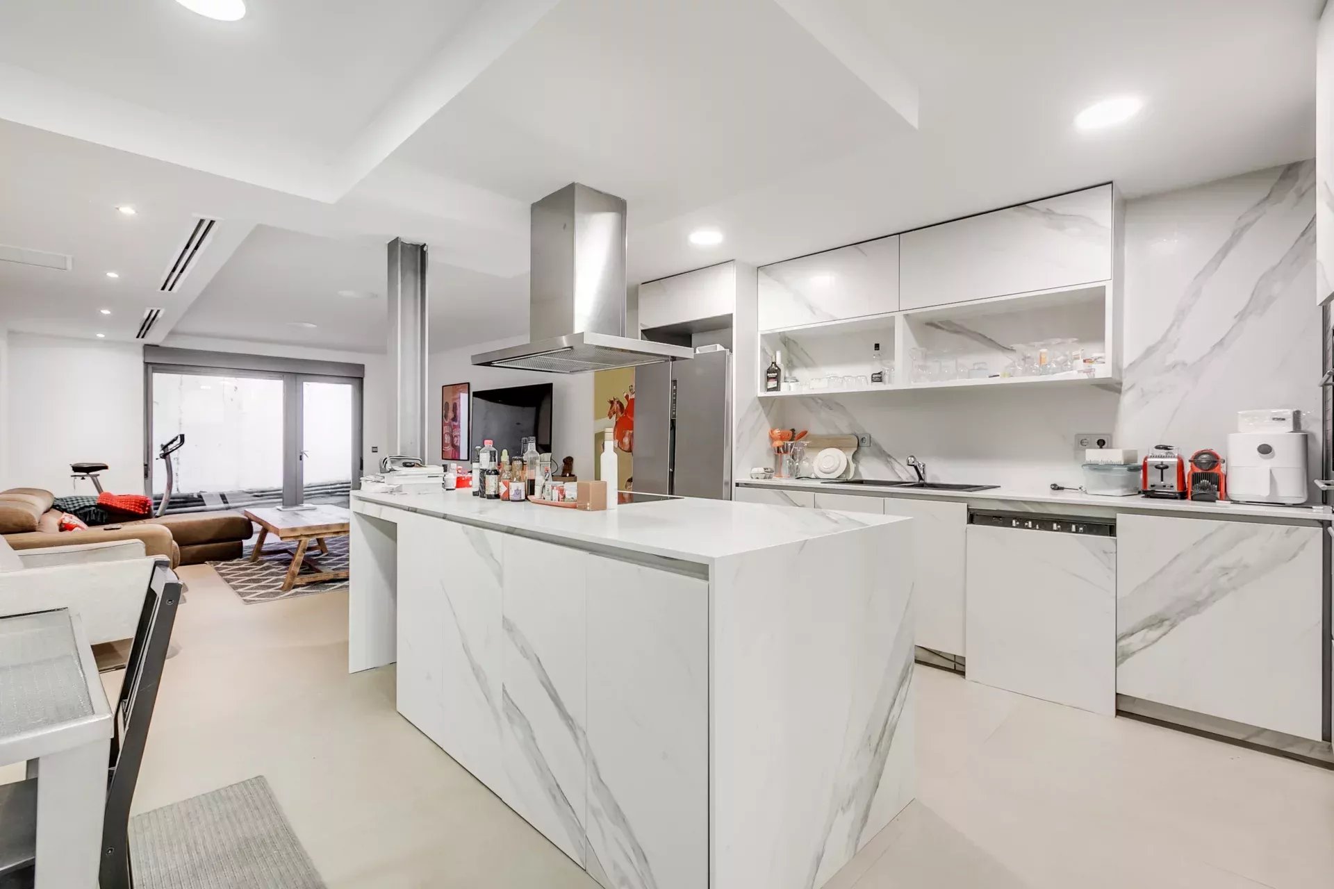 La propriété a une superficie de 250 mètres et est répartie sur 4 étages avec ascenseur. Au sous-sol, un grand espace de 70 mètres abrite une cuisine, une salle à manger et un salon, ainsi qu'une impressionnante cave à vin d'une capacité de 1 800 bouteilles. Il y a également un bureau qui peut être utilisé comme chambre d'amis ou de service, car il dispose d'une toilette avec douche. Sous l'escalier se trouvent la machine à laver et le sèche-linge.
