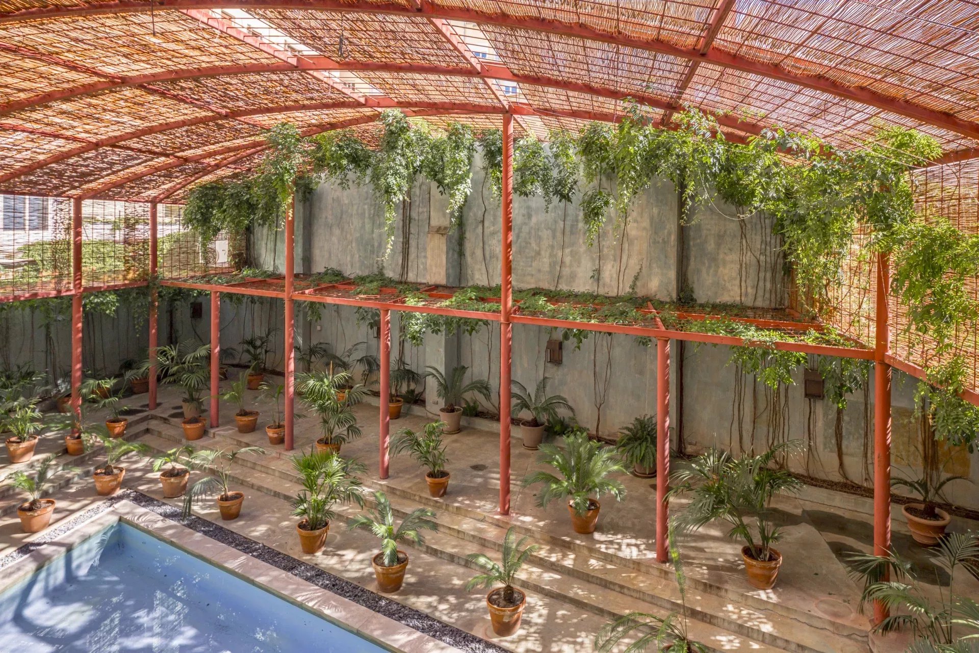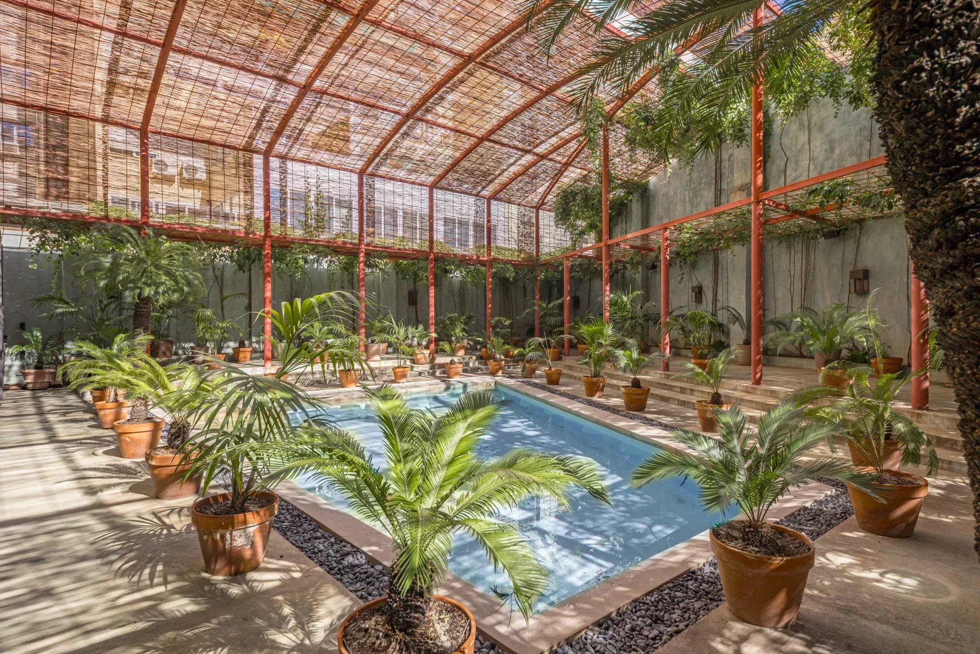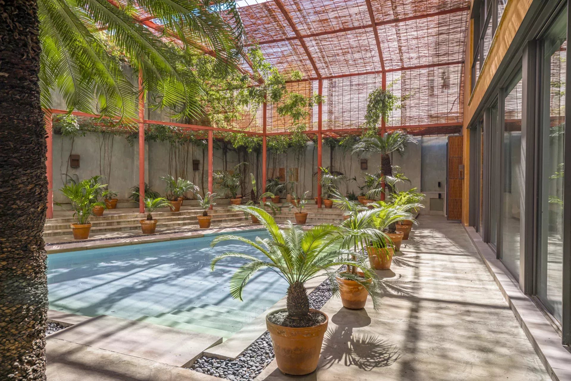 À l’extérieur, la propriété offre plus de 200 m² d’espaces ouverts, où la piscine privée entourée de végétation crée un véritable oasis urbain, idéal pour la détente et la réception.