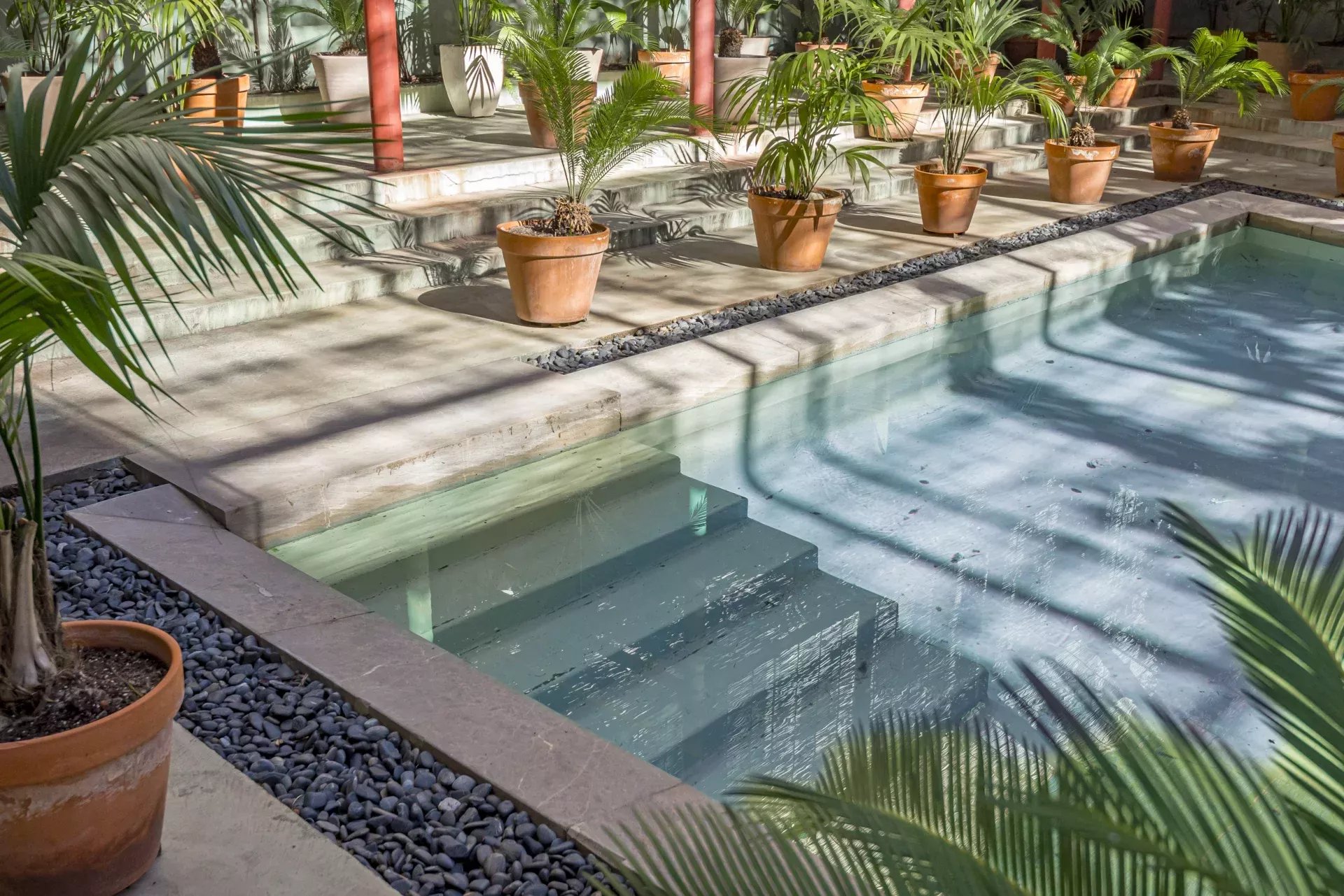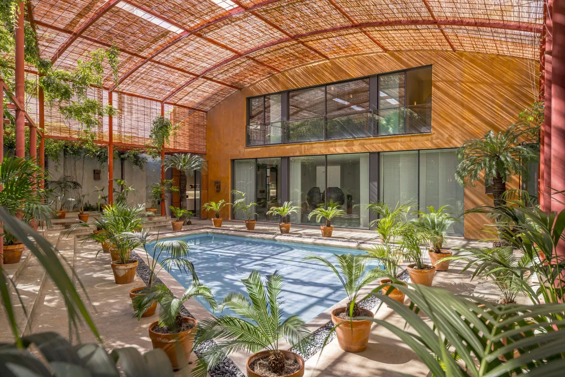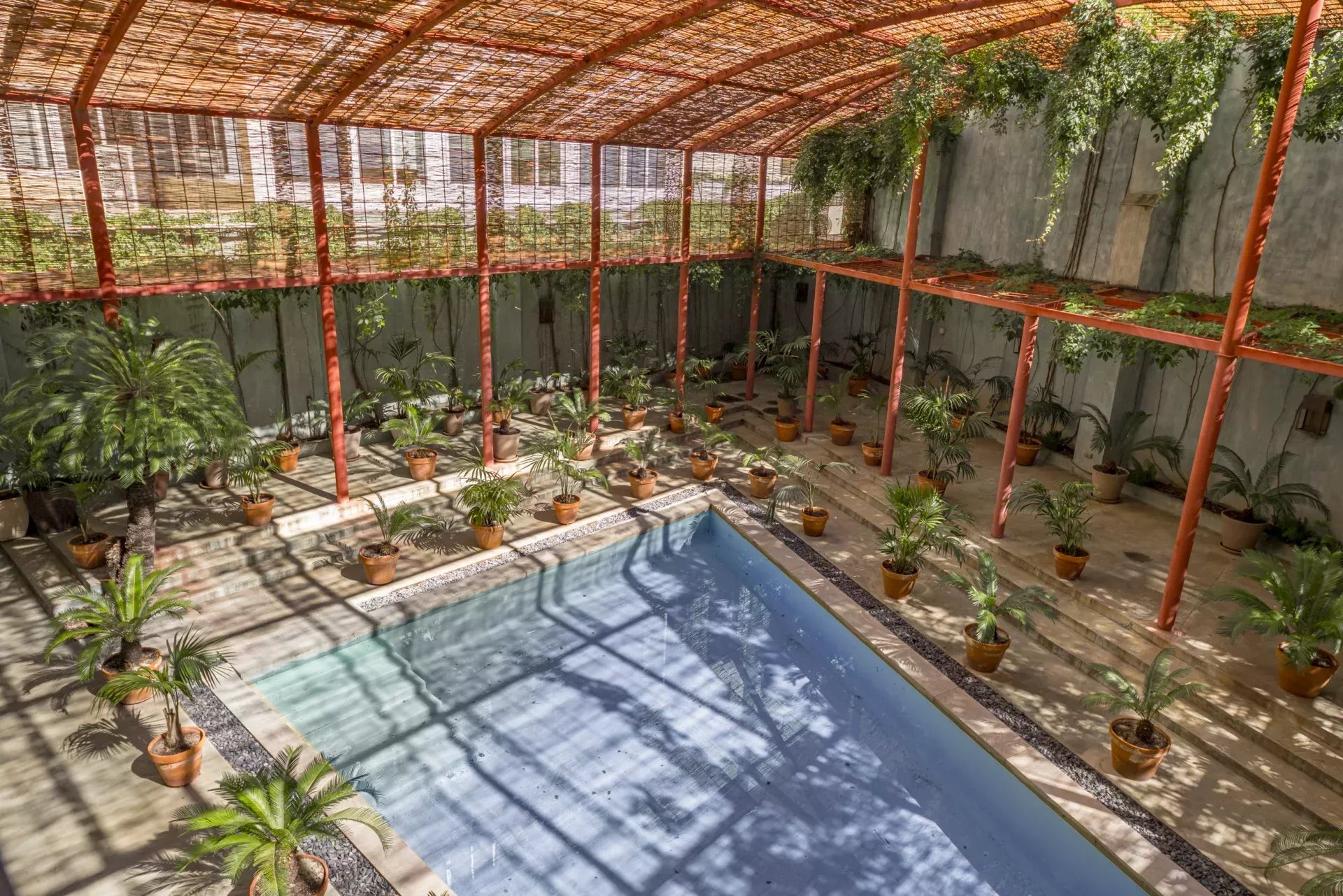 À l’extérieur, la propriété offre plus de 200 m² d’espaces ouverts, où la piscine privée entourée de végétation crée un véritable oasis urbain, idéal pour la détente et la réception.