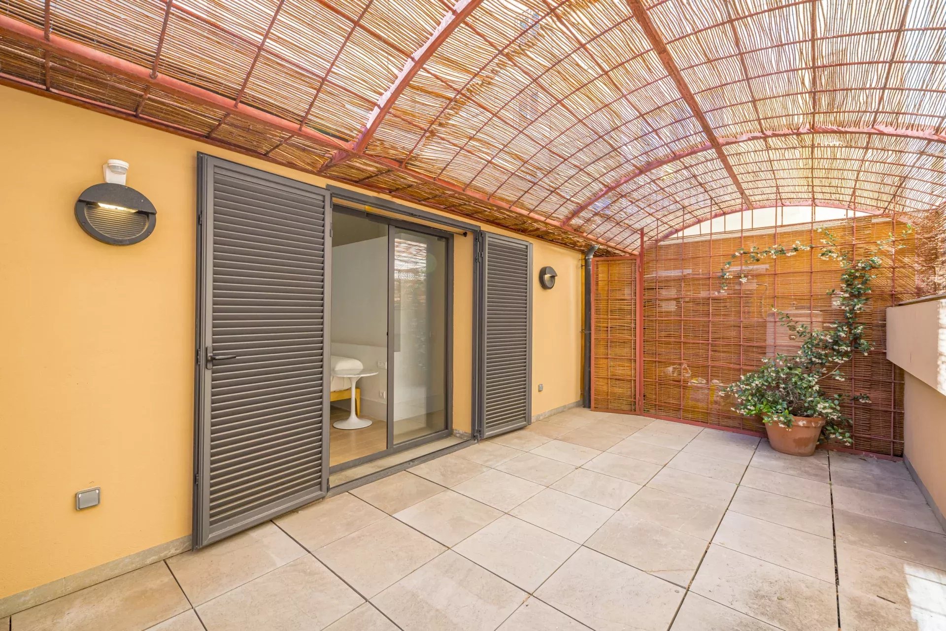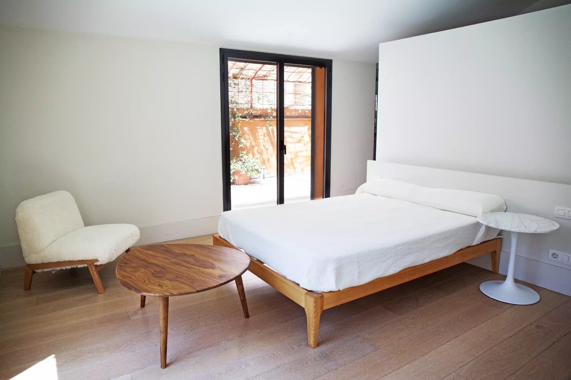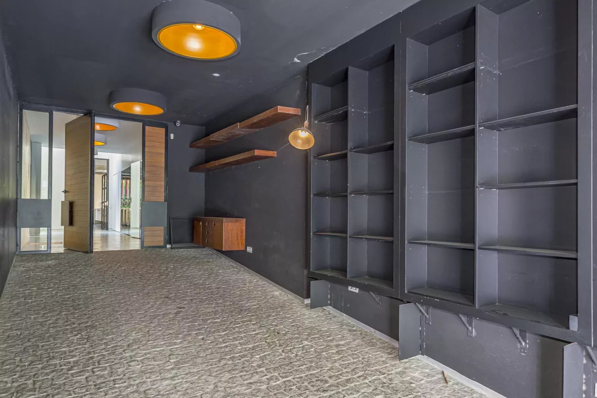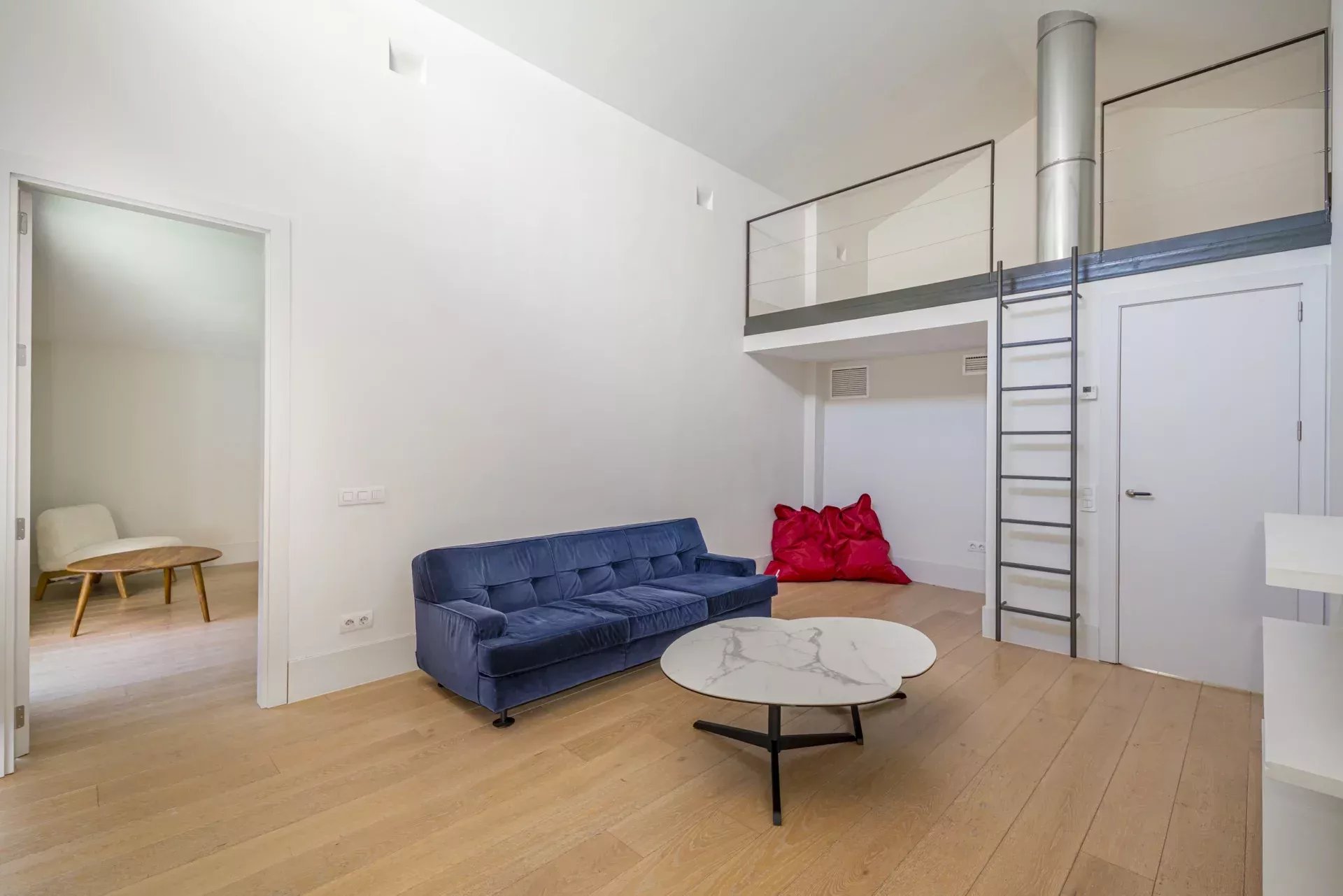 Le vaste salon-salle à manger, aux volumes généreux, s’ouvre harmonieusement vers l’extérieur grâce à de grandes baies vitrées, créant une continuité naturelle avec le jardin et la piscine privée. Cet espace offre une atmosphère unique de luminosité, d’intimité et de fluidité entre intérieur et extérieur, rare en centre-ville.