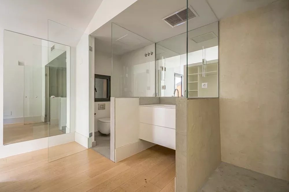 Ce spectaculaire duplex d’environ 560 m², réparti sur deux niveaux, offre un cadre de vie véritablement unique : quatre chambres en suite, un toilette invités, trois terrasses privées, une piscine ainsi qu’un garage au sein même du bien, une caractéristique rare en plein centre de Madrid.