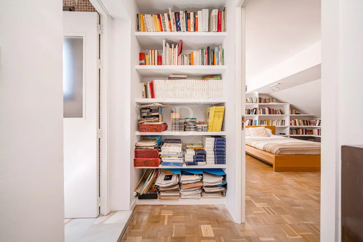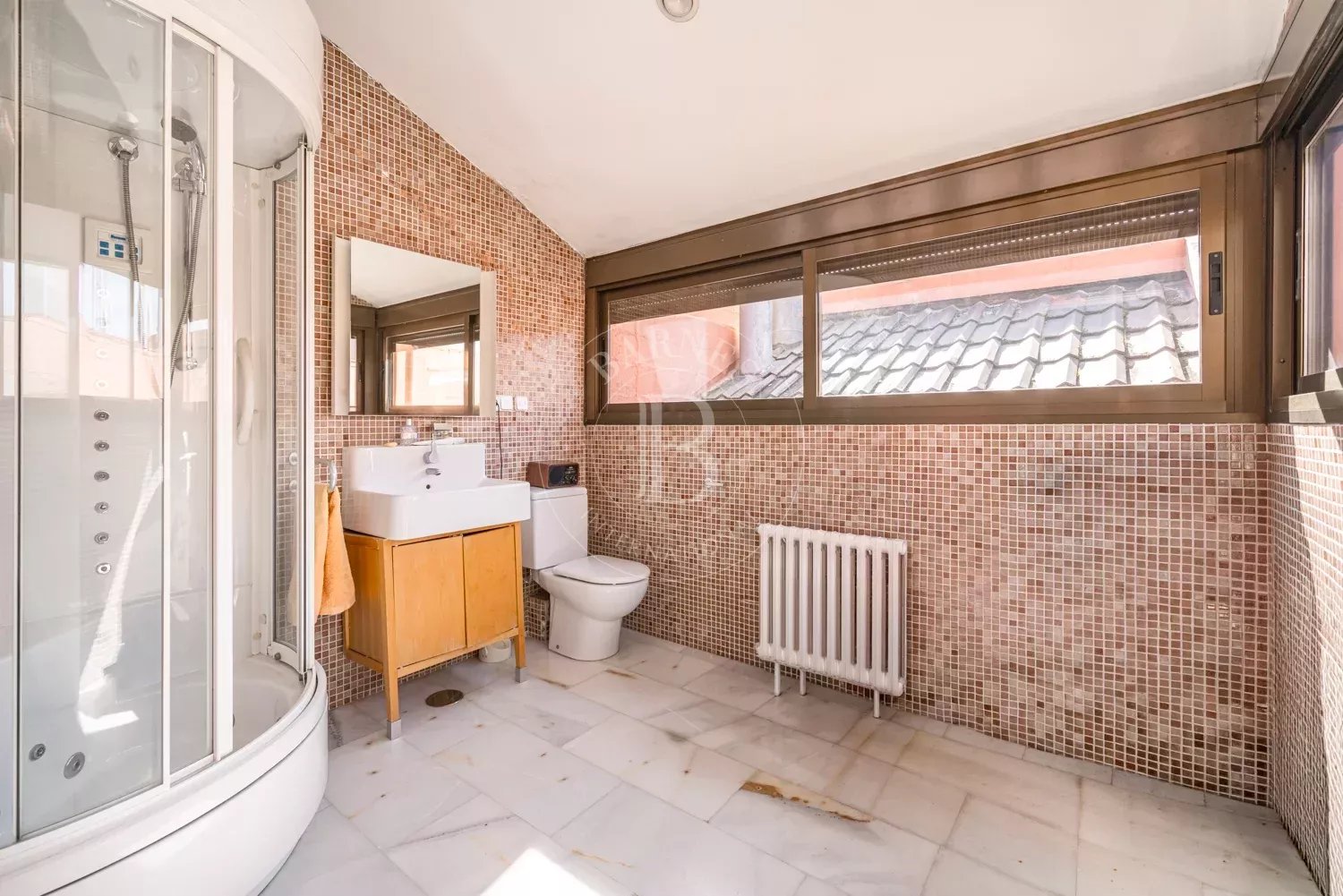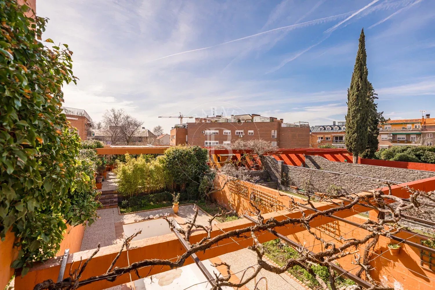 Répartie sur quatre niveaux, la propriété offre une distribution fonctionnelle et élégante, avec de généreux volumes intérieurs et une excellente luminosité grâce à sa double orientation nord-sud. La zone de réception s’ouvre sur le jardin privé, un espace extérieur arboré comprenant une piscine et des zones de détente, idéal pour profiter d’un environnement paisible à seulement quelques minutes du centre de la capitale. La maison conserve des éléments architecturaux de valeur, combinés à un bon état de conservation permettant une jouissance immédiate ou une rénovation personnalisée.