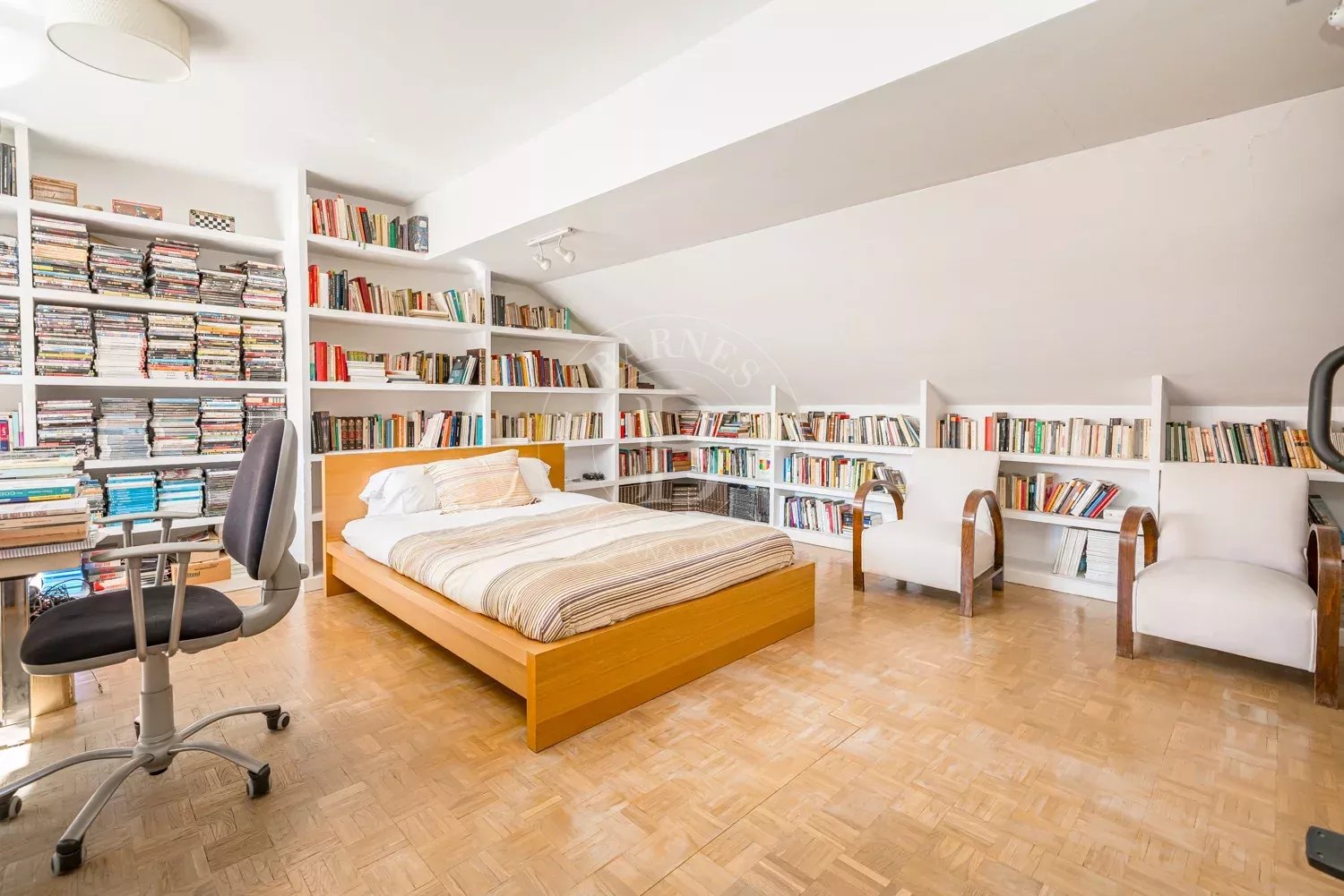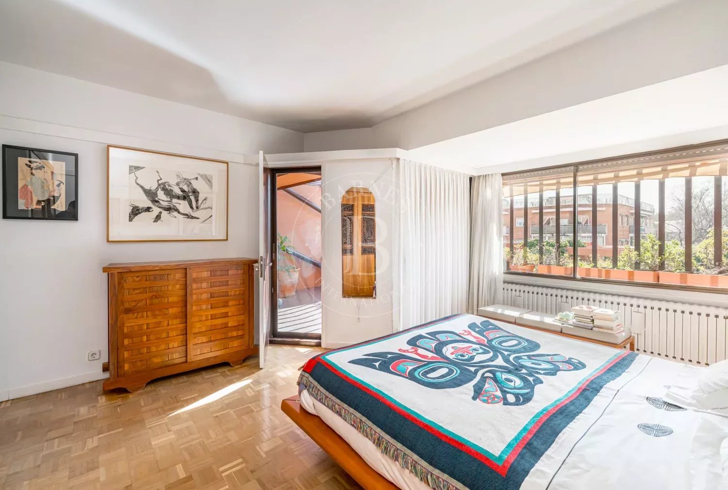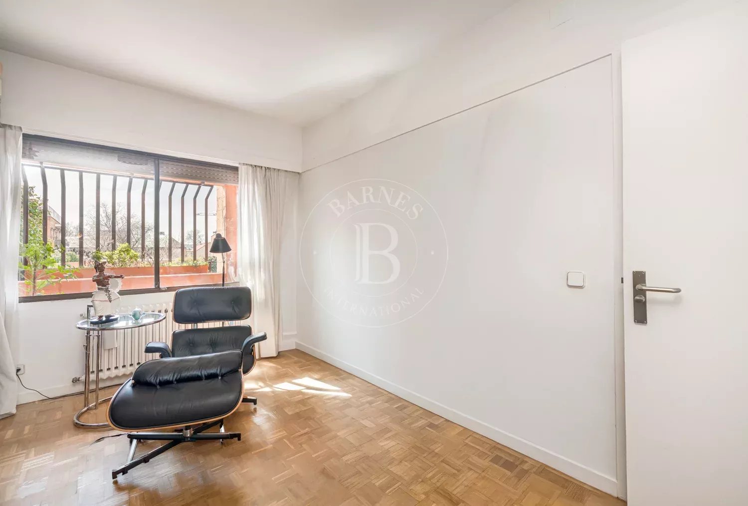Répartie sur quatre niveaux, la propriété offre une distribution fonctionnelle et élégante, avec de généreux volumes intérieurs et une excellente luminosité grâce à sa double orientation nord-sud. La zone de réception s’ouvre sur le jardin privé, un espace extérieur arboré comprenant une piscine et des zones de détente, idéal pour profiter d’un environnement paisible à seulement quelques minutes du centre de la capitale. La maison conserve des éléments architecturaux de valeur, combinés à un bon état de conservation permettant une jouissance immédiate ou une rénovation personnalisée.