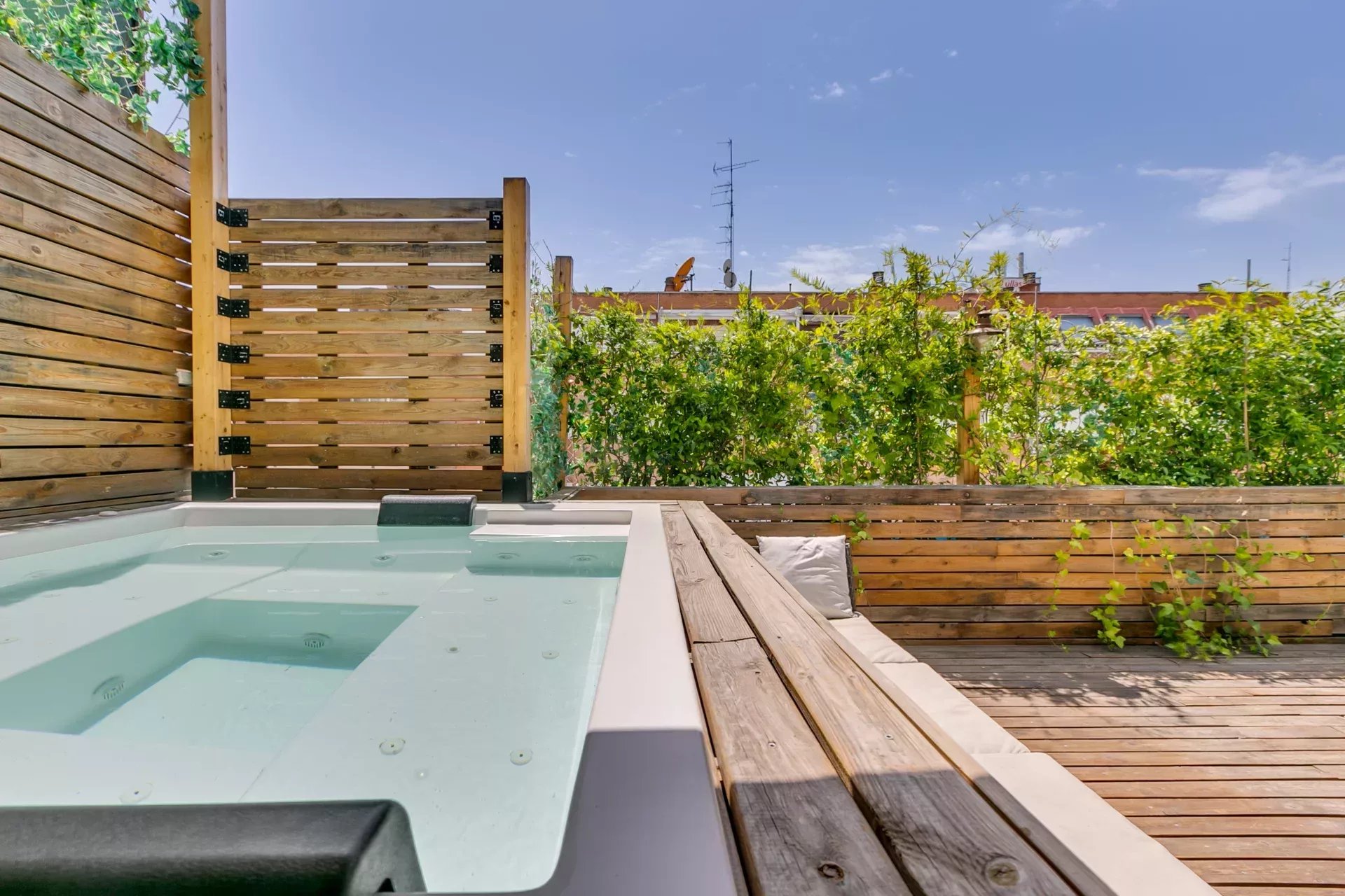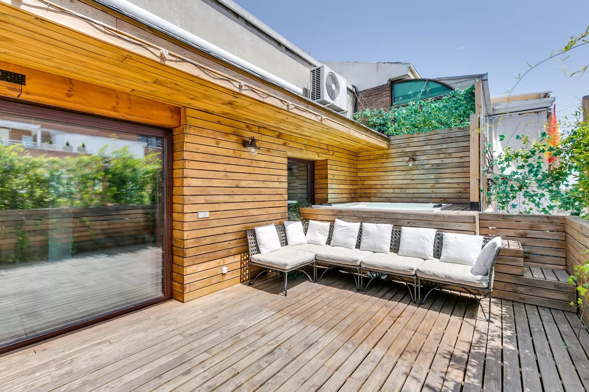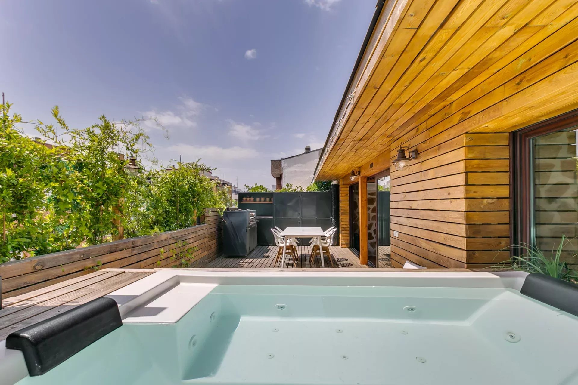 L’un des grands atouts de ce penthouse exclusif est sa terrasse, conçue comme un véritable oasis urbain : jacuzzi, barbecue argentin, système de brumisation pour rafraîchir l’air et une atmosphère idéale pour en profiter toute l’année.