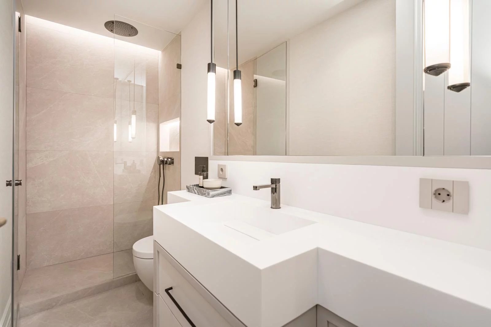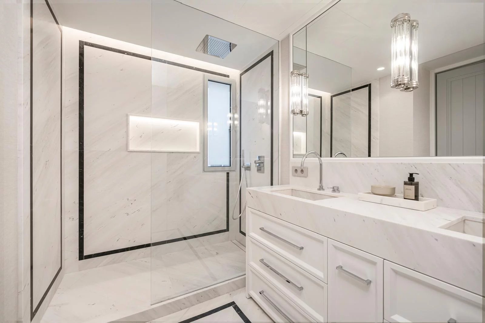 La propriété a été entièrement rénovée et meublée récemment, selon un projet soigné dans les moindres détails, avec des finitions premium de très haut standing. Le vaste salon-salle à manger, baigné de lumière naturelle, s’ouvre directement sur une agréable terrasse, idéale pour profiter de l’extérieur en plein cœur de la ville. La cuisine moderne, entièrement équipée, allie fonctionnalité et esthétique avec des matériaux de première qualité.