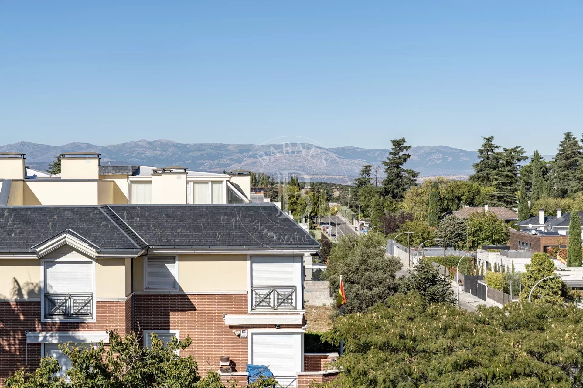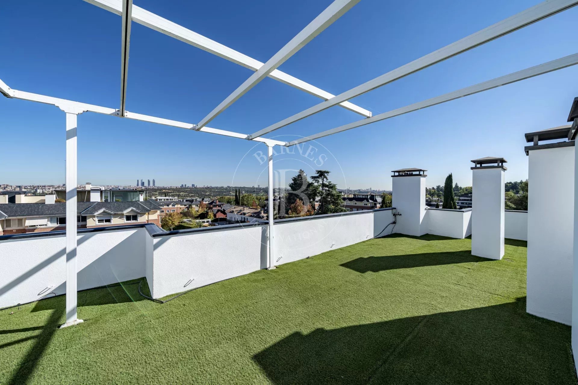À l’étage supérieur se trouve une spectaculaire terrasse de 105 m² avec vues panoramiques à 360º, parmi les plus belles de Valdemarín. Elle offre des vues sur la Cathédrale de l’Almudena, le Palais Royal, les Quatre Tours, l’Hippodrome de la Zarzuela, le Monte del Pardo et la Sierra de Madrid. La terrasse dispose d’un sol en gazon artificiel, d’une pergola avec store automatique et d’un système d’arrosage, idéale pour en profiter toute l’année, avec la possibilité d’un fermeture partielle. Deux grandes places de parking et un débarras de 9,40 m² sont inclus, ainsi qu’une estimation hypothécaire récente de 1 675 141 €.