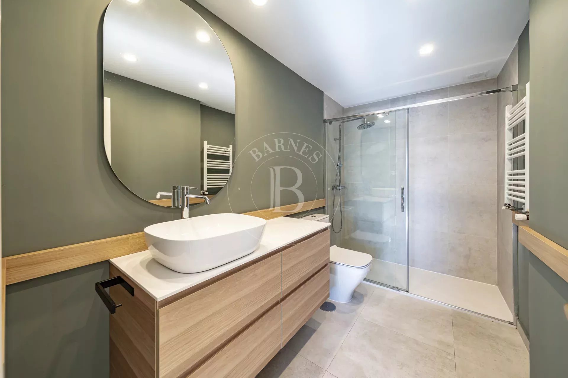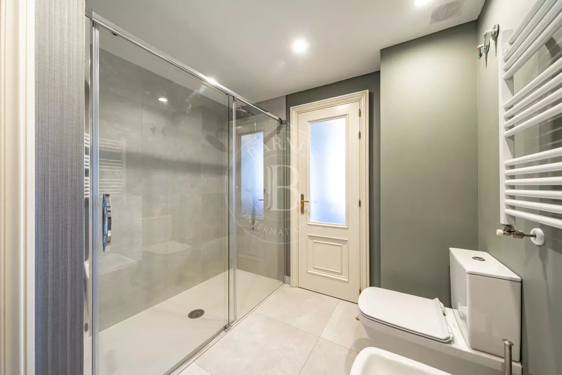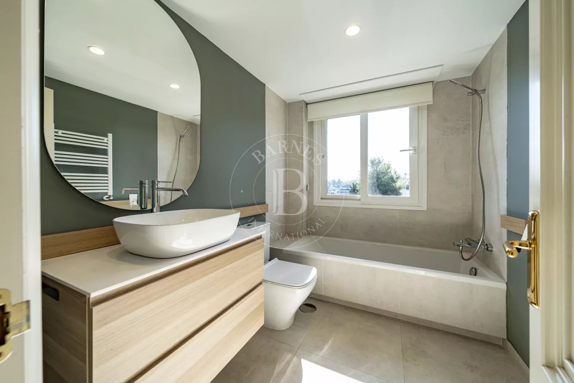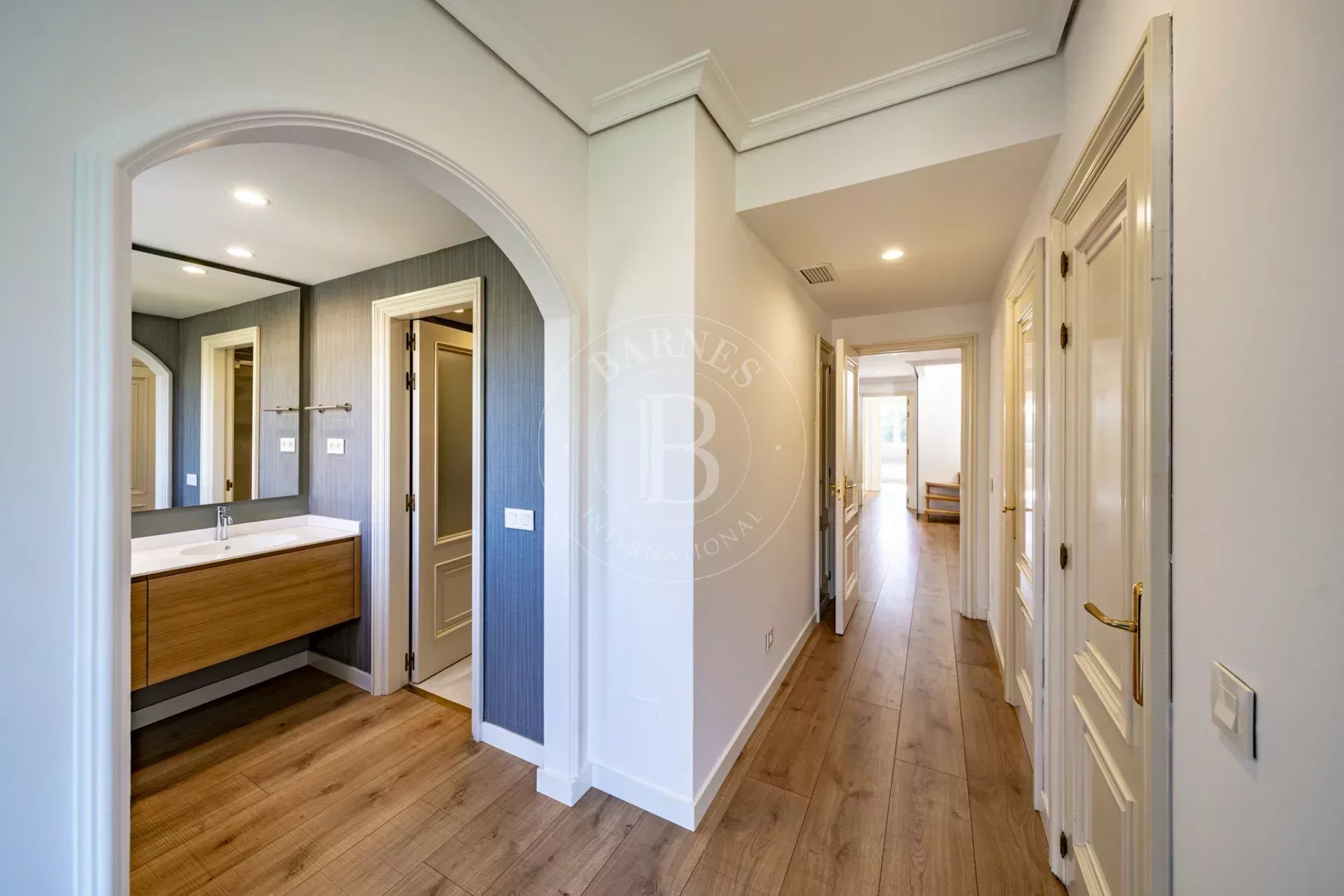 Rénové en 2022, le bien se développe sur deux niveaux : un étage principal de 143 m² et un étage supérieur avec une terrasse de 105 m². Le niveau principal comprend un hall d’entrée avec placard, des toilettes invités, trois chambres (dont deux en suite), un vaste et lumineux salon-salle à manger, une cuisine entièrement équipée avec des appareils haut de gamme et une buanderie. La suite parentale dispose de deux dressings et d’une salle de bains privative ; la seconde chambre bénéficie d’un dressing et d’une salle de bains, tandis que la troisième chambre est dotée de placards intégrés. Toutes les fenêtres sont équipées de stores en tissu screen récemment installés.