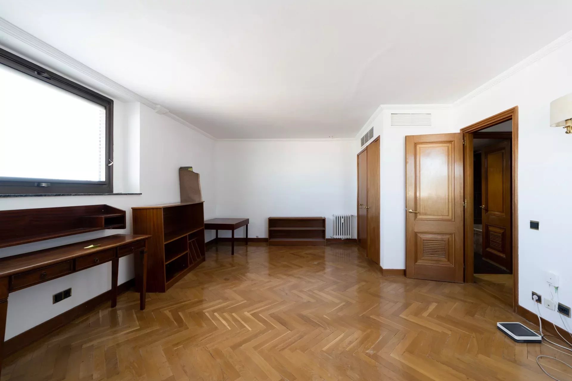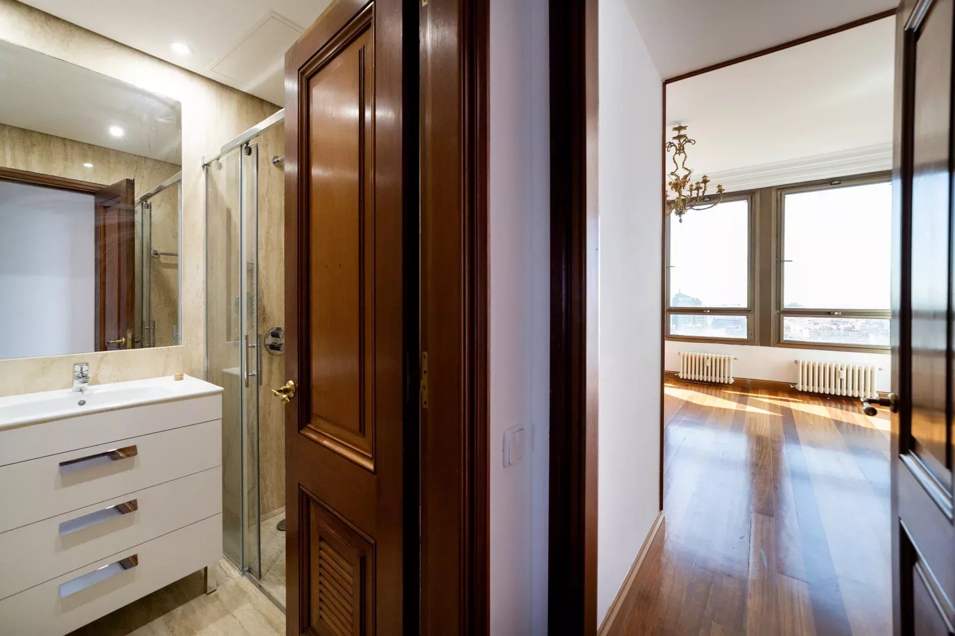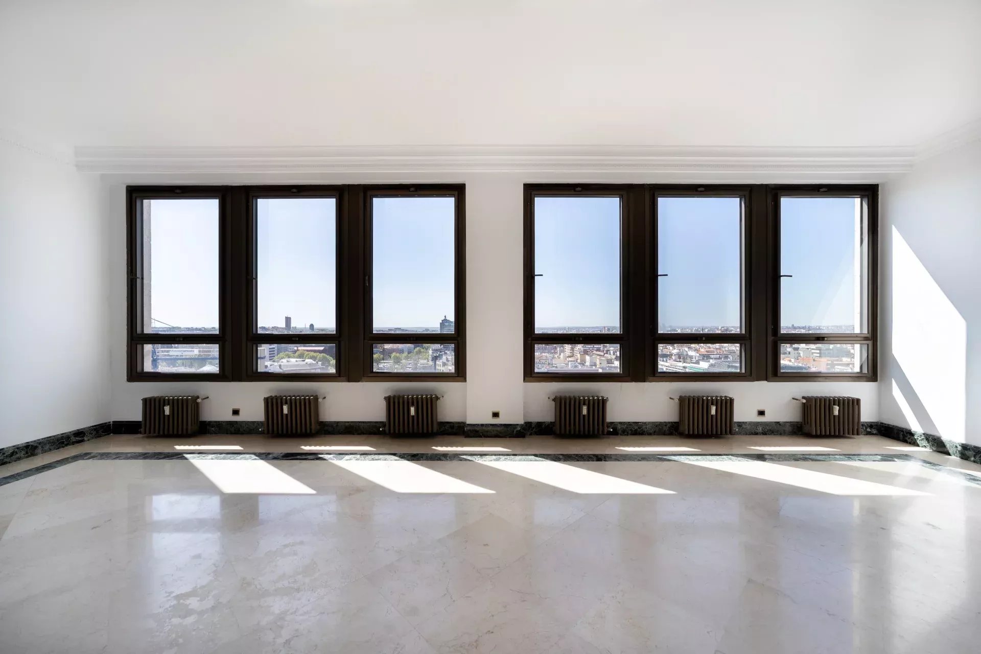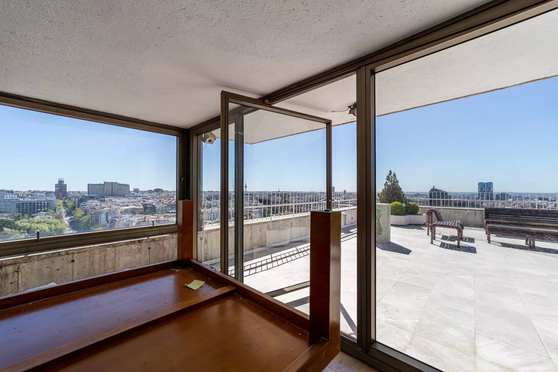 Réparti sur deux niveaux, l’étage principal se distingue par sa grande polyvalence, permettant de concevoir une distribution sur mesure selon les besoins et le style de vie du futur propriétaire. À l’étage supérieur, une terrasse spectaculaire offre des vues incomparables sur Madrid, des gratte-ciel du nord aux monuments historiques du centre, constituant un espace unique pour profiter du ciel madrilène en toute intimité.