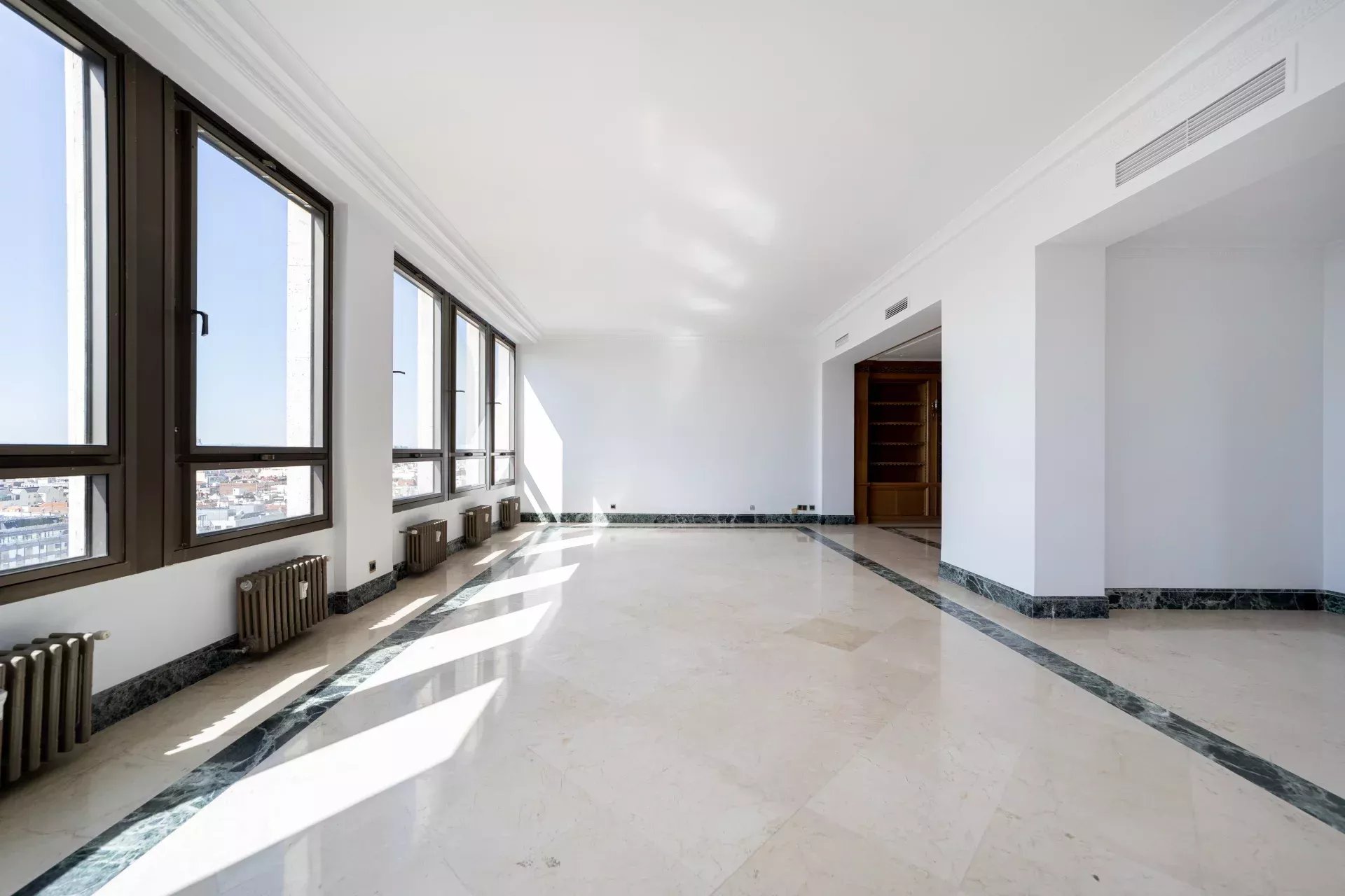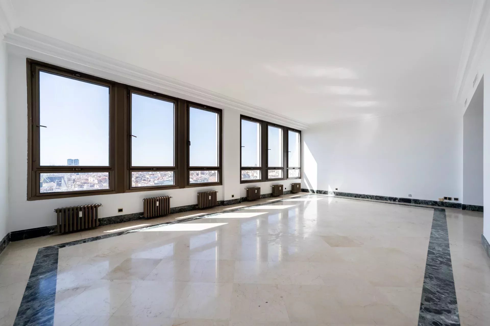 BARNES Madrid présente ce spectaculaire penthouse en duplex de 621 m² situé dans le prestigieux quartier de Salamanca, zone Castellana. Niché dans un immeuble de standing avec service de conciergerie 24h/24, ce bien offre une occasion unique de créer une résidence de luxe sur mesure, avec des volumes exceptionnels, des vues panoramiques et un emplacement imbattable au cœur de Madrid.