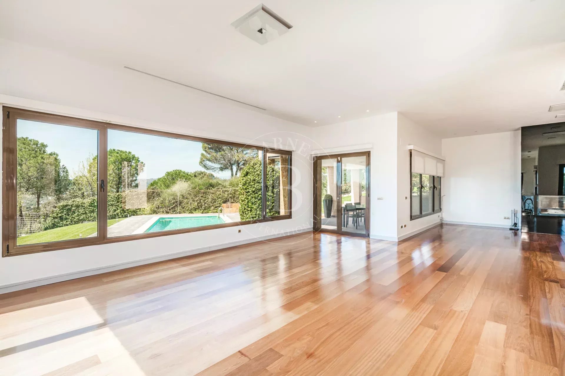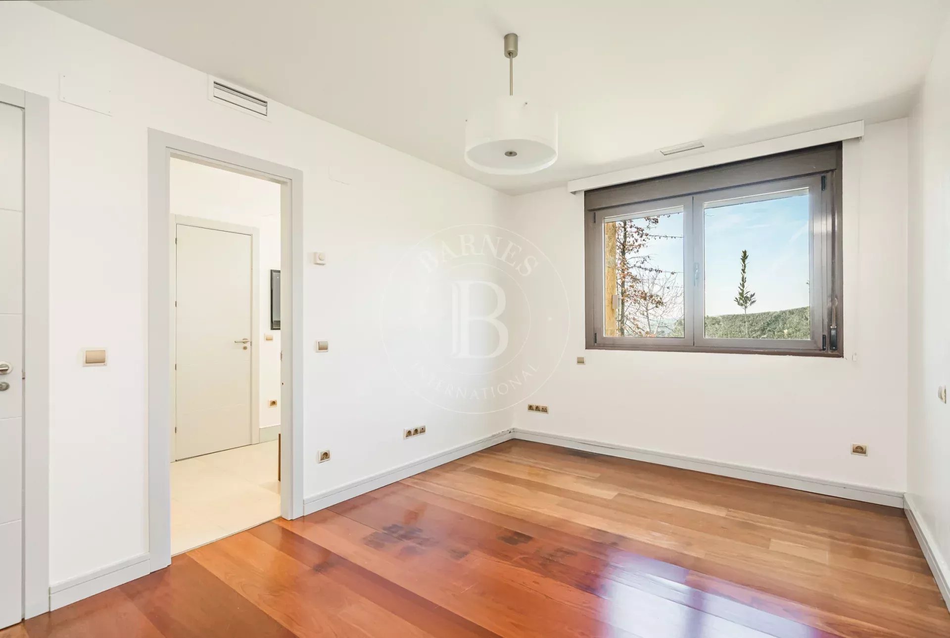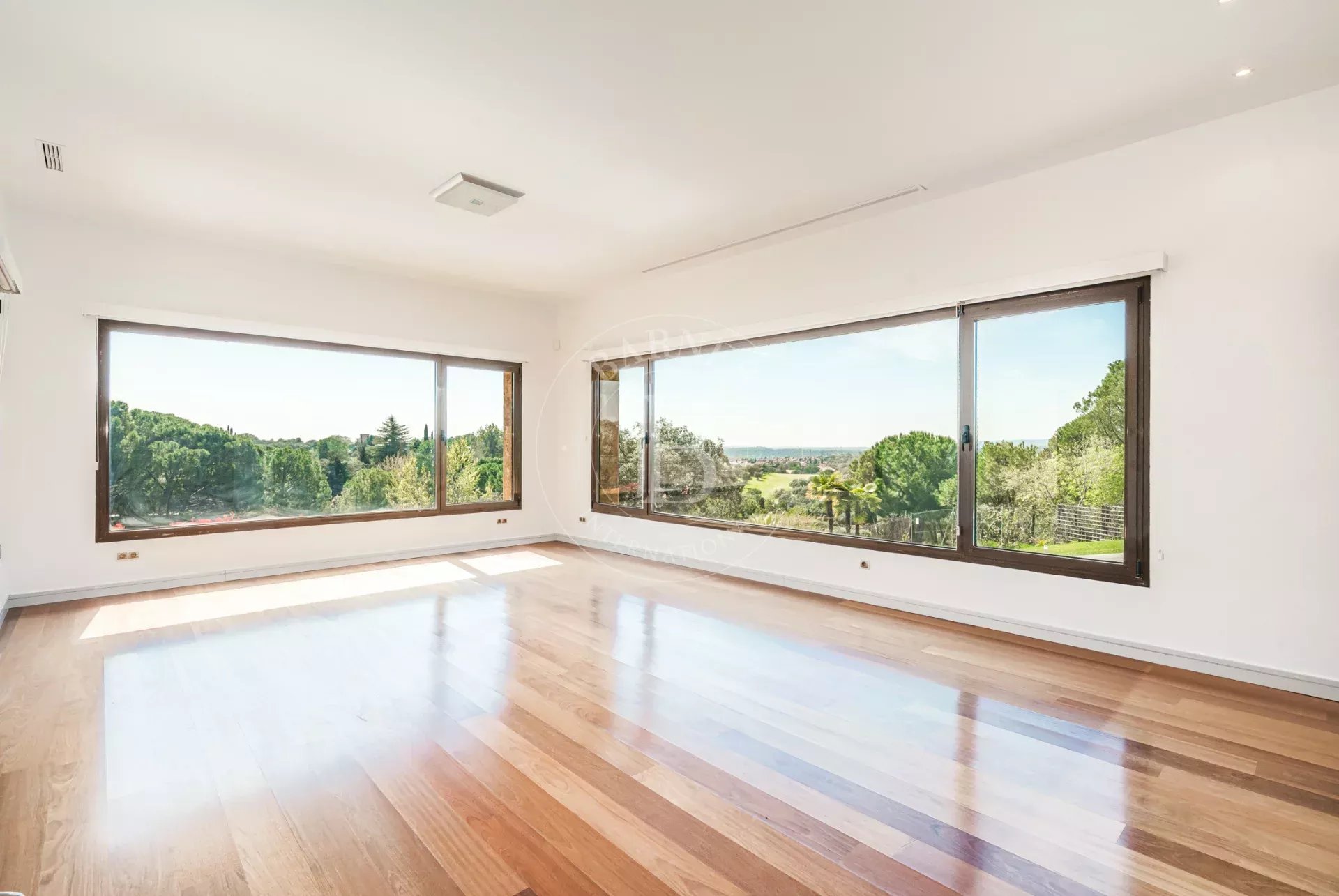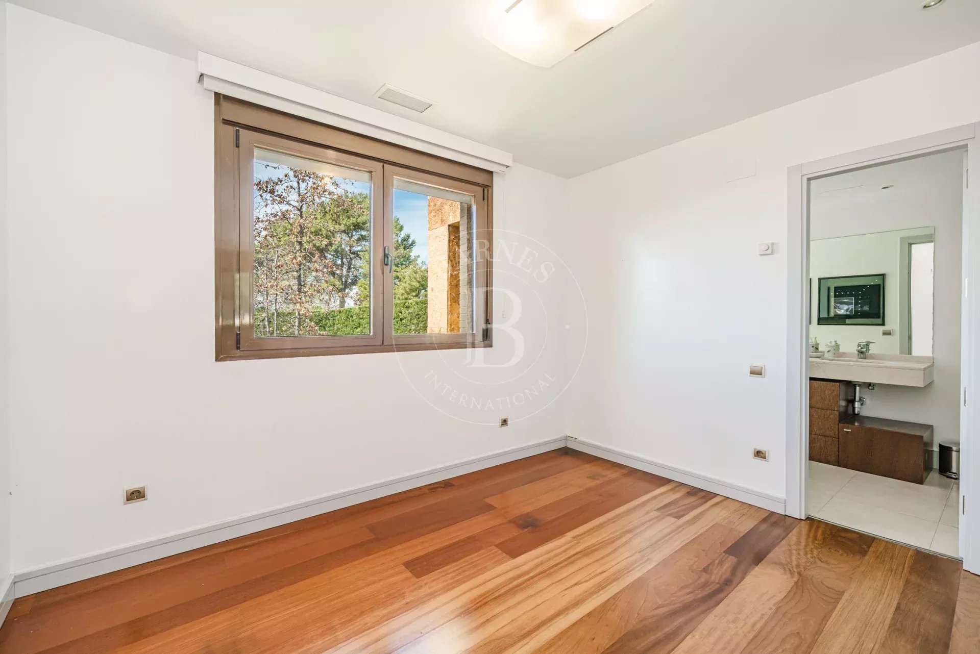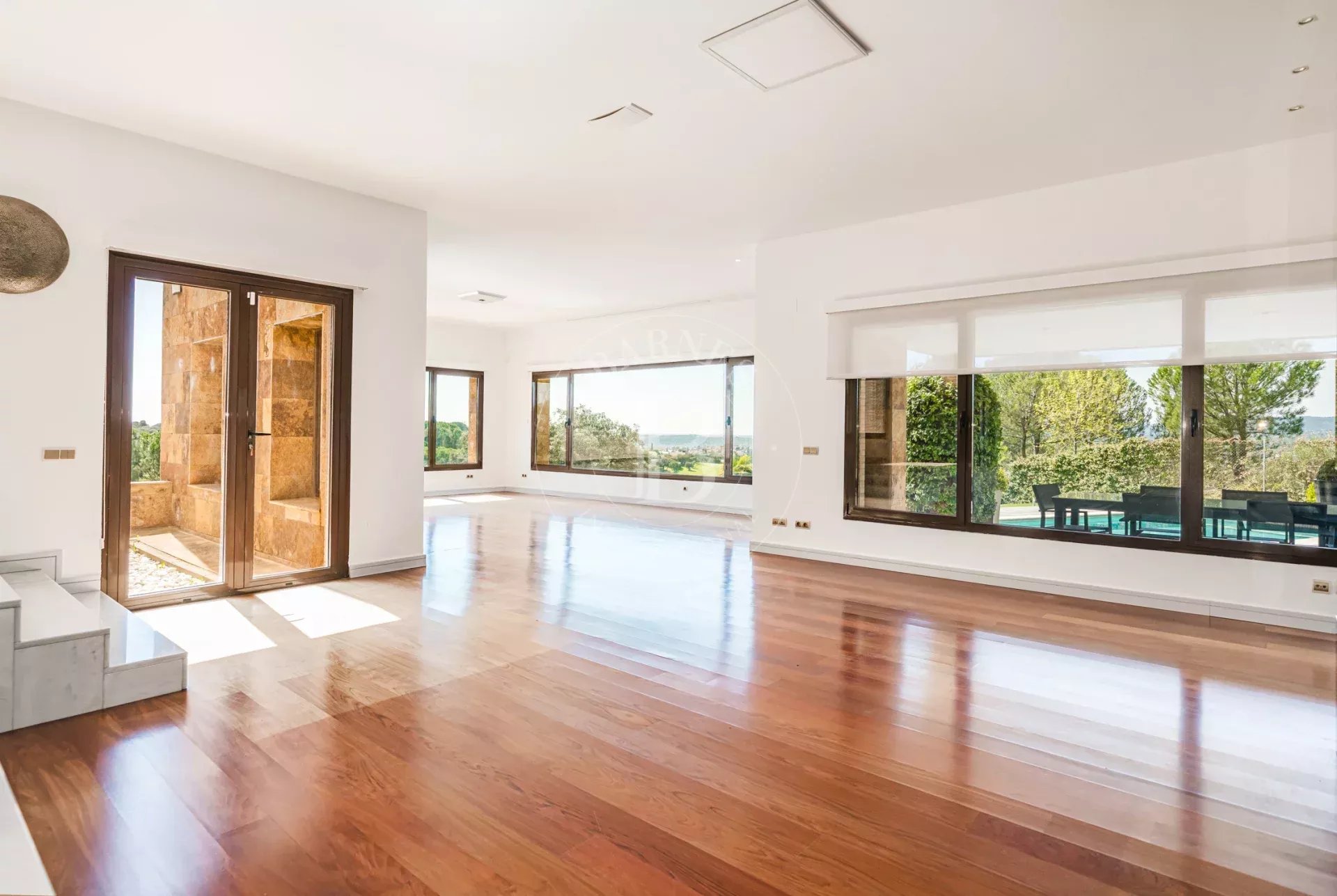 The heart of the house is its imposing double-height living room, a highly sophisticated space bathed in natural light thanks to its excellent orientation. From here, as well as from the master suite, you can enjoy open and unobstructed views of the green, creating an atmosphere of serenity and spaciousness that is difficult to match.