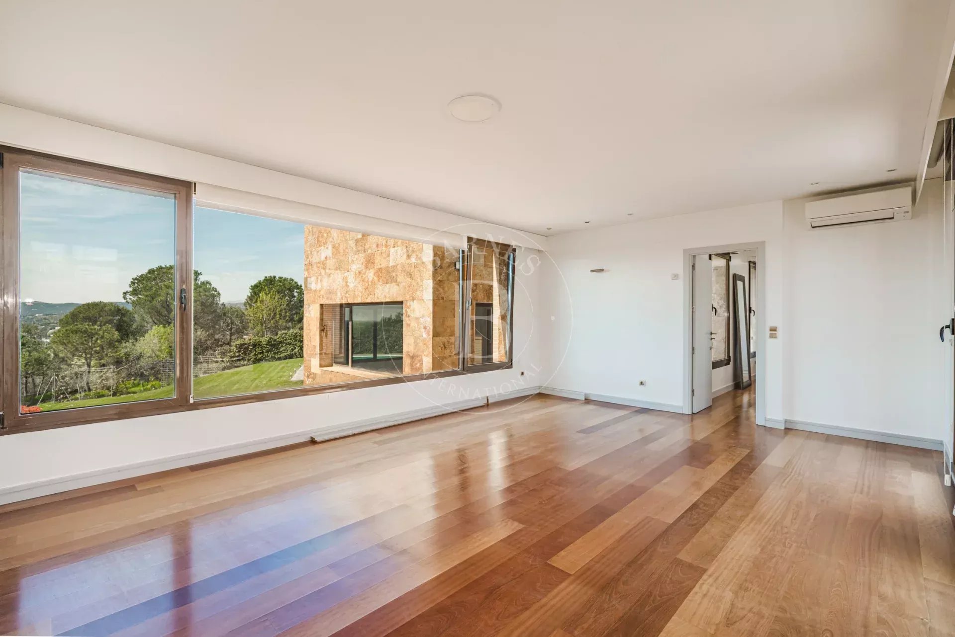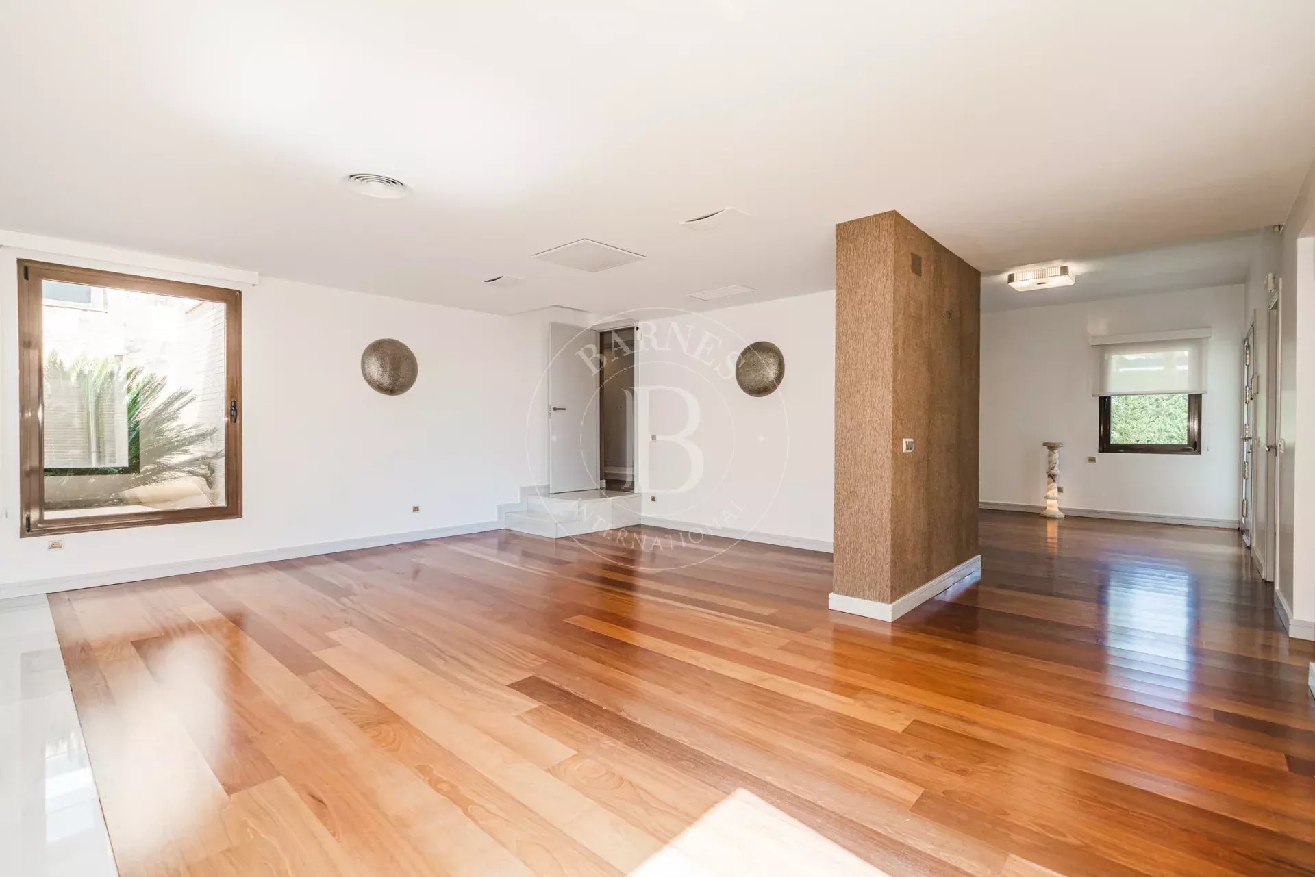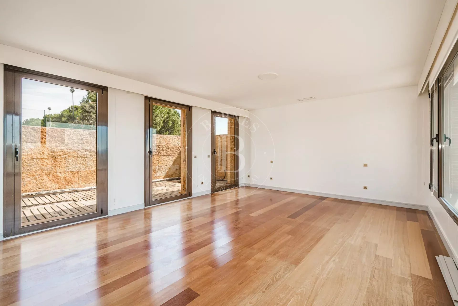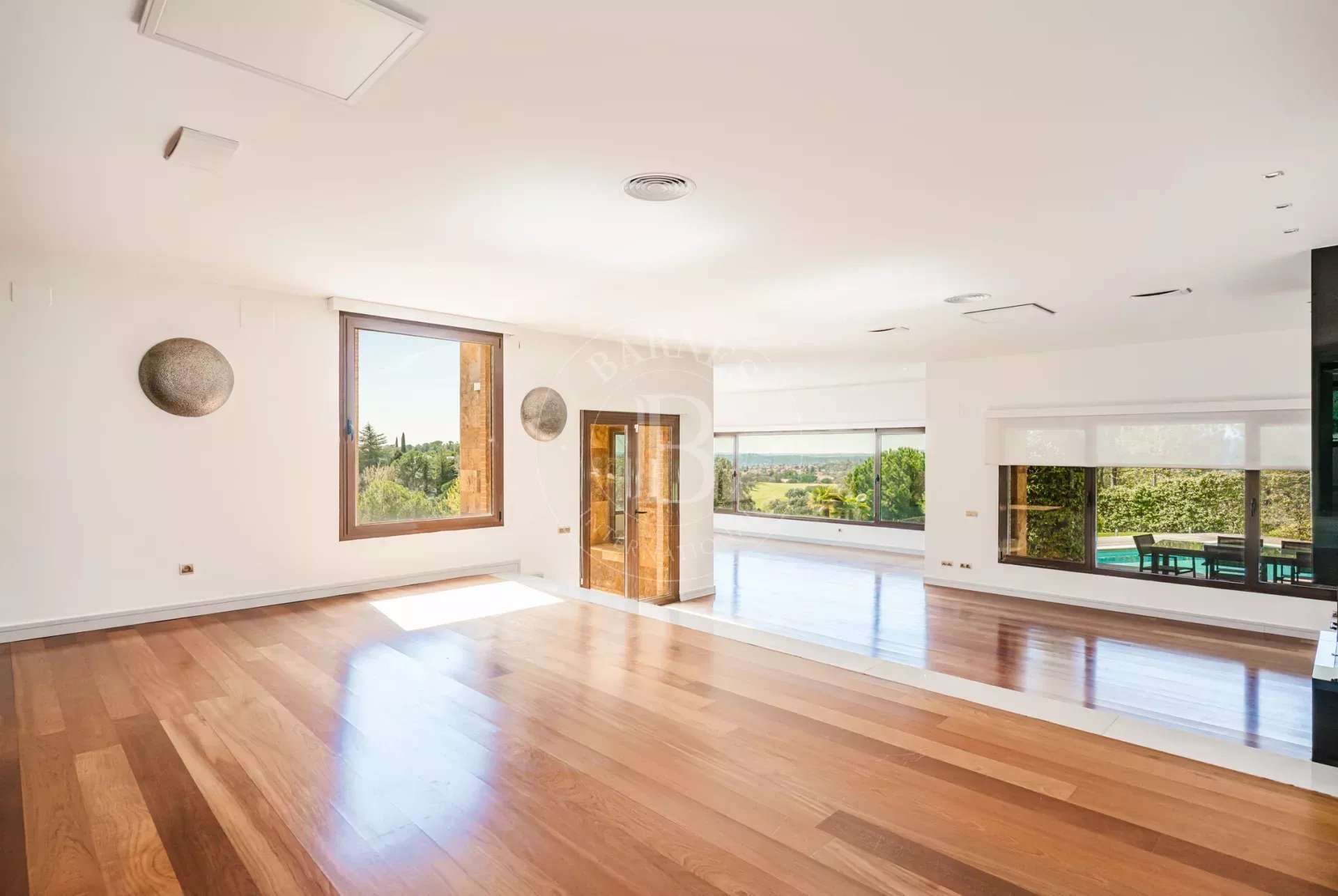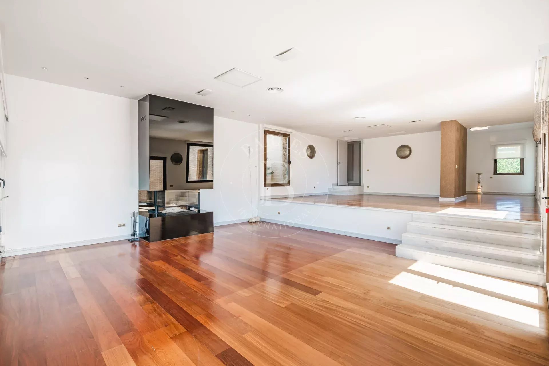 The heart of the house is its imposing double-height living room, a highly sophisticated space bathed in natural light thanks to its excellent orientation. From here, as well as from the master suite, you can enjoy open and unobstructed views of the green, creating an atmosphere of serenity and spaciousness that is difficult to match.
