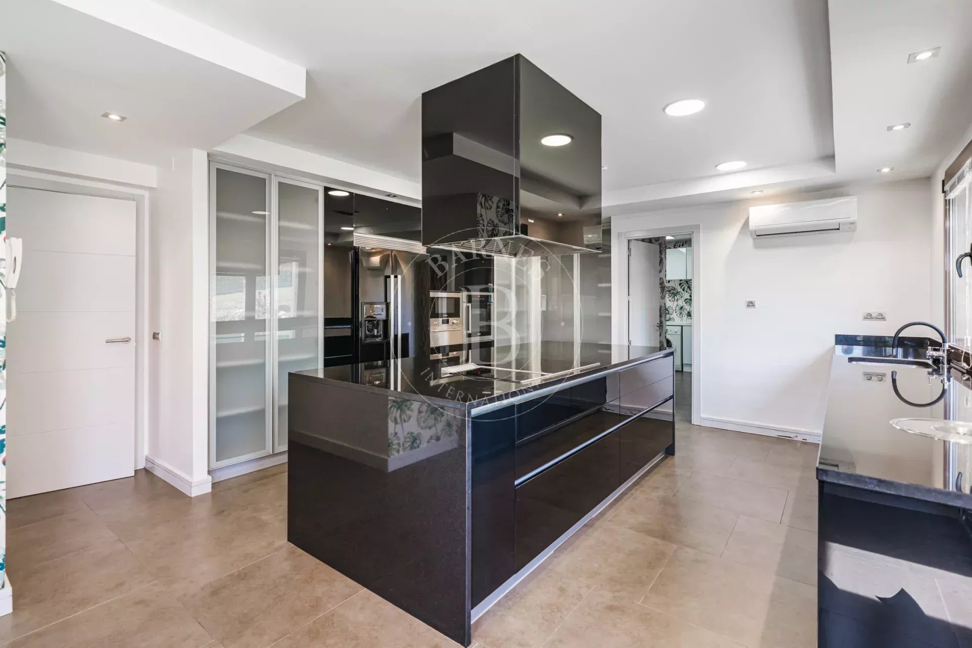 The spacious and carefully designed kitchen is complemented by a generously sized separate laundry room, which can also be used as a service bedroom, adding versatility and practicality to the whole.