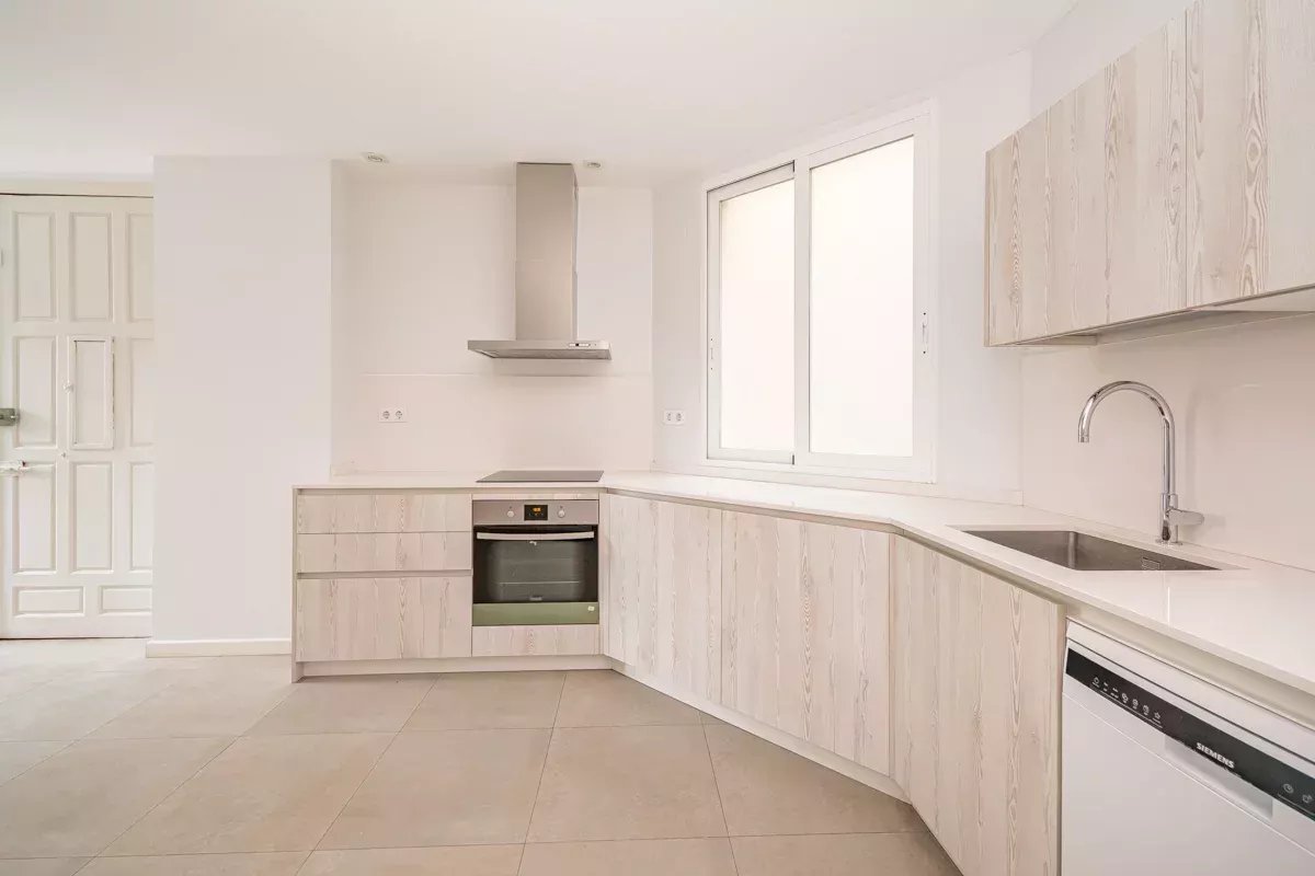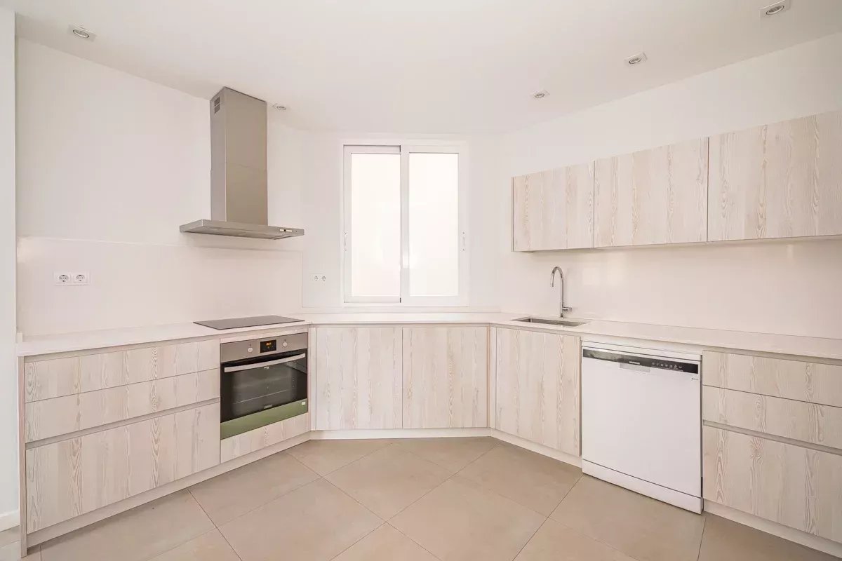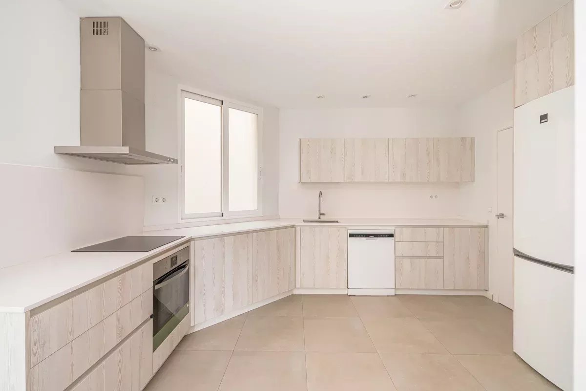 The fully renovated kitchen is both functional and contemporary, equipped with high-end appliances and elegant finishes. It also includes a dedicated service area with its own independent entrance—ideal for discreet daily operations.