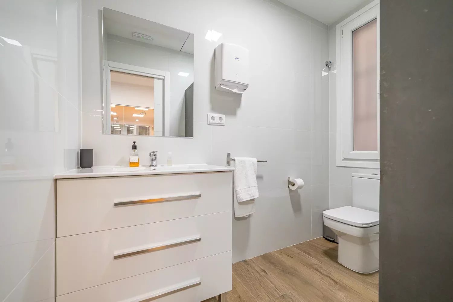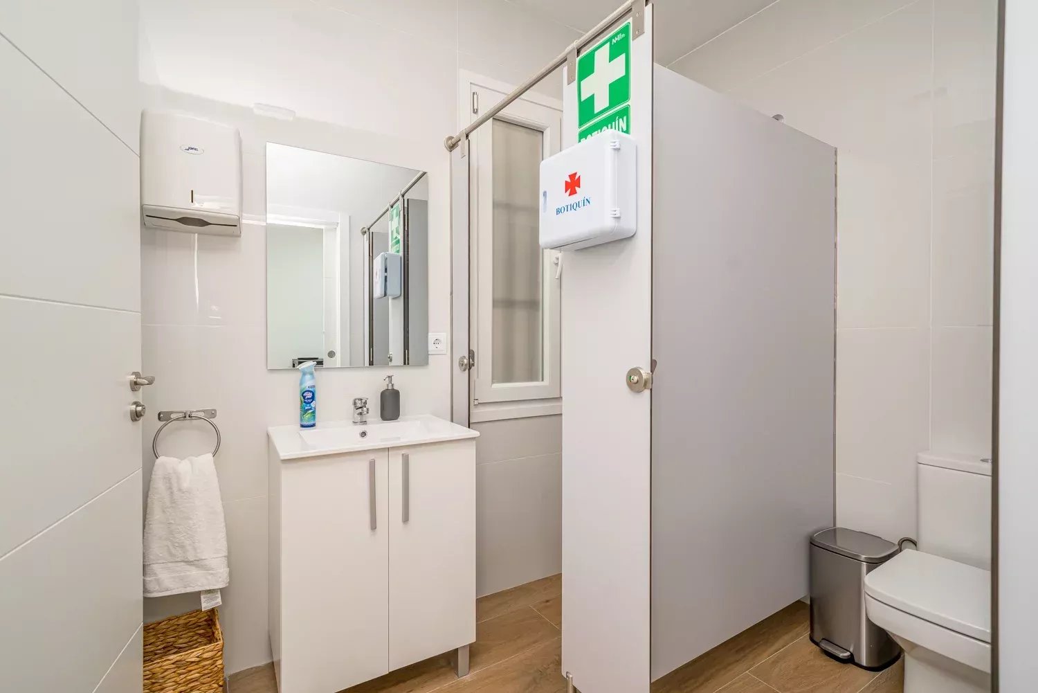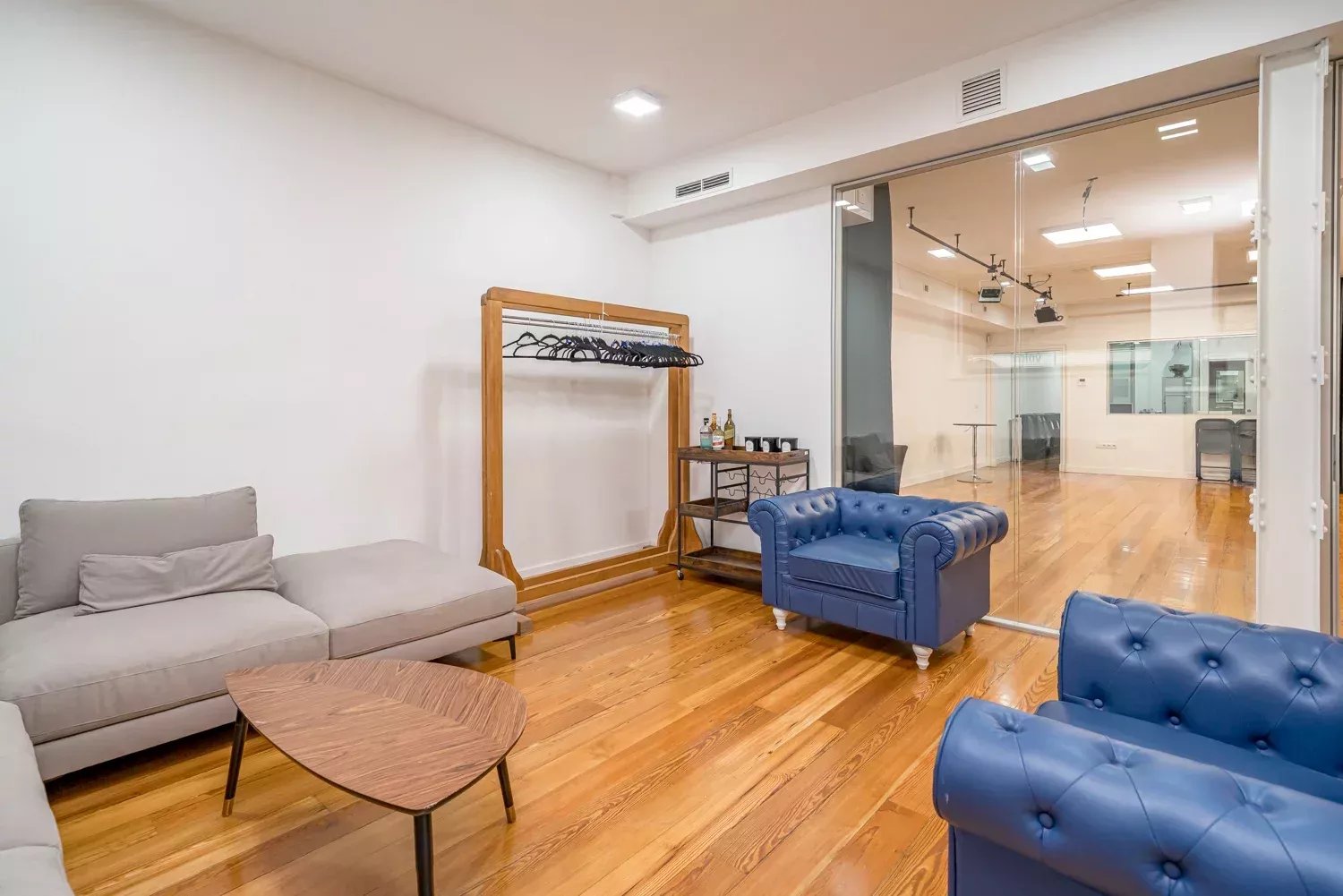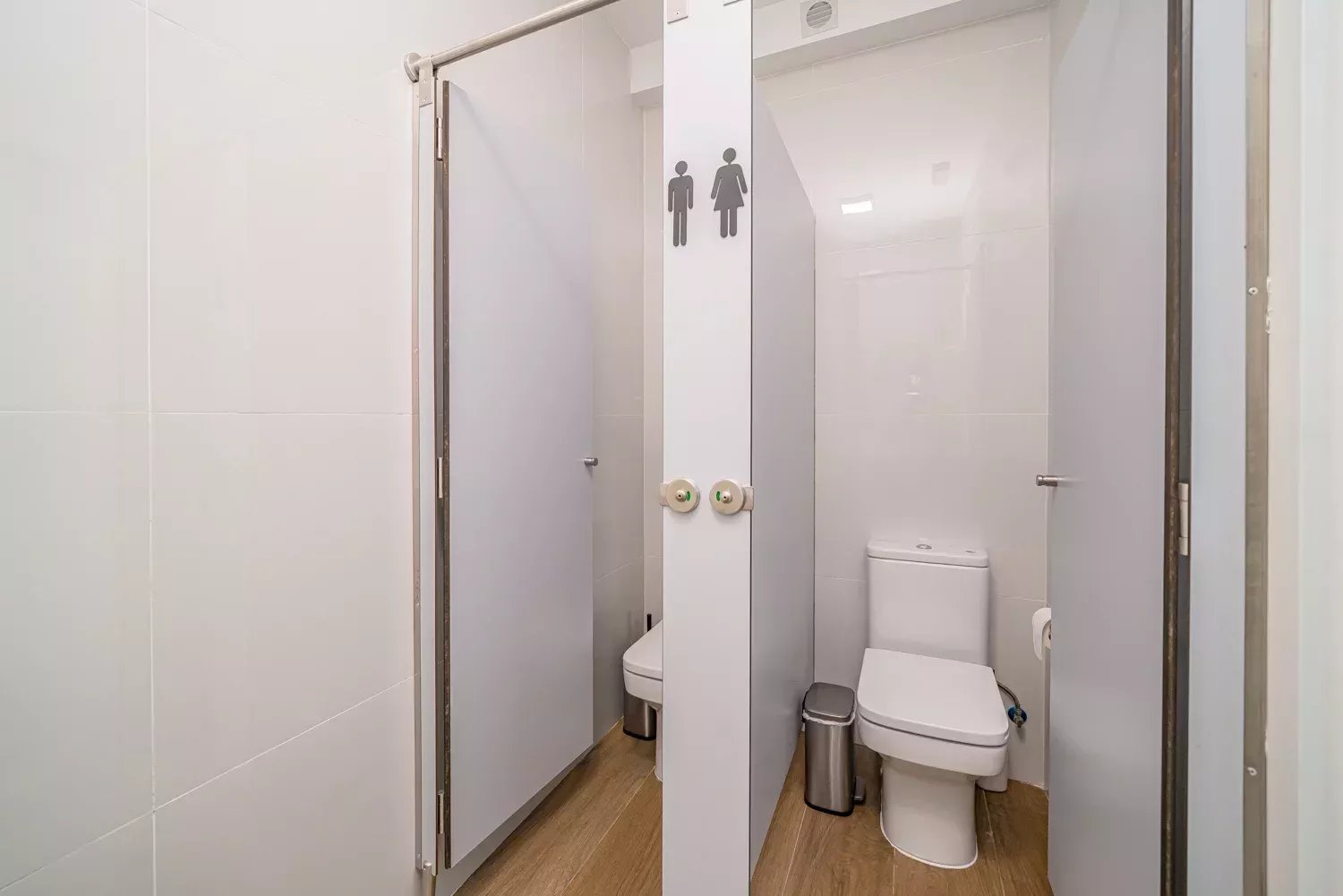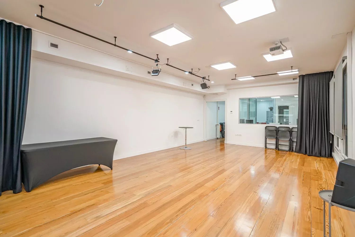 Here there is a main room with three soundproof booths, a green recording studio, a recording room, and a soundproof studio, as well as a small kitchen and bathrooms. The premises are specially designed for activities related to TV recording, reporting, or audiovisual productions that require professional soundproofing.