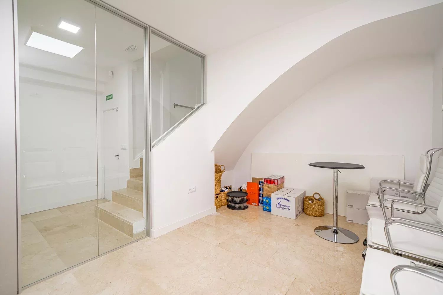 It has independent access from the street and from the entrance, offering great versatility and convenience. The upper floor, measuring 192 m² and almost completely open plan, has a reception area, bathroom, and a small staircase connecting to the lower floor, which is the main space of the premises.