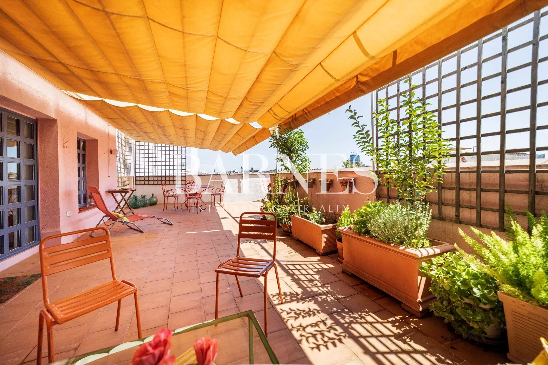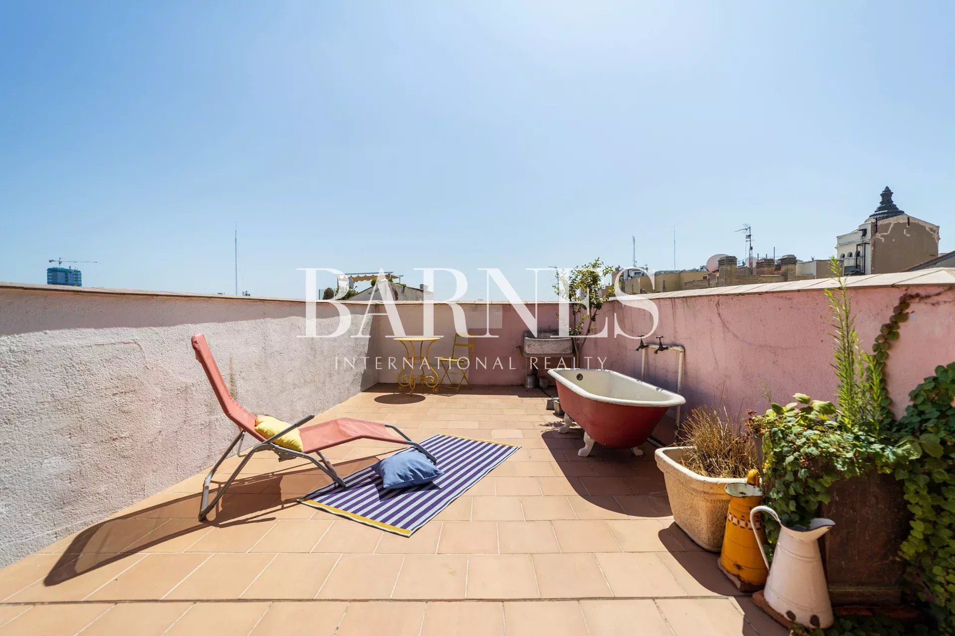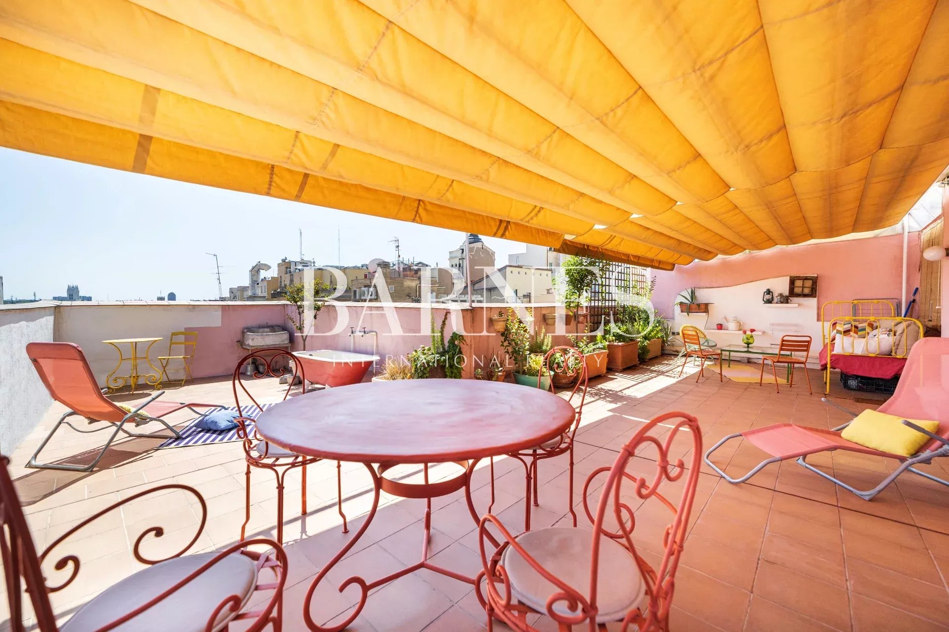 BARNES presents this spectacular furnished penthouse with a 60-square-meter terrace, facing south with a fantastic panoramic view of the skies of Madrid, near Gran Vía in a building from the early 20th century.