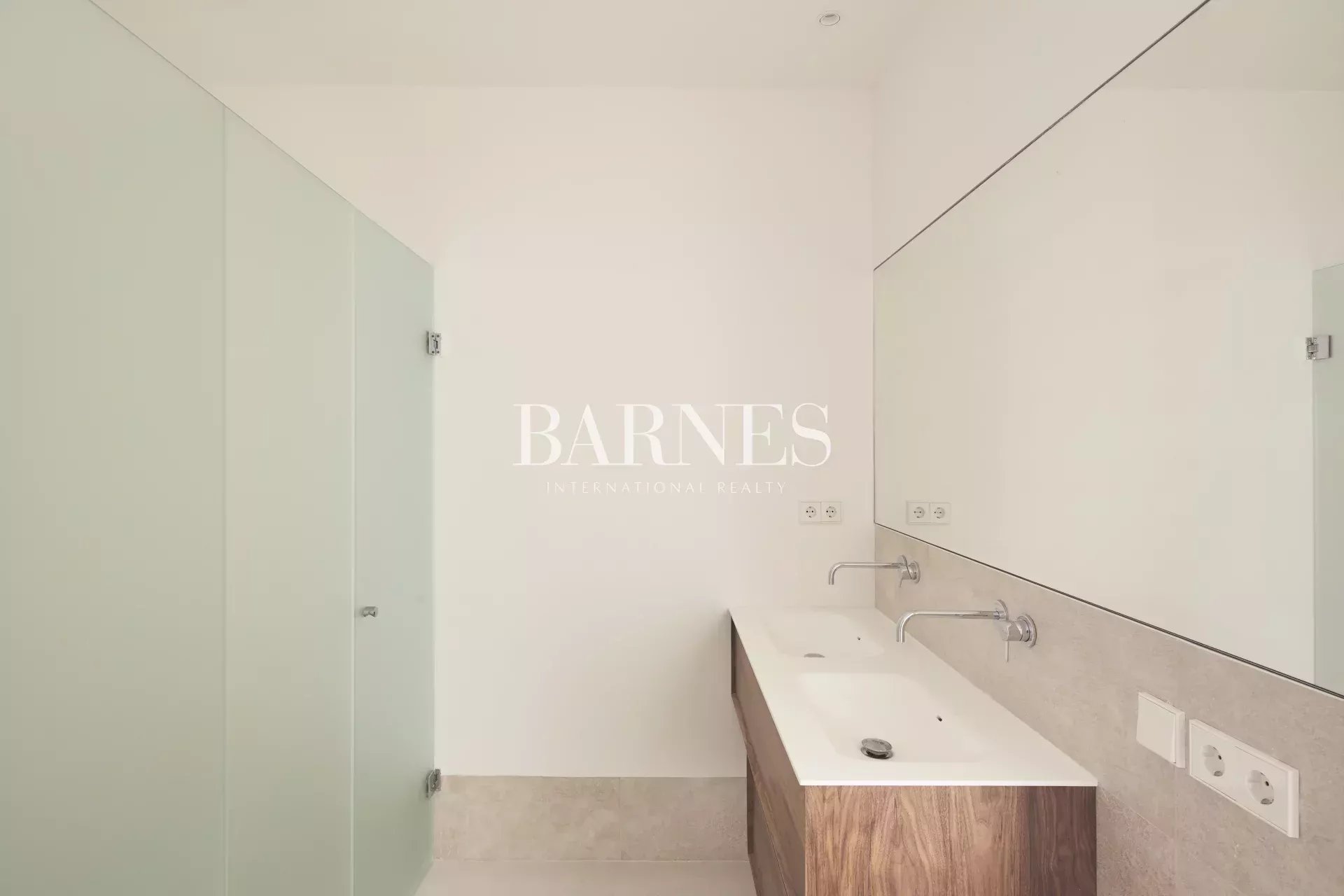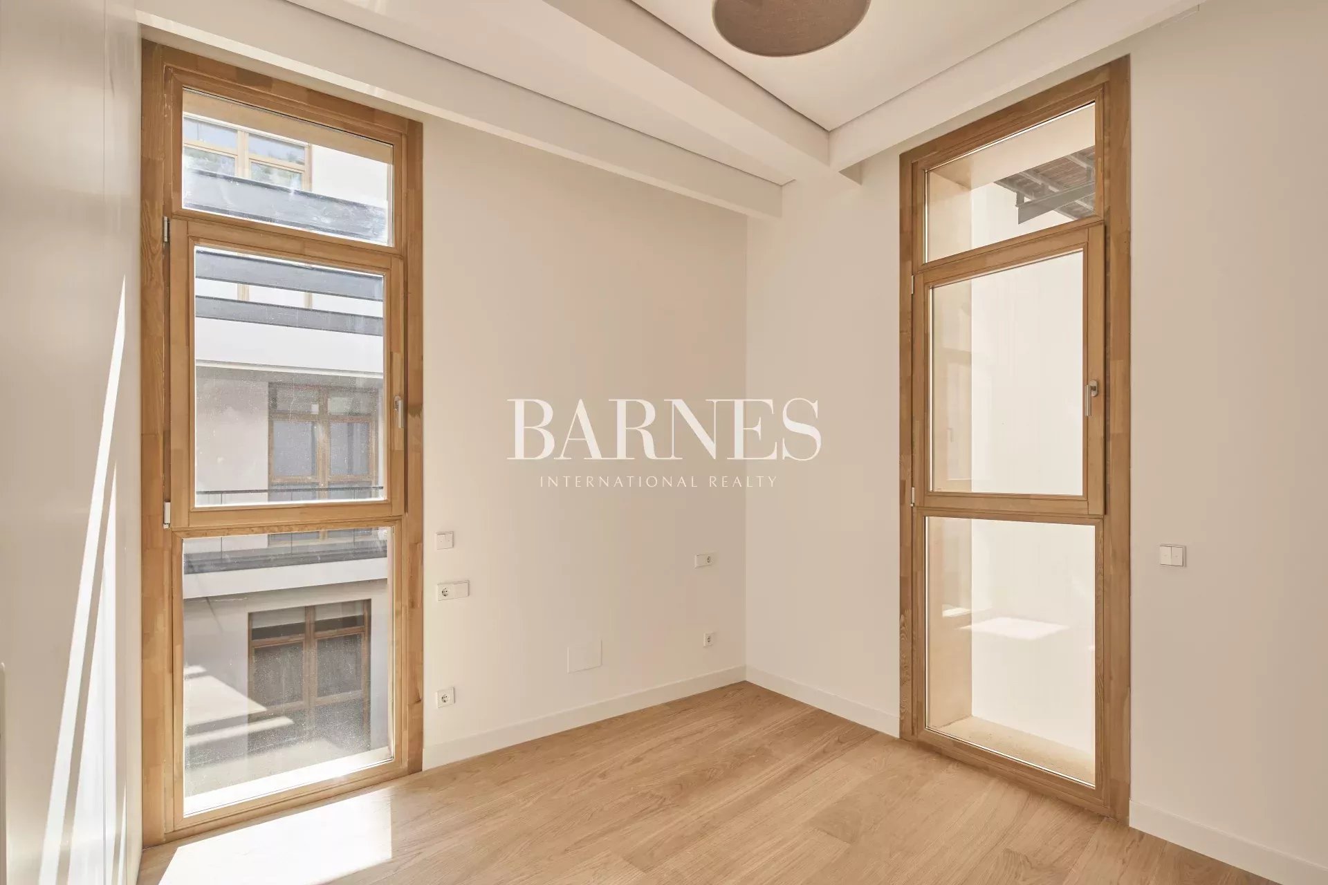 We find large and numerous double-height closets and dressed inside in all rooms and a great island in the kitchen of recognized German firm can also serve as a dining room. All appliances top of the range, double door refrigerator, refrigerated cellar for wine storage and dishwasher. All in minimalist key and light tones. The living and dining room is very spacious and has high ceilings with a large window overlooking a beautiful interior garden. All the openings are double glazed and tilt and turn windows covered in wood giving a touch of warmth to the interior.