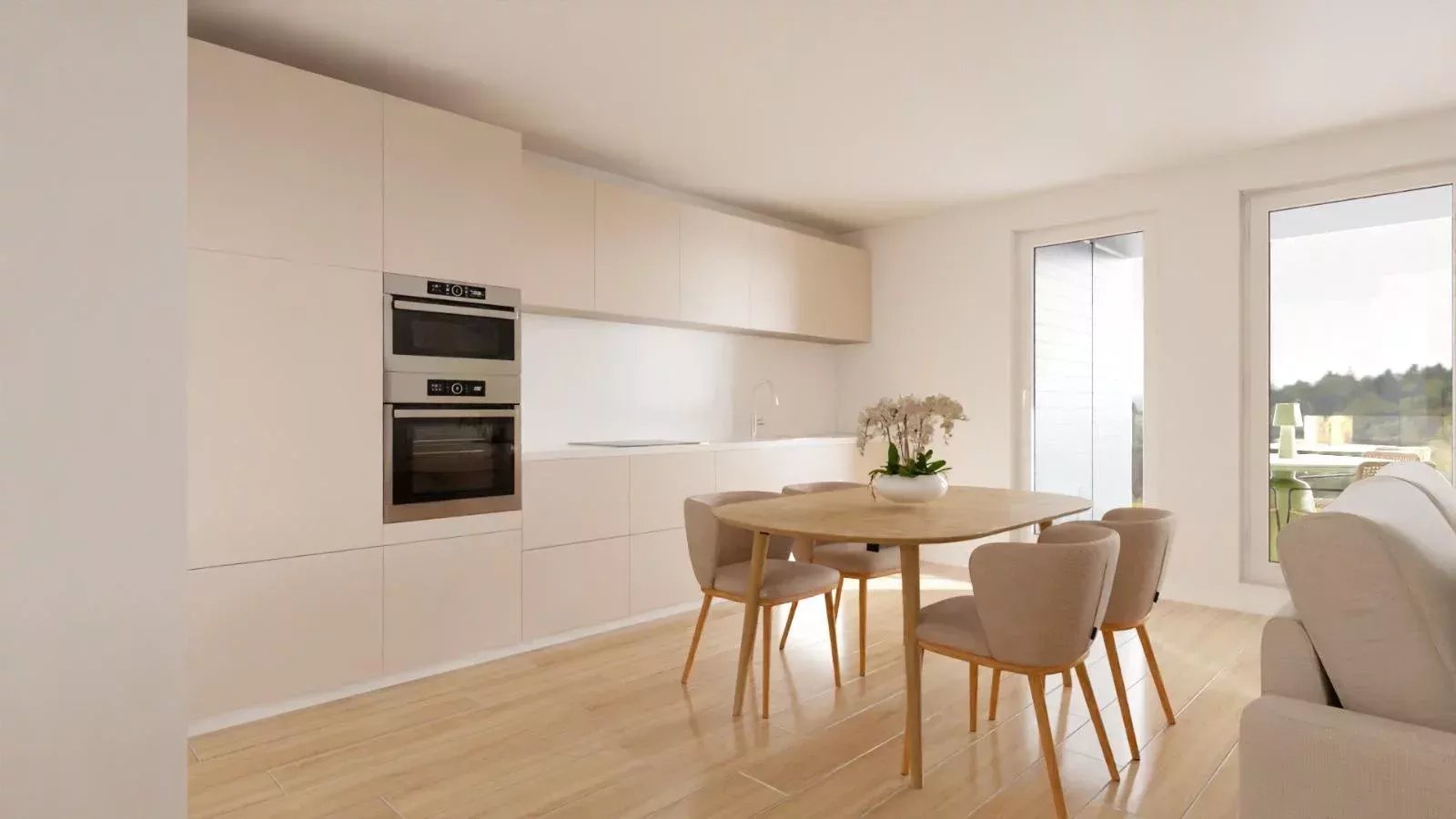 The property stands out for its brightness, thanks to large windows oriented to the south-west, allowing abundant natural light throughout the day. The contemporary-style living-dining room is integrated with an open kitchen fully equipped with high-end appliances. Additionally, the laundry area is equipped with a washer and dryer, offering maximum functionality.