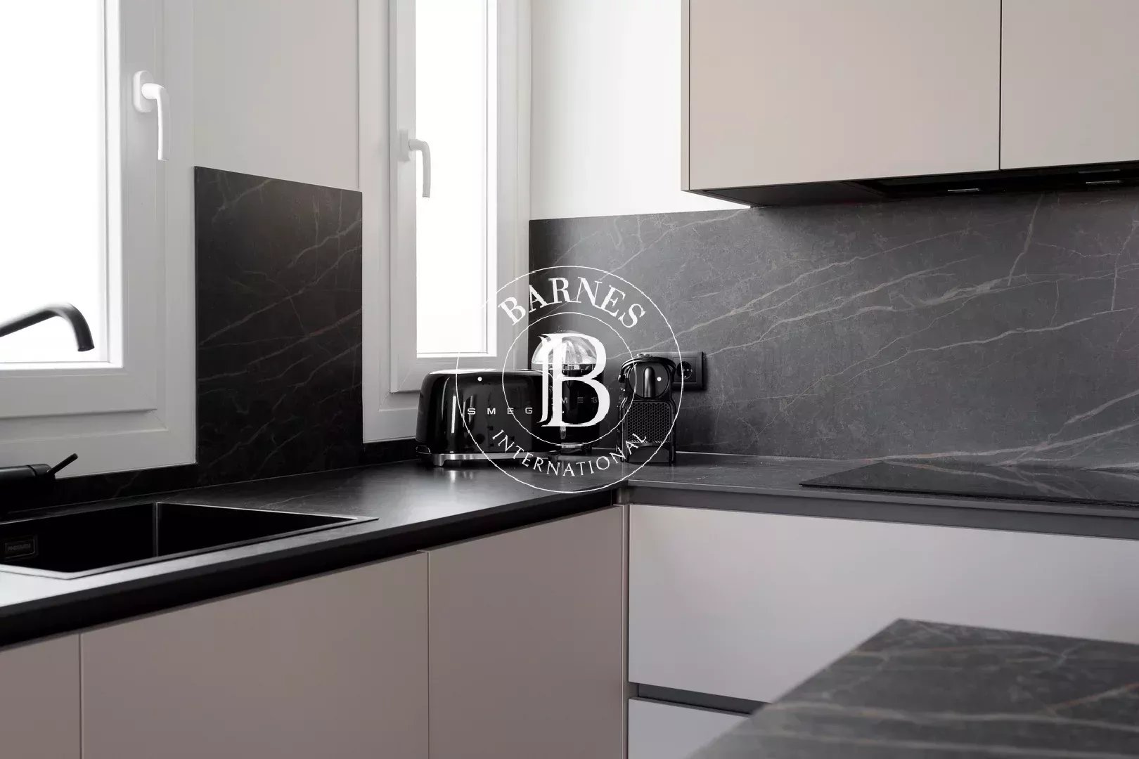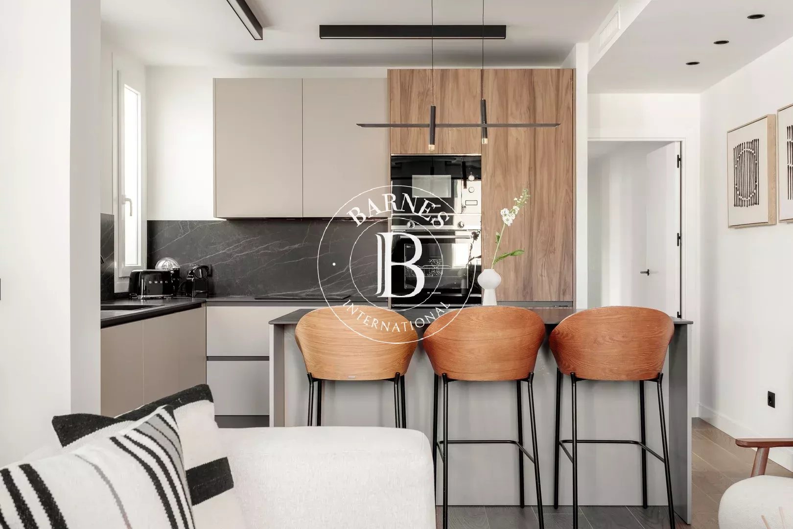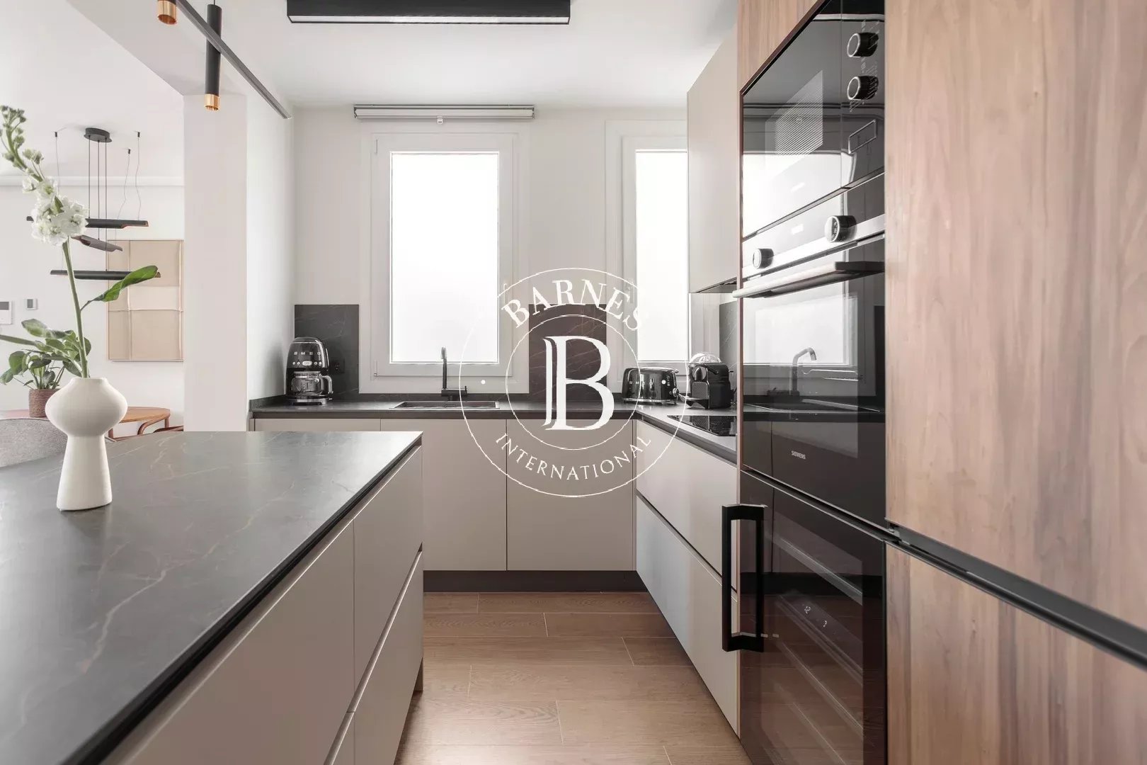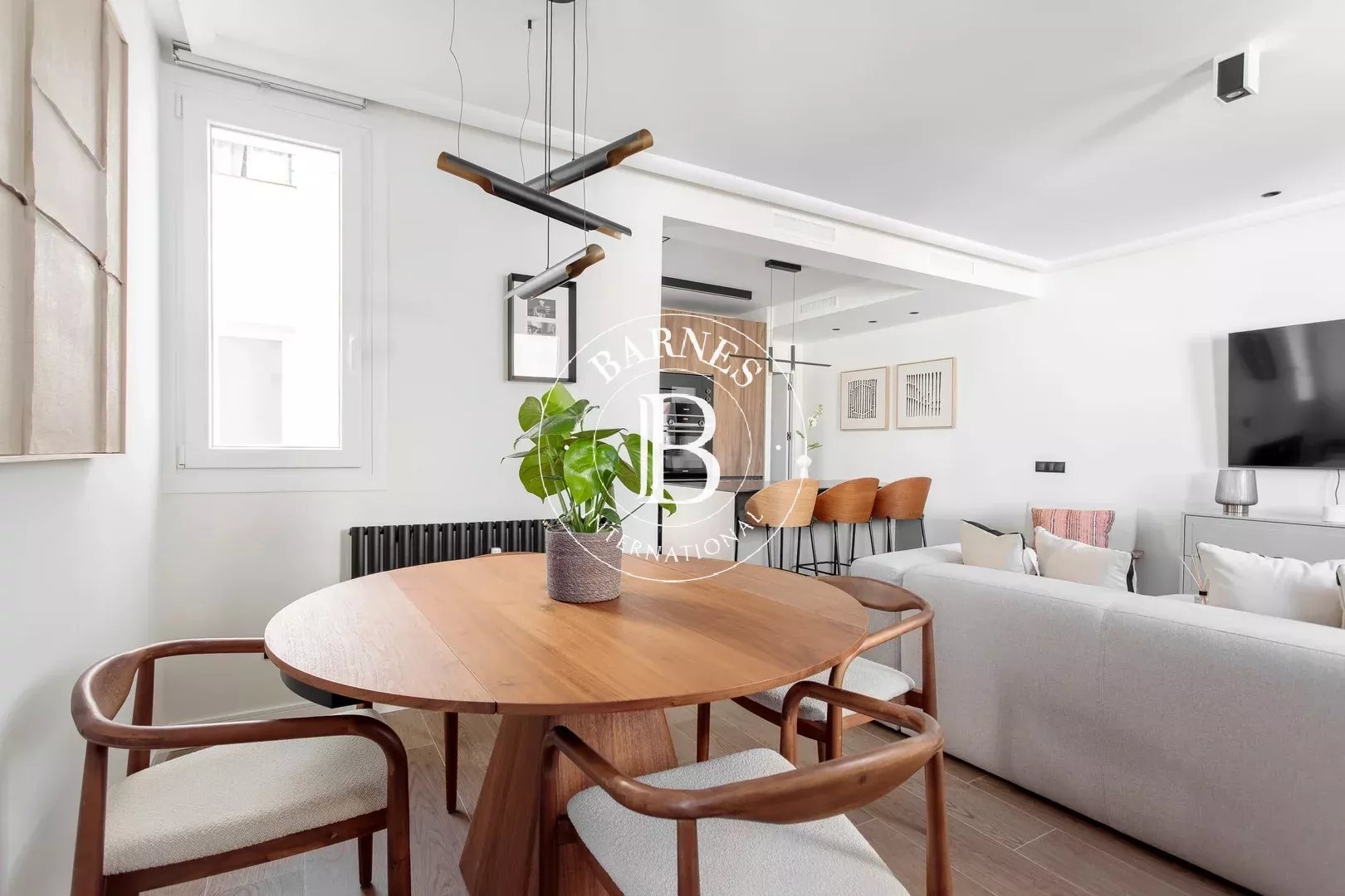 The spacious and versatile living-dining area provides an ideal setting for both daily living and entertaining, with a layout that maximizes natural light. The open-plan kitchen integrates seamlessly into the space and is fully equipped with all necessary appliances, offering a practical and contemporary environment.
