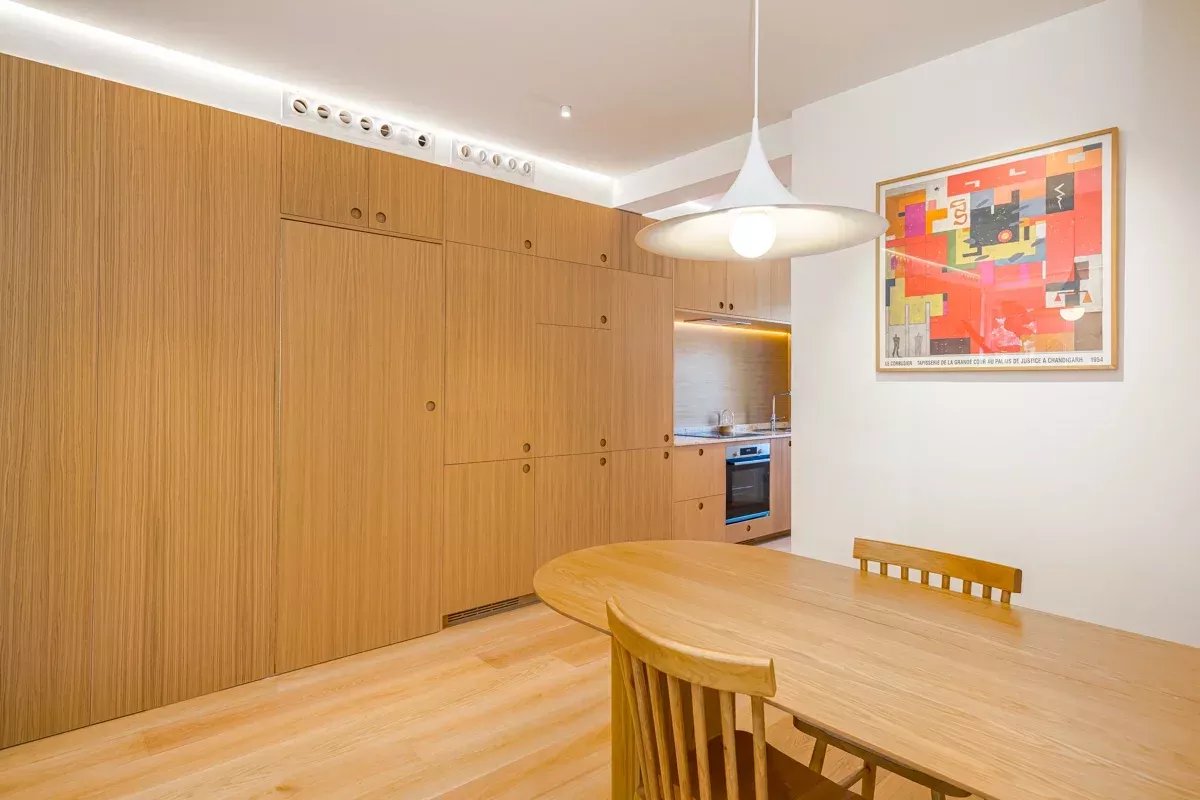 The property is distributed into a spacious and bright living-dining room with an open-plan kitchen, equipped with top of the range appliances. The integral refurbishment has been carried out with top quality materials, such as natural oak floors, designer radiators and decorative details -such as a Flos lamp- that add character and sophistication to the whole.