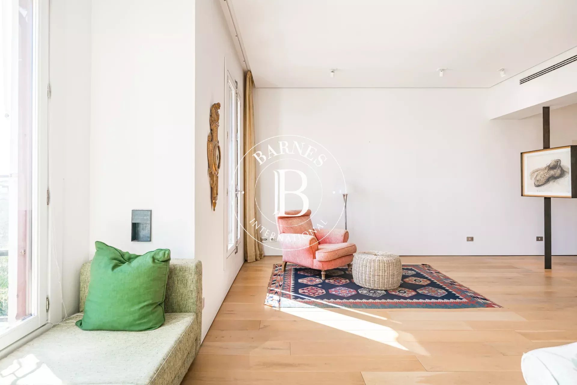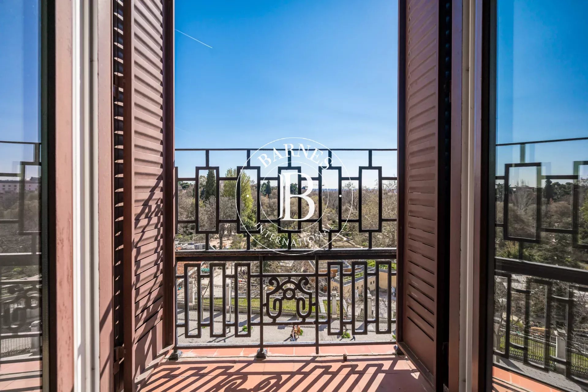Upon entering the home, the large double windows facing the street, with three balconies, offer a unique and unobstructed view of the Botanical Garden, providing a feeling of spaciousness, calm, and connection with the outdoors throughout the day.