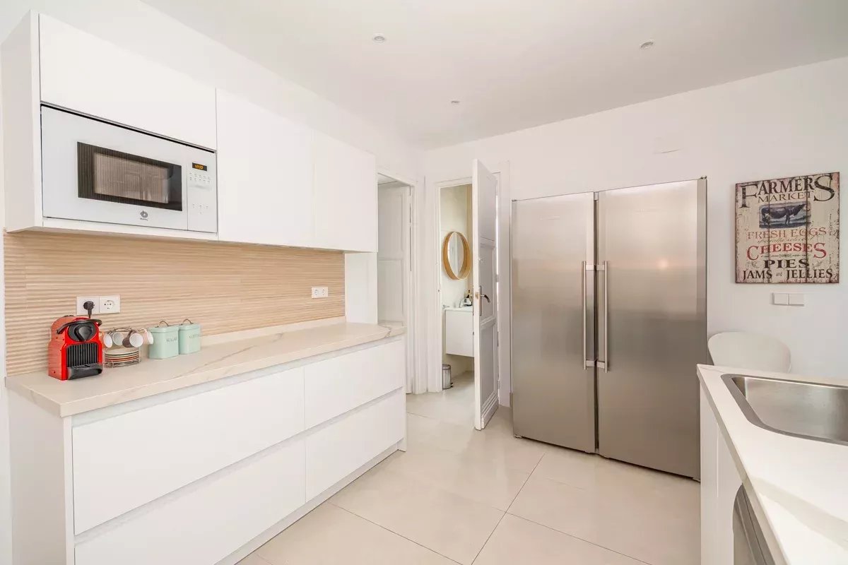 The kitchen, independent, fully equipped with high-end appliances, combines functionality and design in every detail.