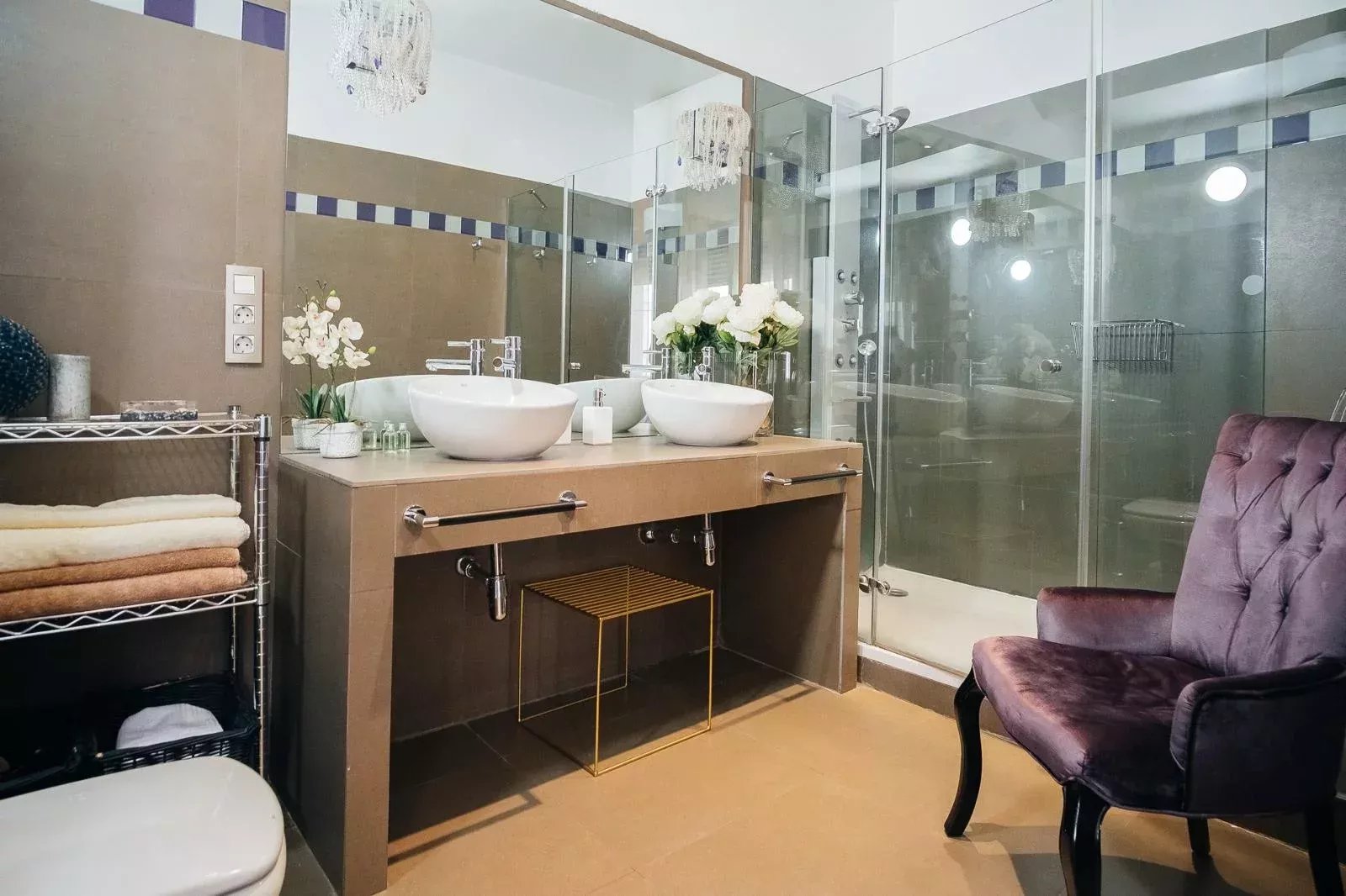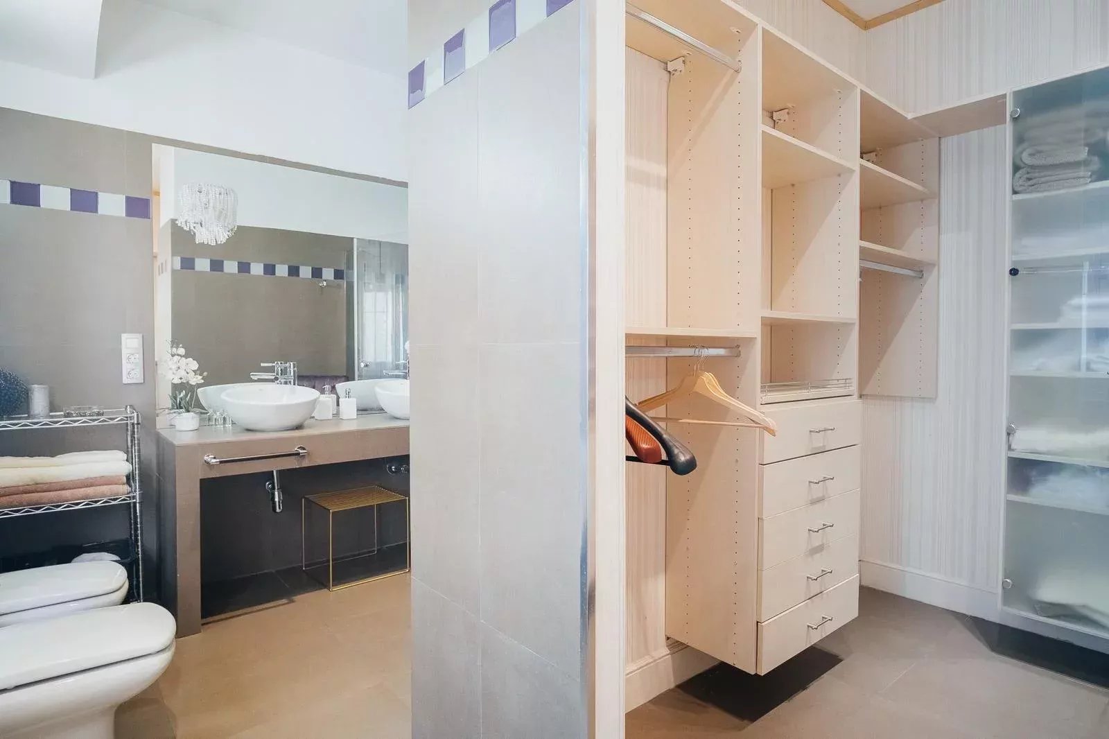 It has 4 bedrooms, all with en-suite bathrooms, which guarantees maximum privacy and comfort. The spaces have been carefully decorated with designer furniture and first class finishes, creating a sophisticated and cozy atmosphere. In addition, the orientation of the apartment and its location on a high floor make it a very bright apartment throughout the day.