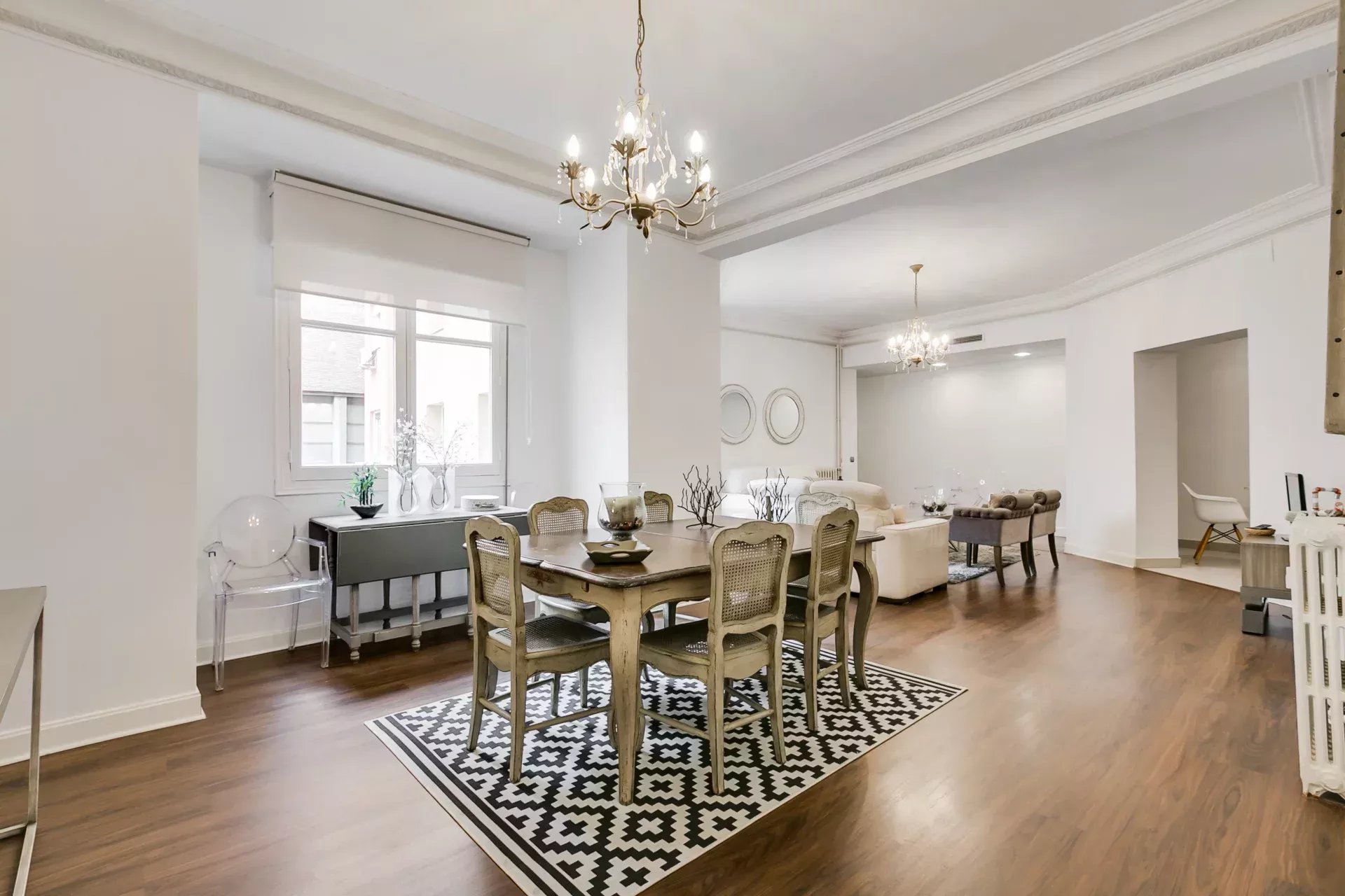Barnes Madrid presents this elegant apartment in the golden mile, the most exclusive area of the Salamanca neighborhood, of 230m², fully furnished and equipped with designer furniture, high quality materials and very bright.