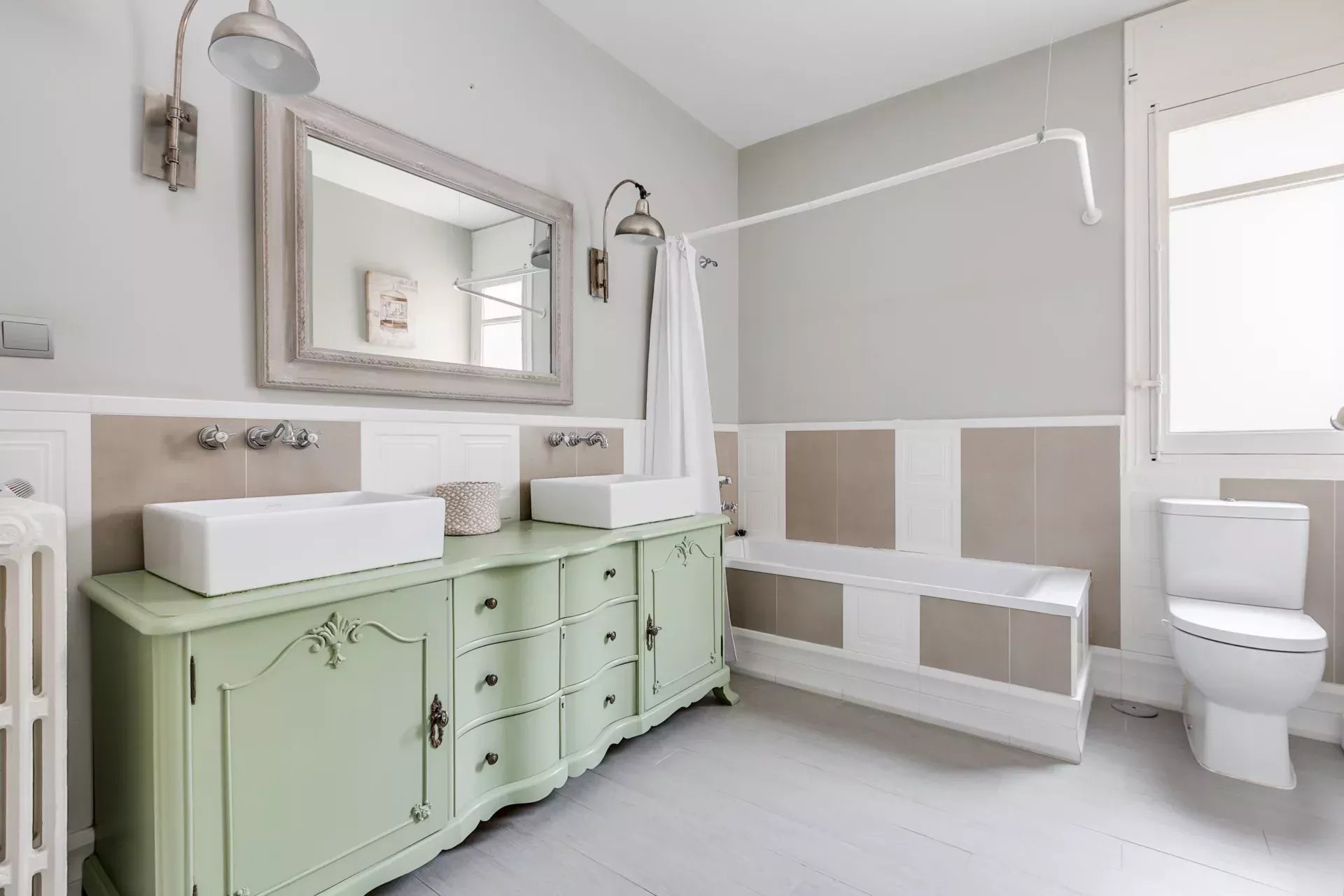It is distributed in an elegant hall that gives access to the living-dining room divided into two cozy rooms with large windows, high ceilings with moldings and natural wood floors.