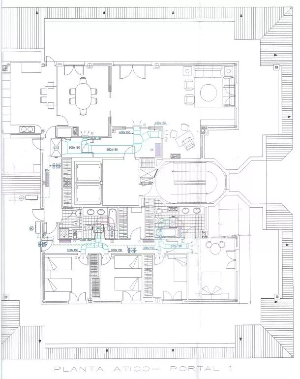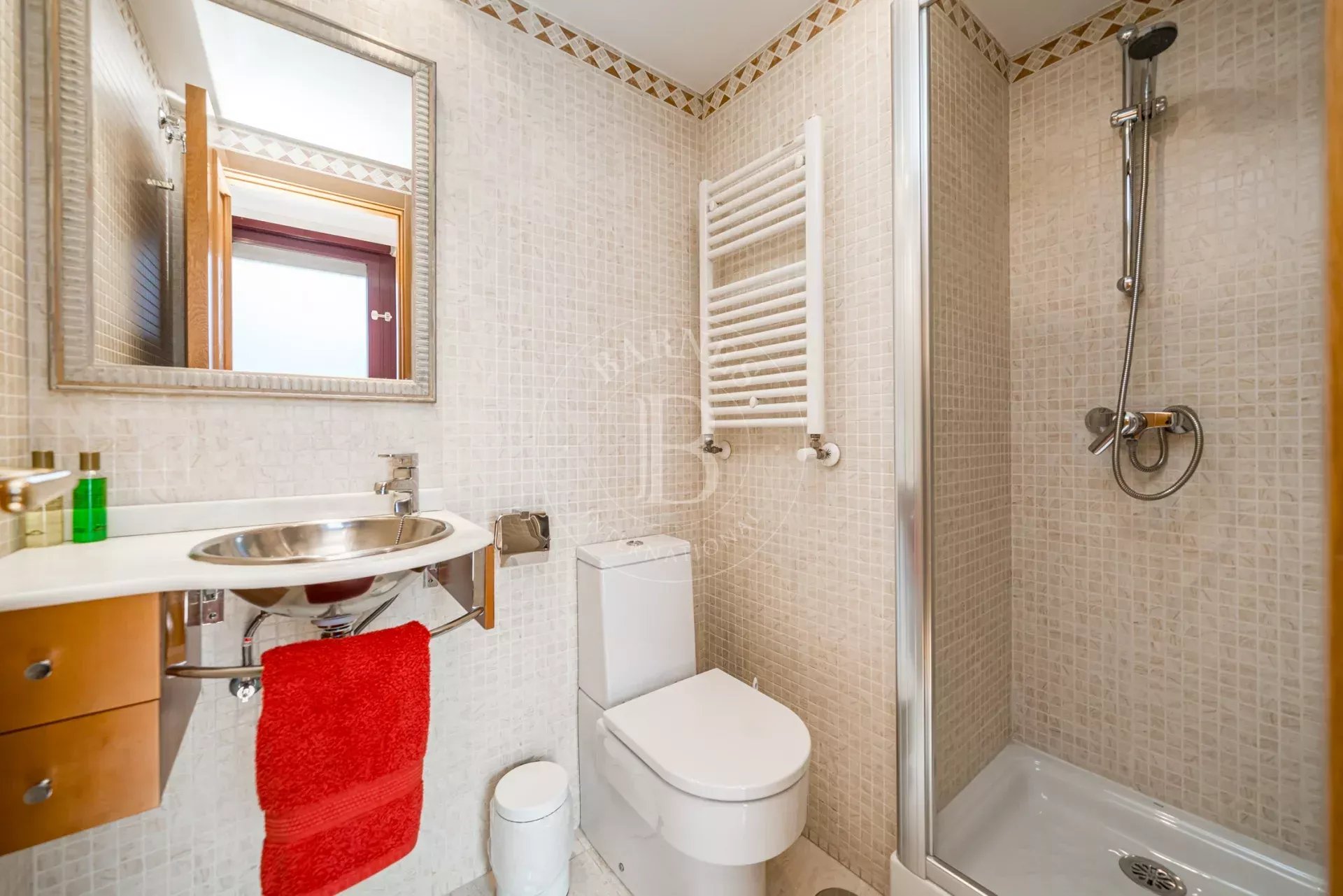The night area comprises four main bedrooms, including a master suite with access to a second private terrace and an en-suite bathroom. The property includes a total of four full bathrooms. Additionally, an upper attic-style level is fitted out as a fifth bedroom with an en-suite bathroom, offering a versatile space ideal for guests or independent use.