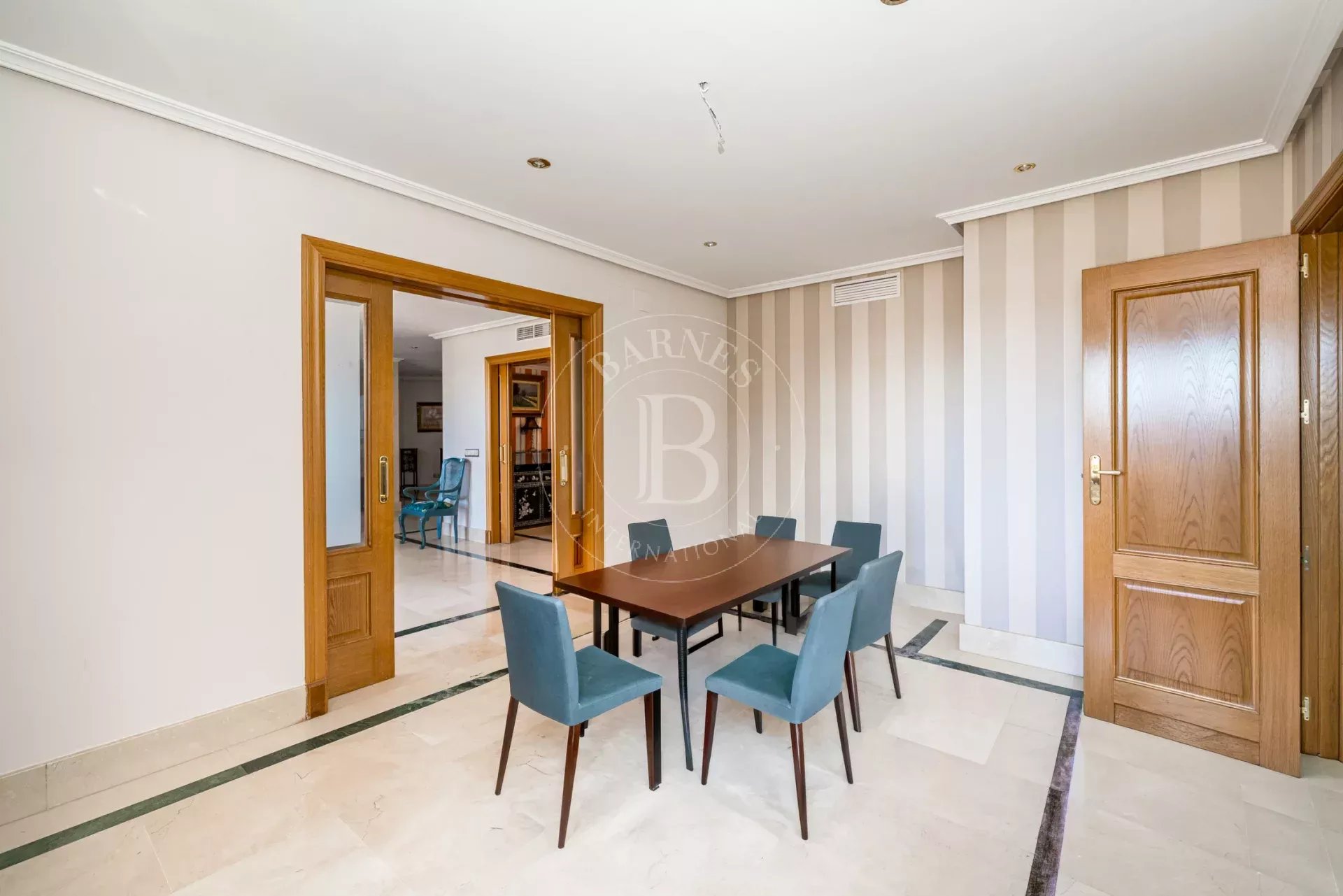Fully furnished and equipped, the property offers a highly functional layout clearly separating the living and sleeping areas. The living area features a spacious and elegant lounge filled with natural light, with direct access to a magnificent wraparound terrace, ideal for enjoying the outdoor space and views. The dining room, independent yet visually connected to the living room, integrates seamlessly with a fully equipped kitchen.