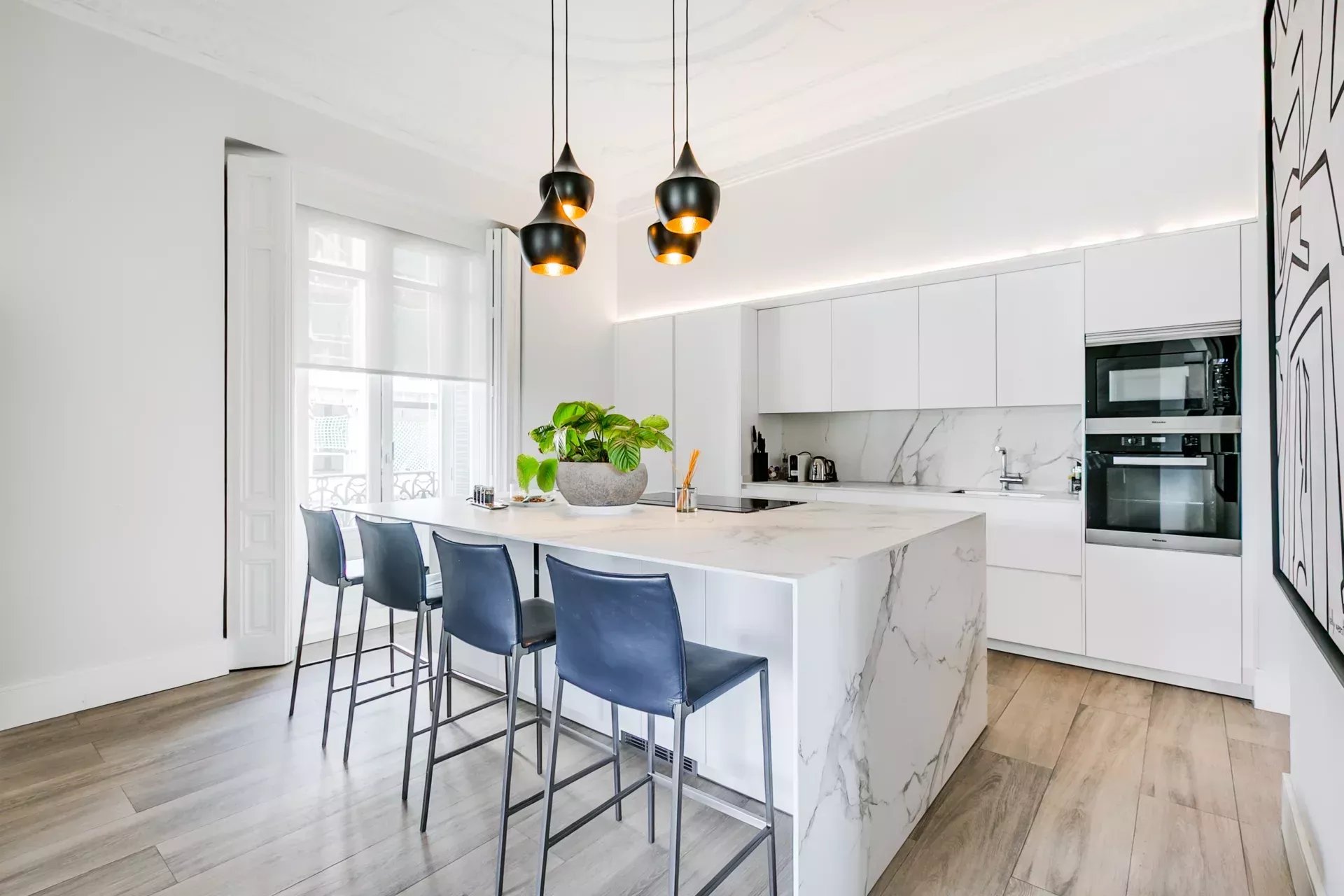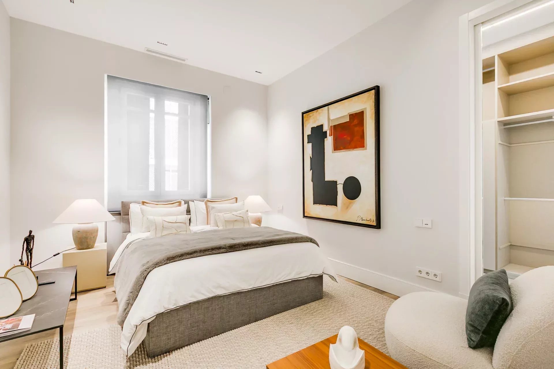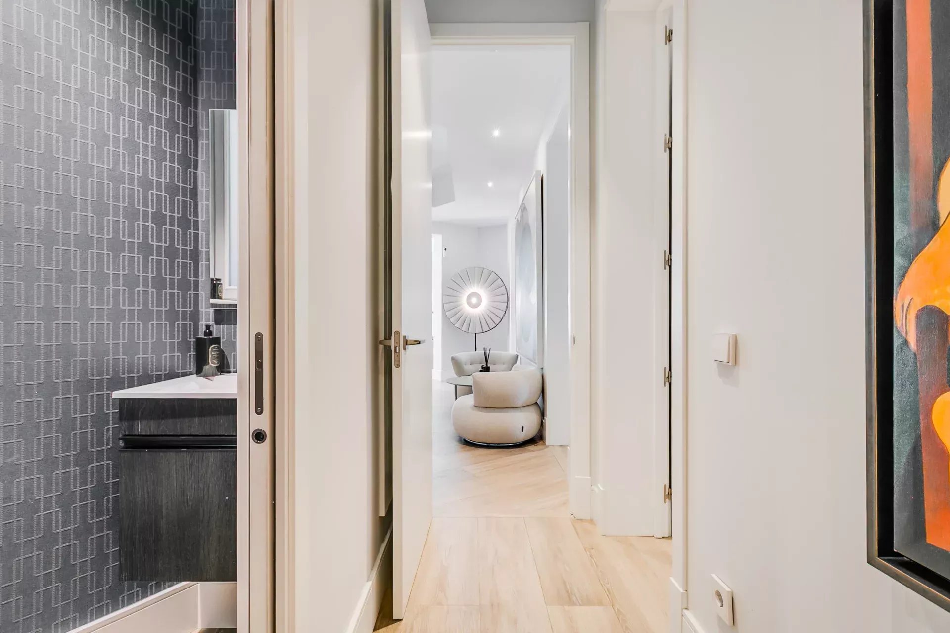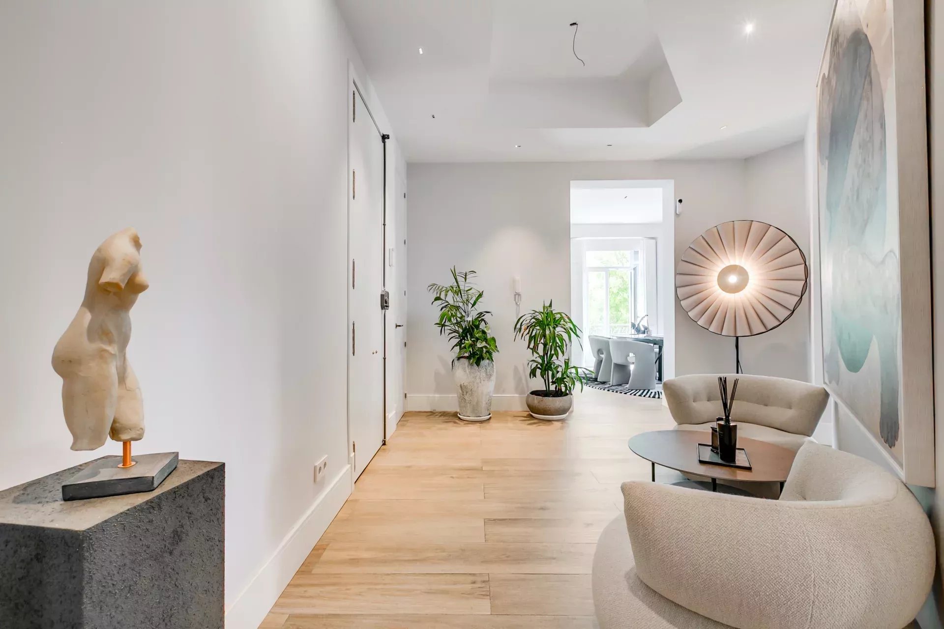 A luminous, elegant, and functional designer home in Madrid’s Golden Mile, surrounded by luxury boutiques, fine dining restaurants, and all the charm of El Retiro Park.