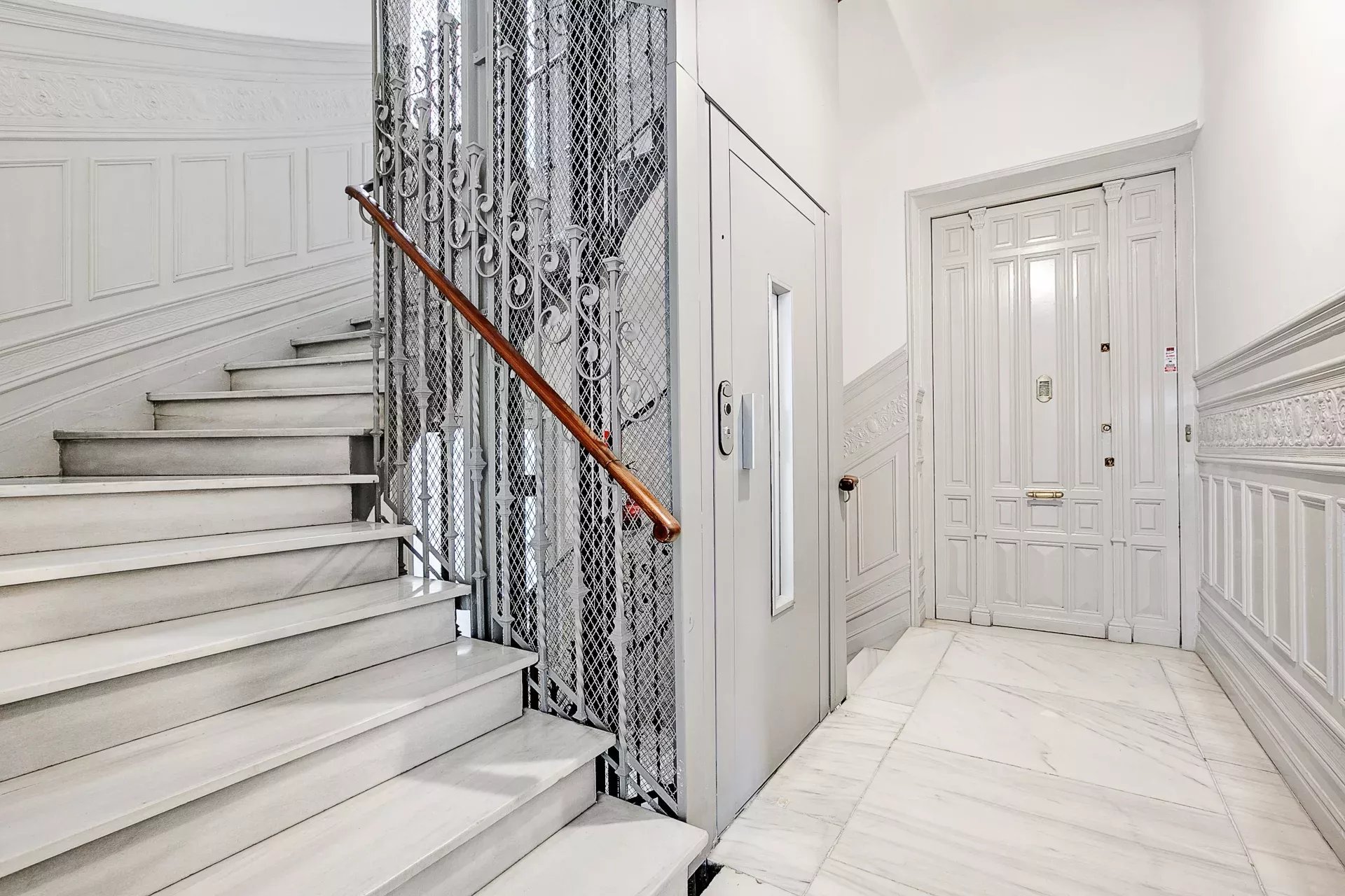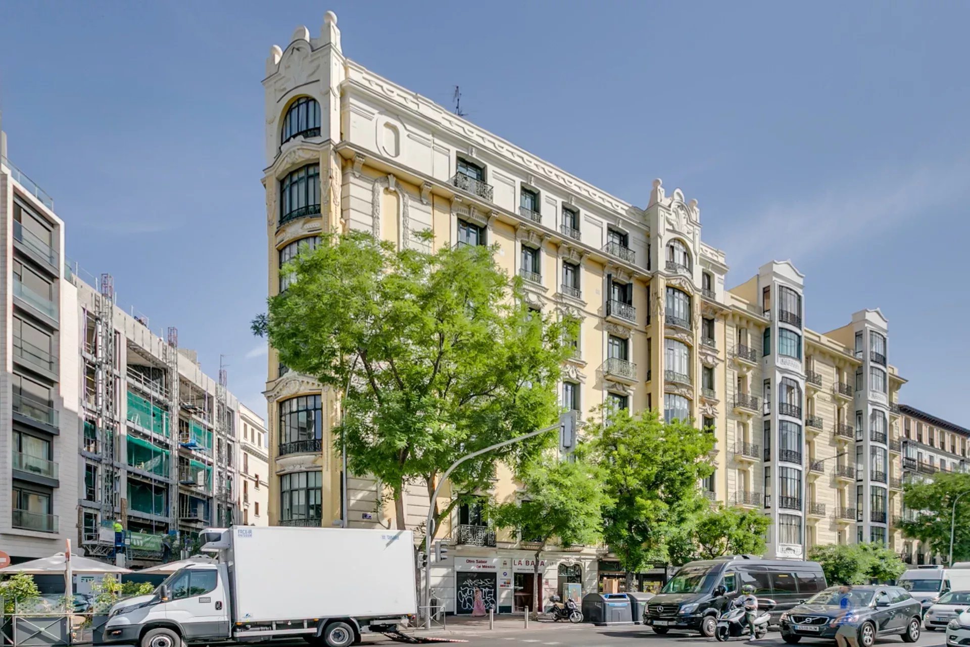 Located in a stately early 20th-century building on Calle de Alcalá, it features an elegant entrance hall, concierge service, and elevator.
