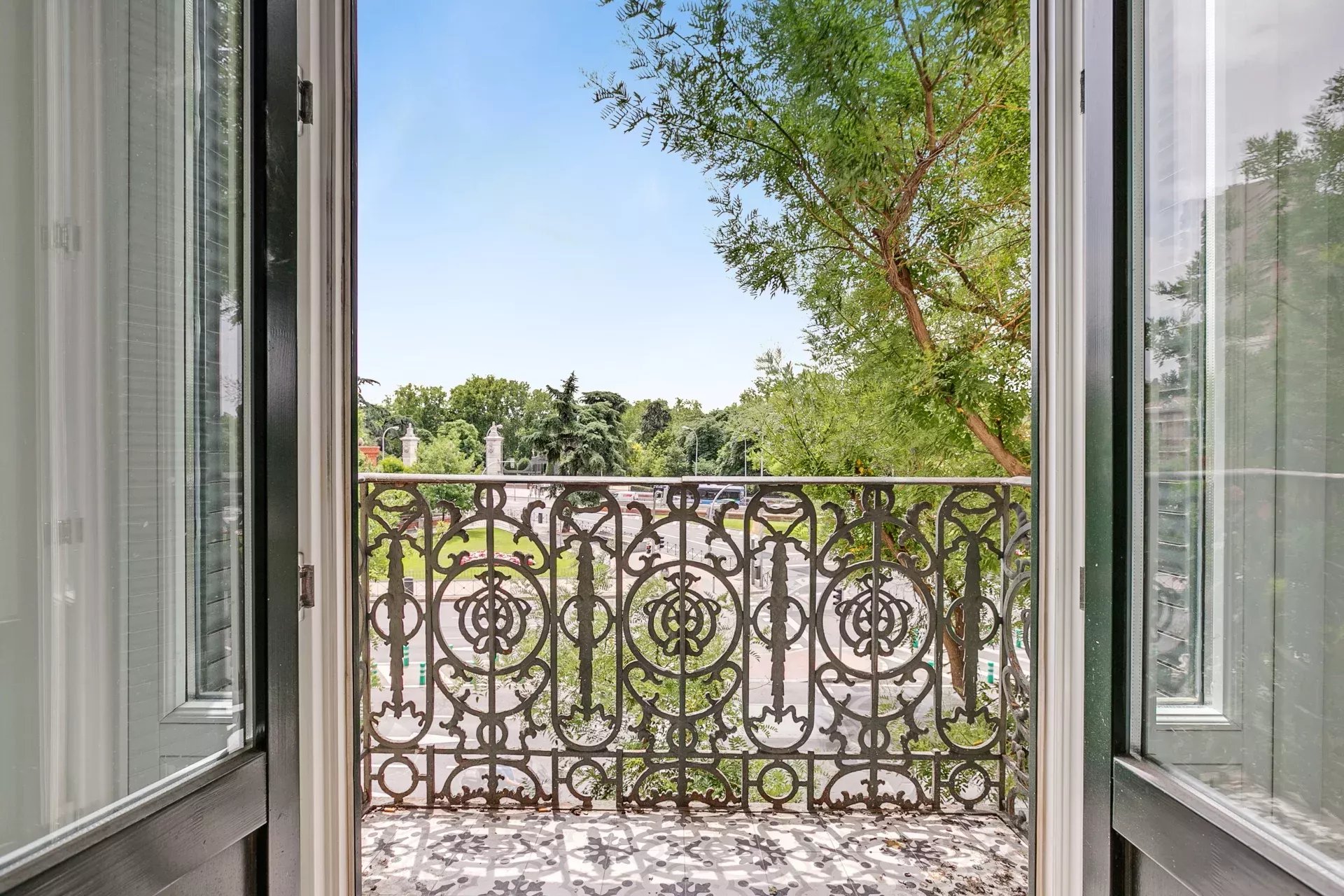 The apartment boasts eight balconies and a stunning bay window with open views of El Retiro Park. Thanks to its east-west orientation, natural light floods the space throughout the day, further enhancing its high-end finishes.