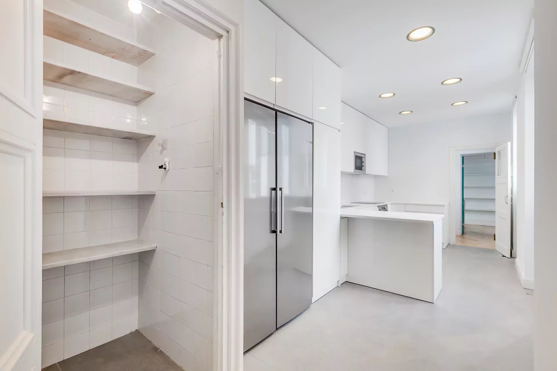 Its three huge living rooms stand out, all with large windows and south-facing light, which offer different possibilities of use, as a large office or reception. The apartment also has a spacious entrance hall, library, three bedrooms - two of them en suite - and a maid's bedroom. The master bedroom has a dressing room. The distribution is completed by a guest bathroom and a fully equipped kitchen.