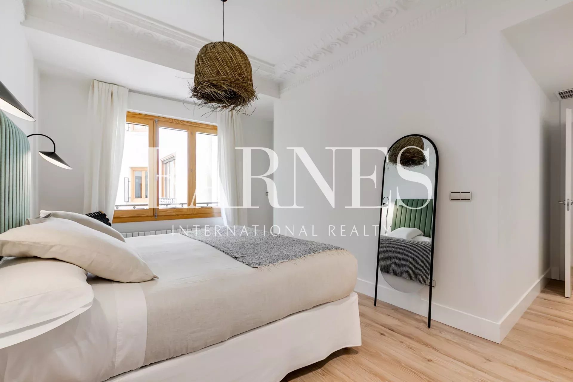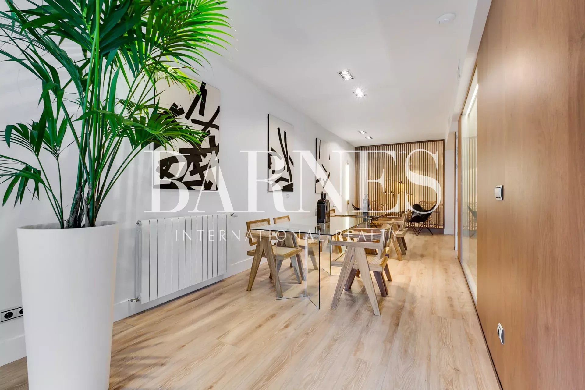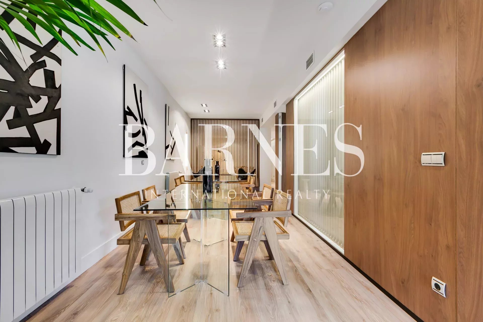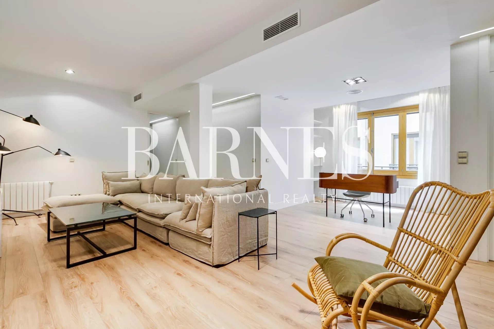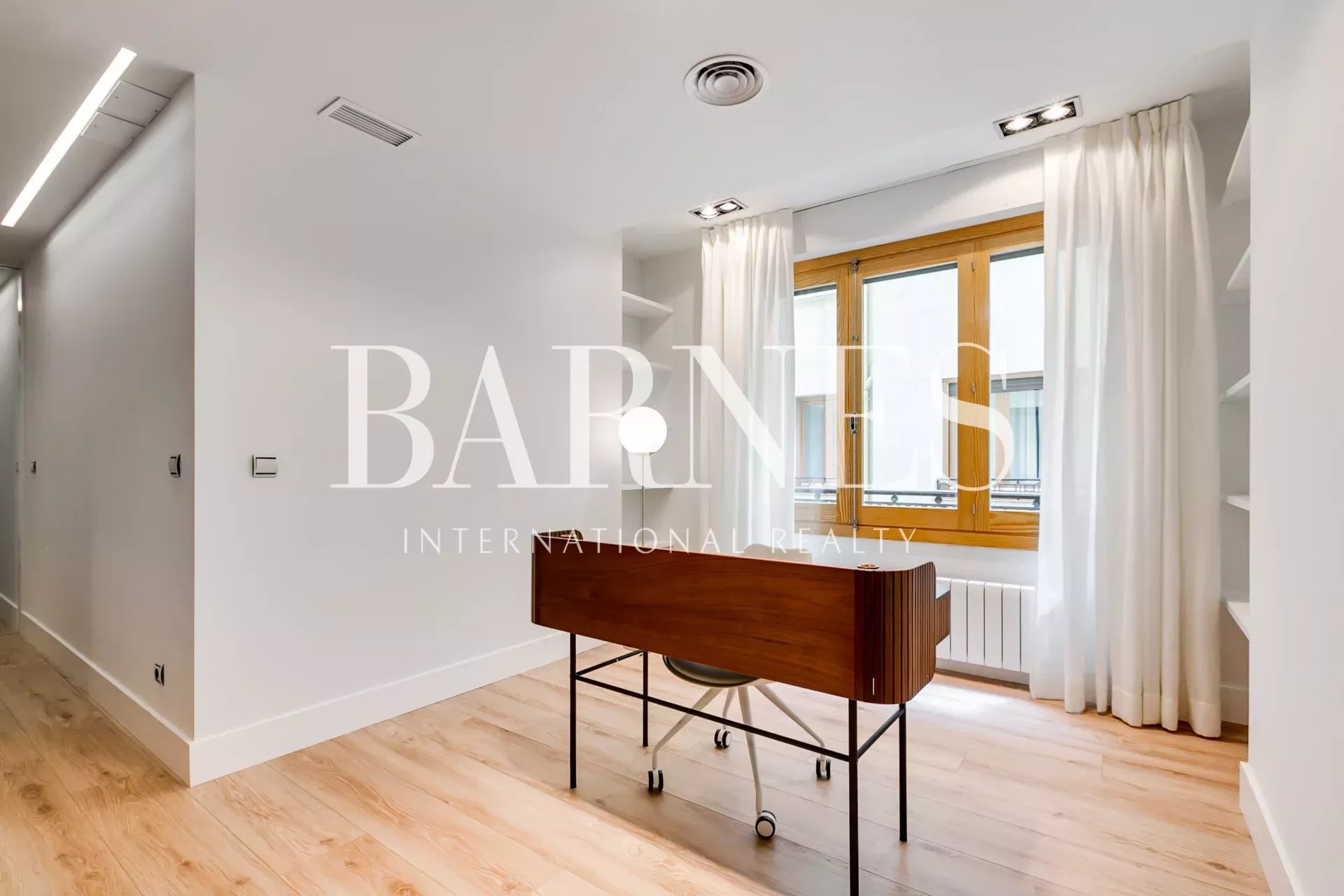 AC5 oak wood flooring throughout the apartment, except for the en-suite bathrooms with large format porcelain tile in dark gray. Windows and balconies of original carpentry with double glazing. Air conditioning ducts, hot and cold, separated into two zones for the whole house. Individual heating by natural gas radiators. High speed internet with router and wifi signal repeaters.