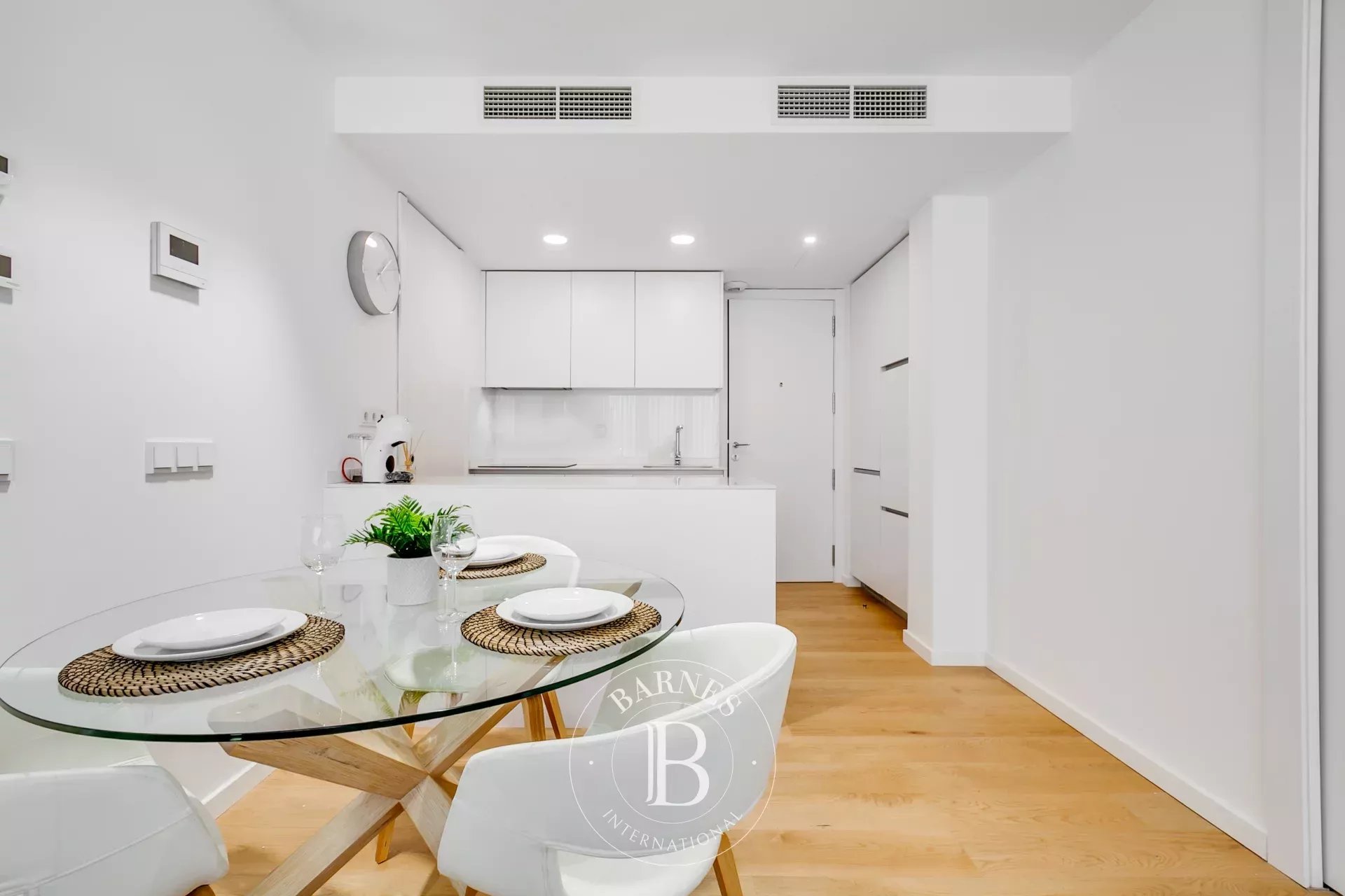 The apartment, exterior and bright, features a private terrace and balcony with open views, offering a true urban oasis. Furnished and ready to move into, it has been designed with a contemporary and functional style, ideal for international executives or postgraduate students seeking comfort and quality of life.