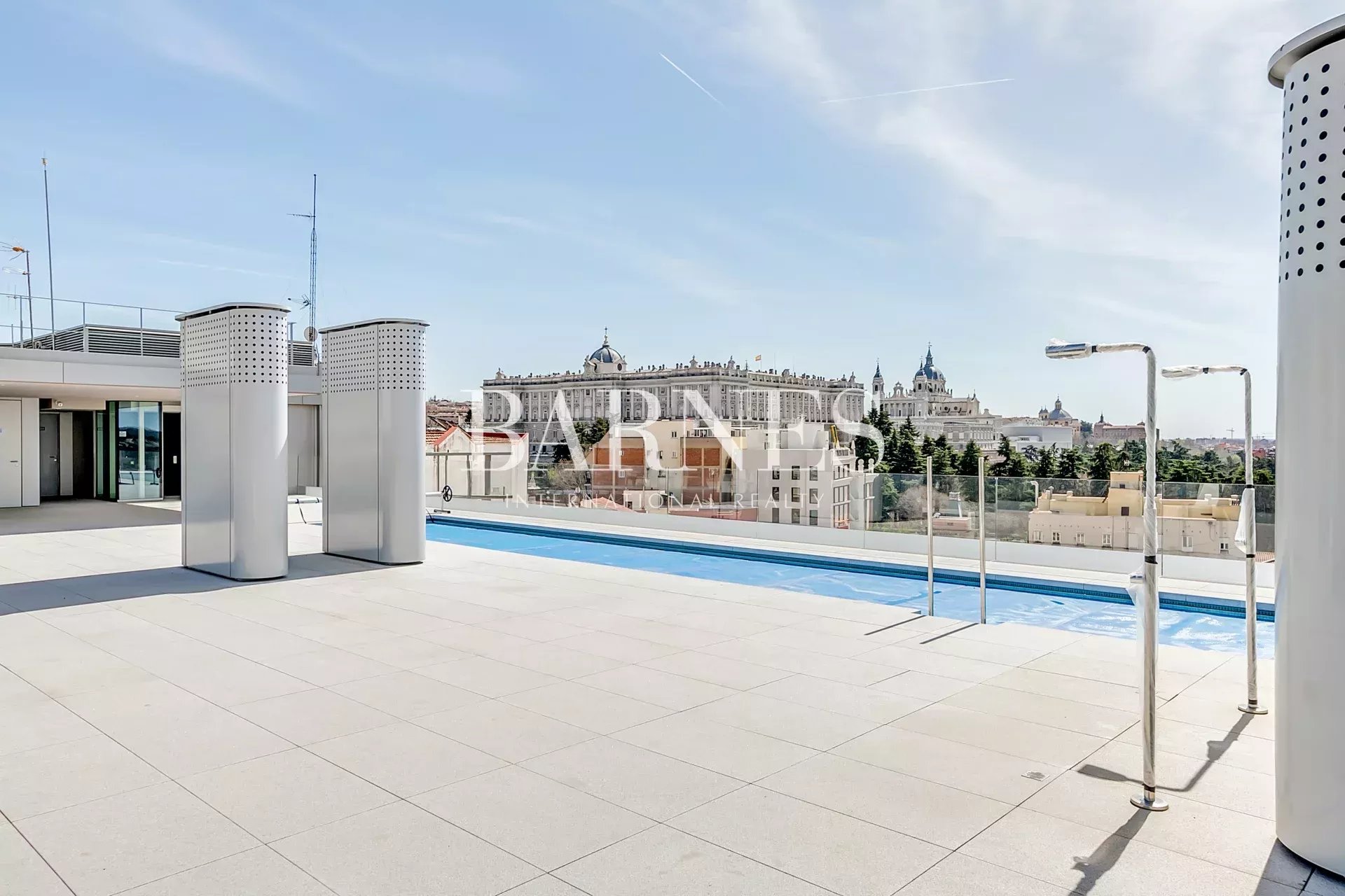 BARNES Madrid presents this rental apartment in a modern new development building, located on Calle Irún, just steps from the Royal Palace, Plaza de España and Parque del Oeste. A privileged, quiet and residential area, yet perfectly connected to the rest of the city with several metro stations nearby and all services within walking distance.