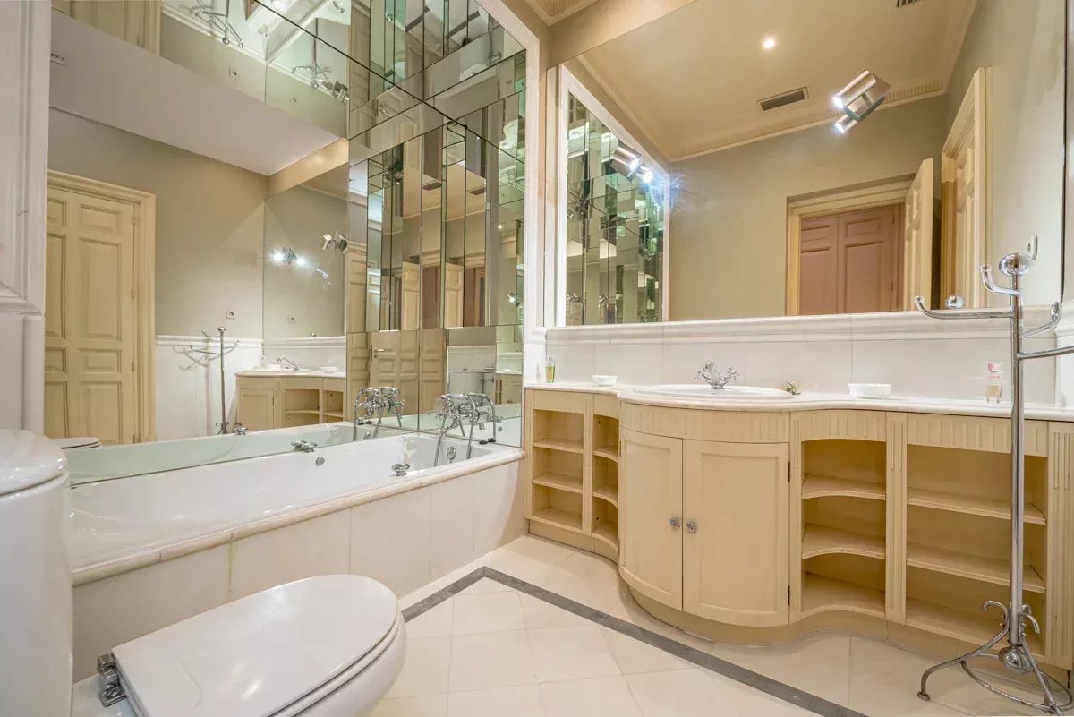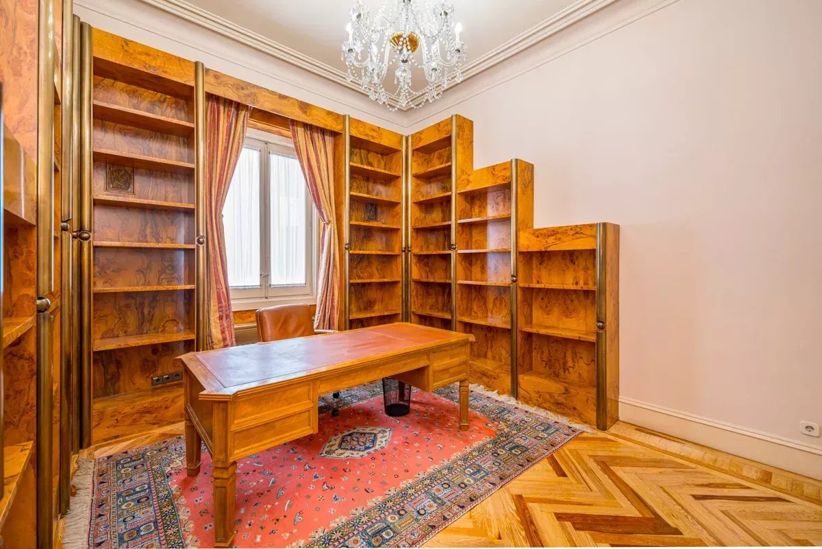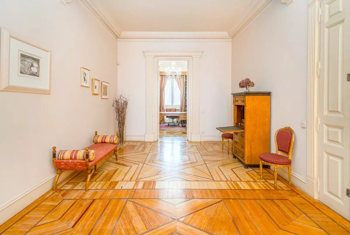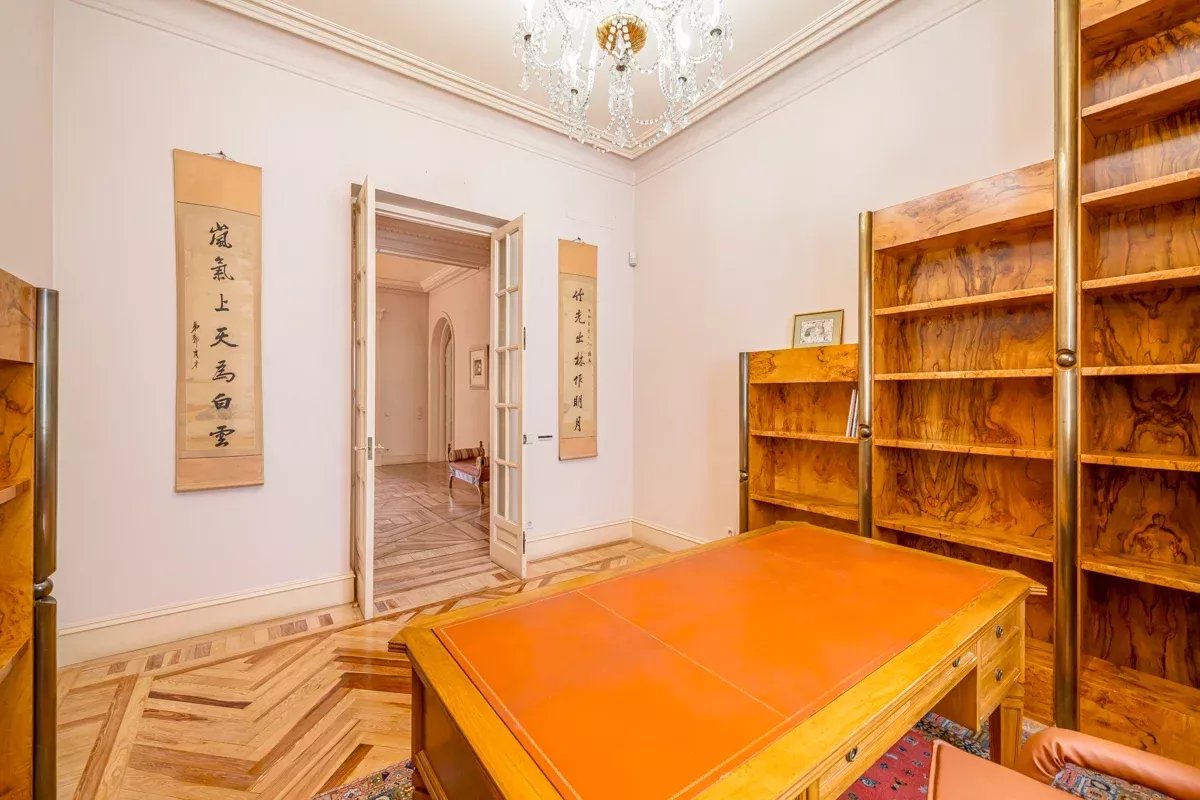 This luxurious apartment stands out for its layout and high ceilings, enhancing the sense of space and natural light. It features five living rooms offering various atmospheres, including a grand main lounge with original moldings and large windows that flood the space with daylight.