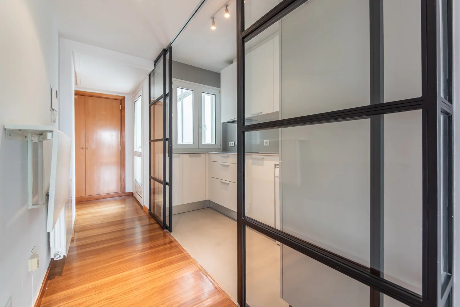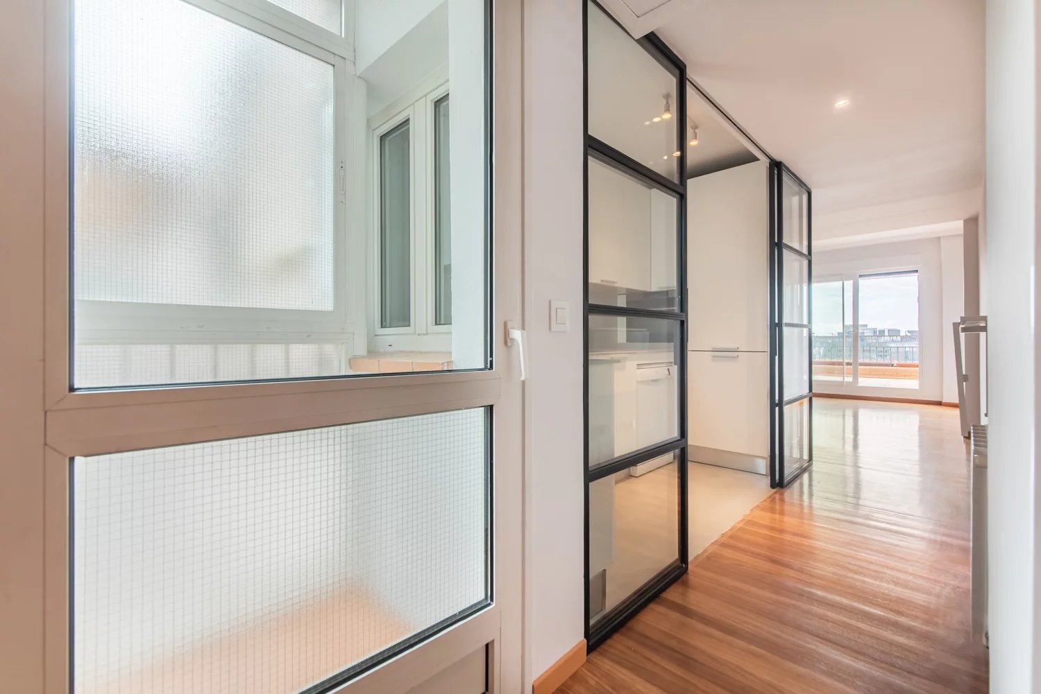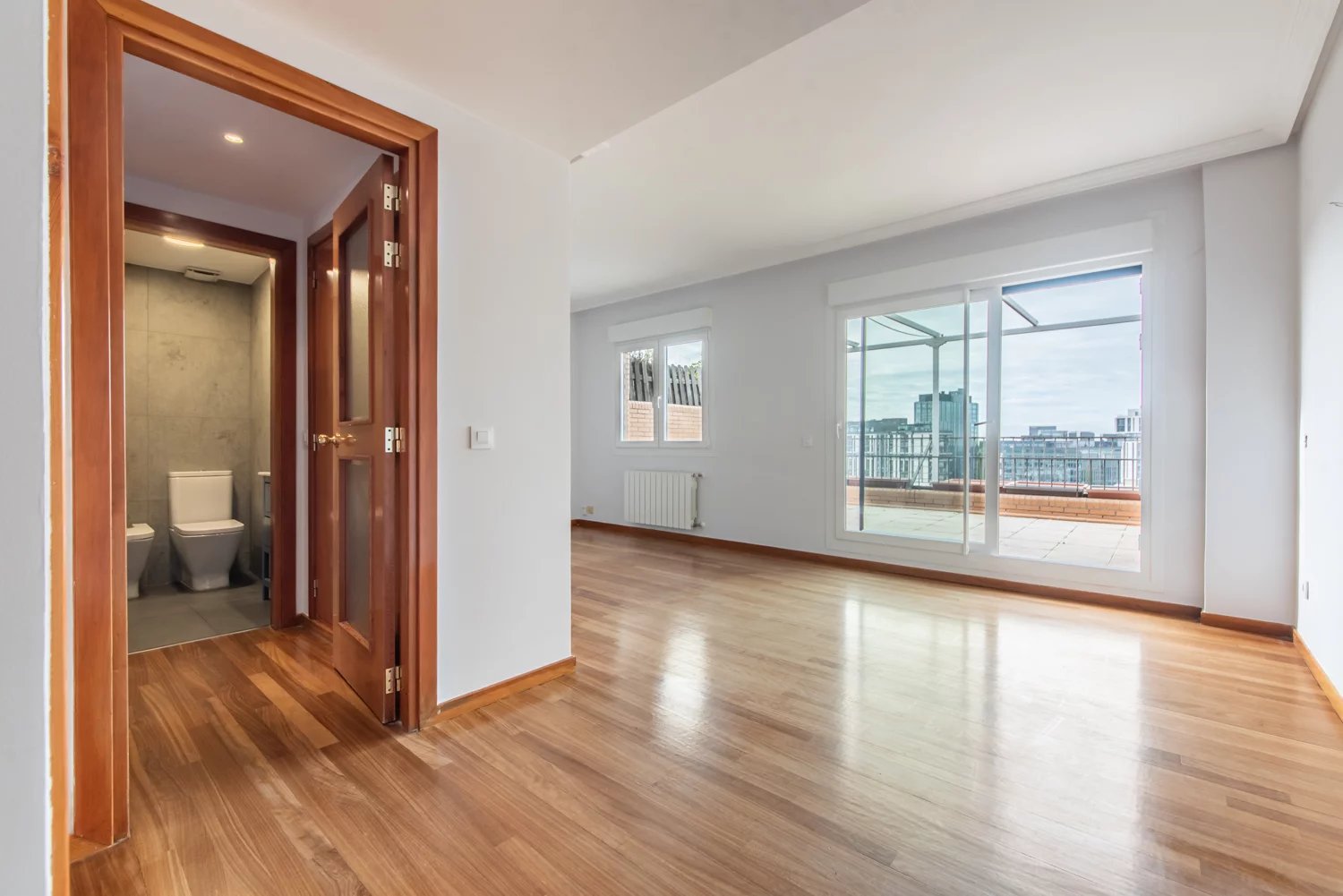 This exterior penthouse apartment, located on a high floor of a building with lift, stands out for its natural light and open views. The layout is both comfortable and functional, featuring a spacious living room enhanced by large windows, a bedroom with built-in wardrobes offering optimal storage, and a renovated bathroom with contemporary finishes. The fully equipped kitchen has also been refurbished and integrates seamlessly into the overall living space.