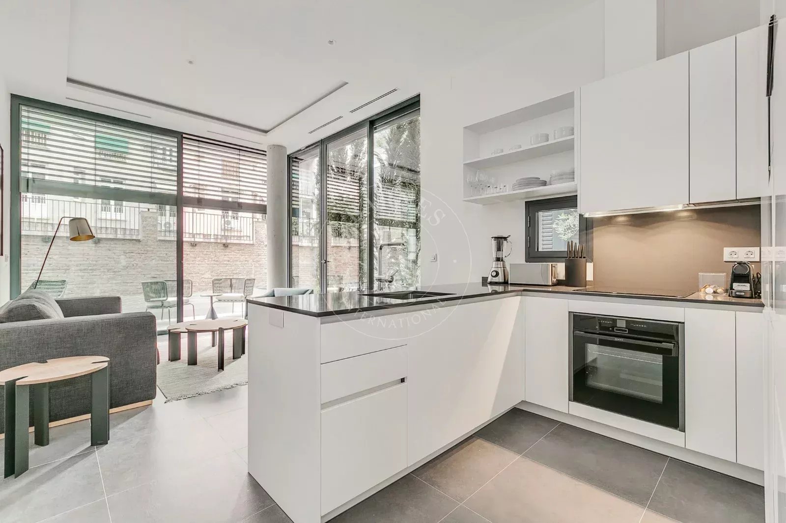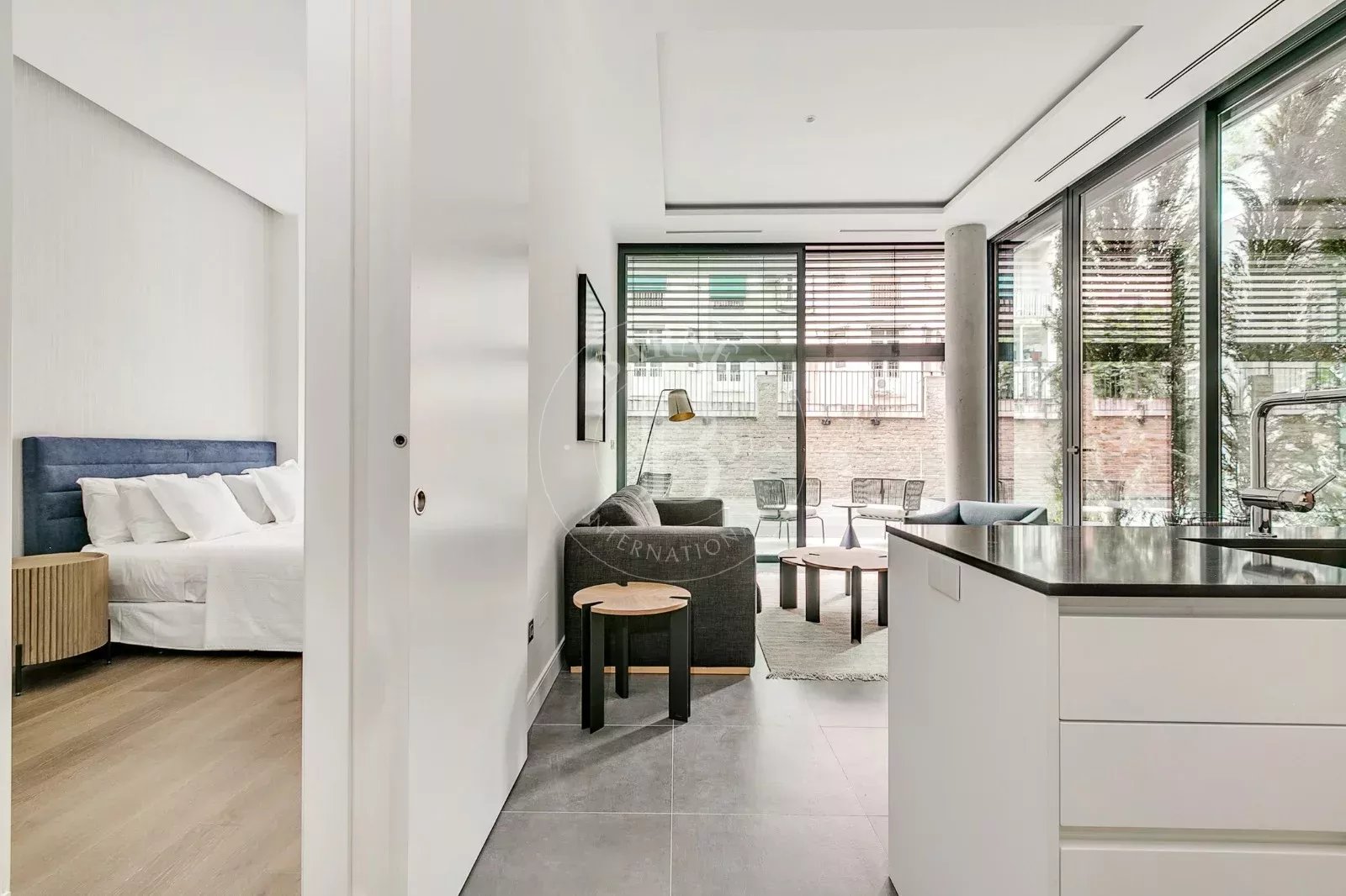 The night area comprises one en-suite bedroom with built-in wardrobes and a modern-style bathroom. Additional features include underfloor heating, central A/C with aerothermal system, indirect lighting, full home automation, and concierge service, ensuring year-round efficiency, comfort, and security.