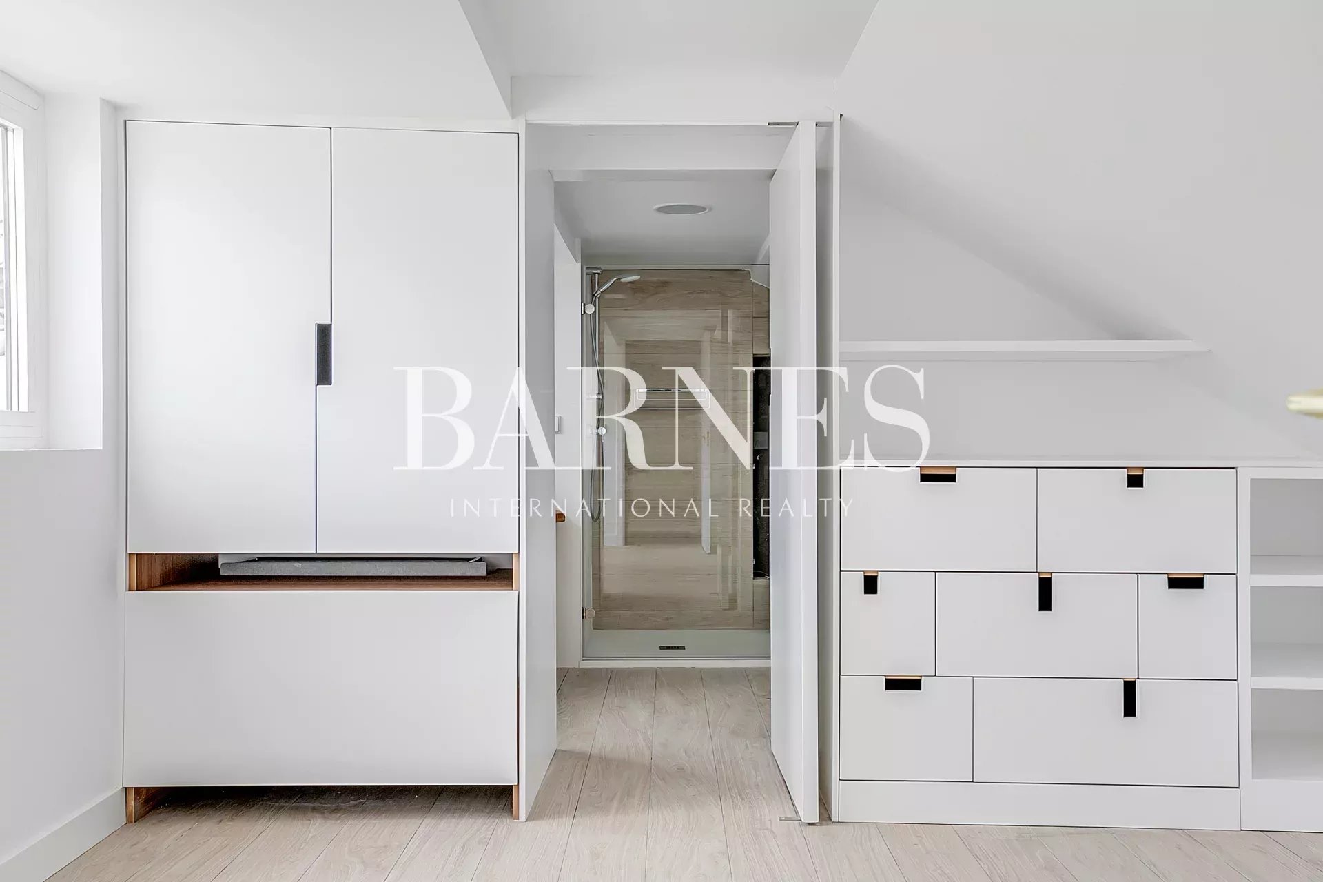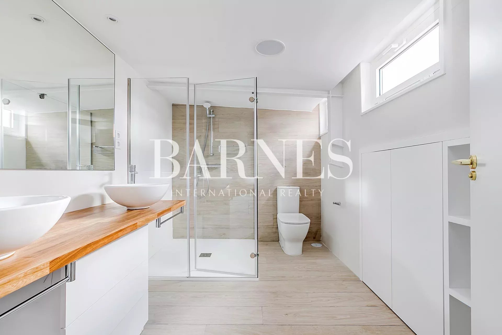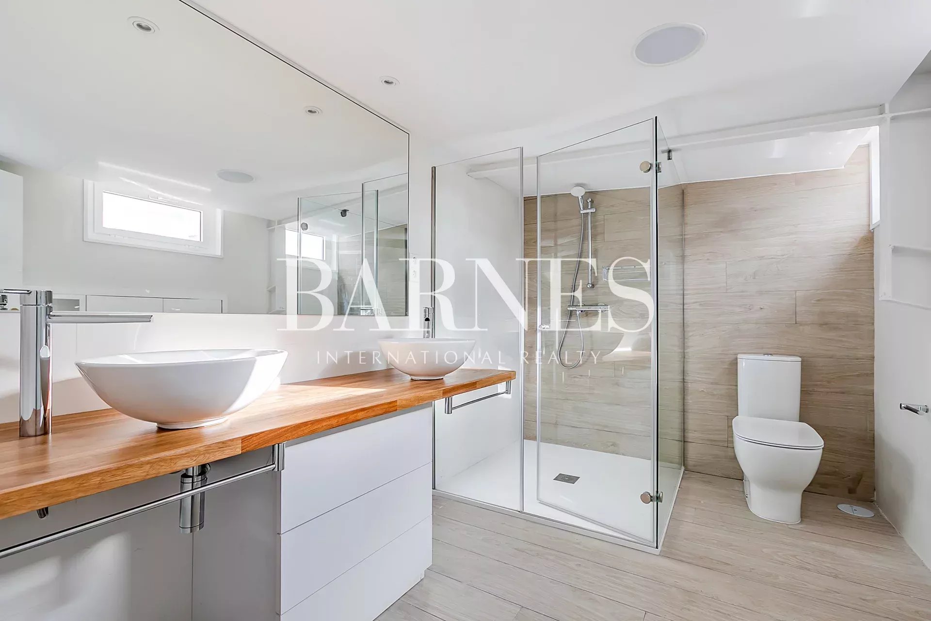 The kitchen is equipped with high-end appliances, large refrigerator (American), induction hob, extractor hood, dishwasher, conventional oven, microwave and washing machine. The kitchen furniture, as well as the carpentry throughout the house, are made of wood and custom made by a cabinetmaker.